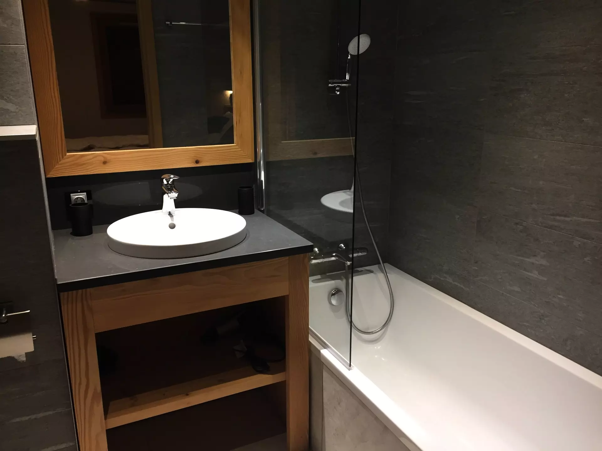 Bedroom 1 en suite: 2 twin beds (90x200) with plenty of storage space, bathtub and toilet.