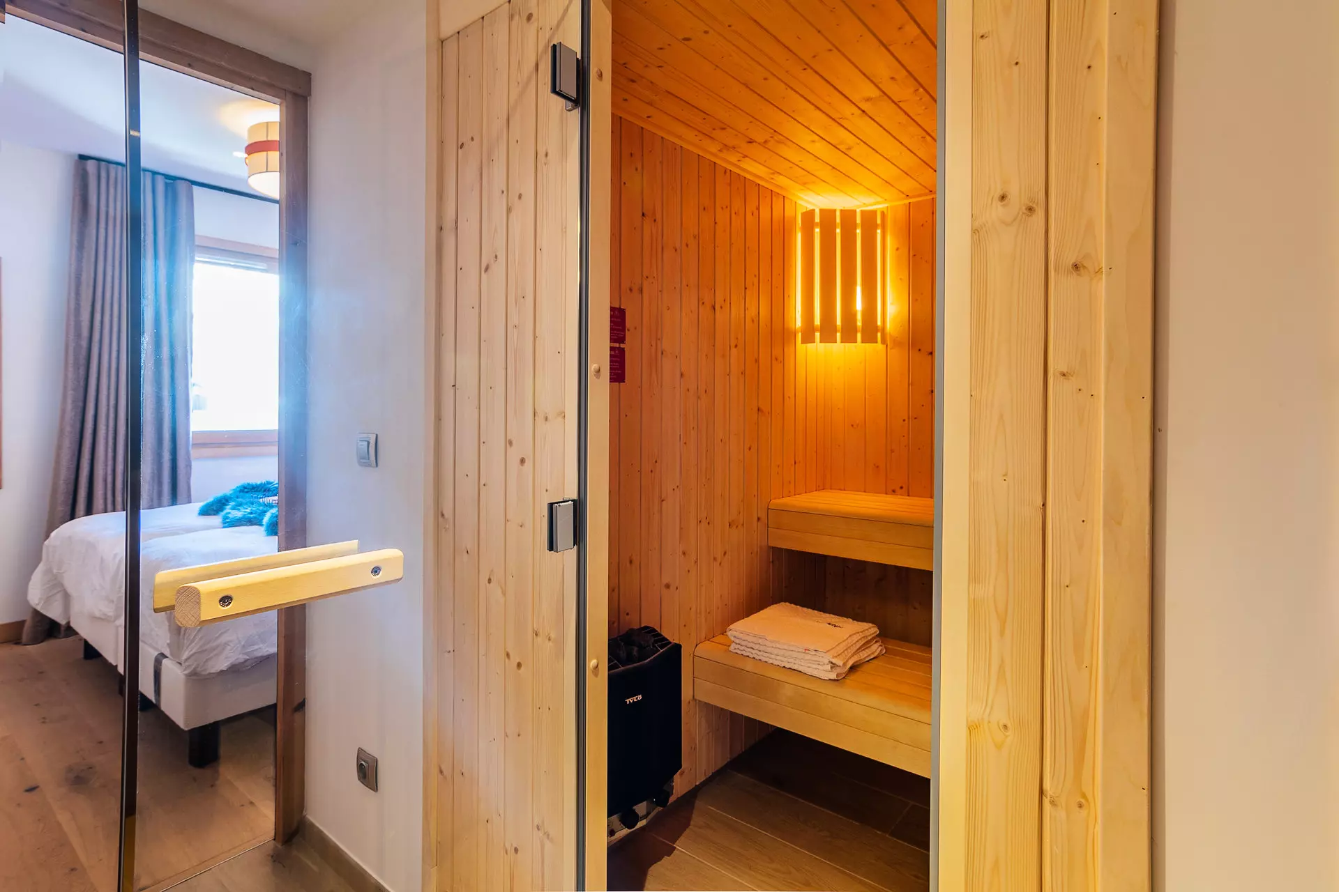 Comfortable, tastefully decorated and furnished, this 90m² chalet can accommodate up to 8 people. Relax in its sauna or on its solarium terrace, or simply meet up with friends around the wood-burning stove...