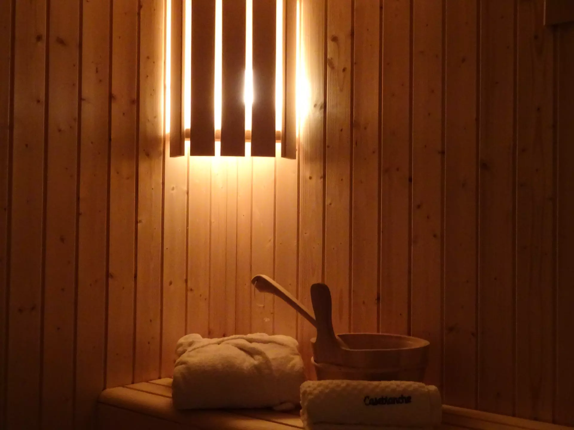 Sauna. Separate bathroom with shower and toilet.