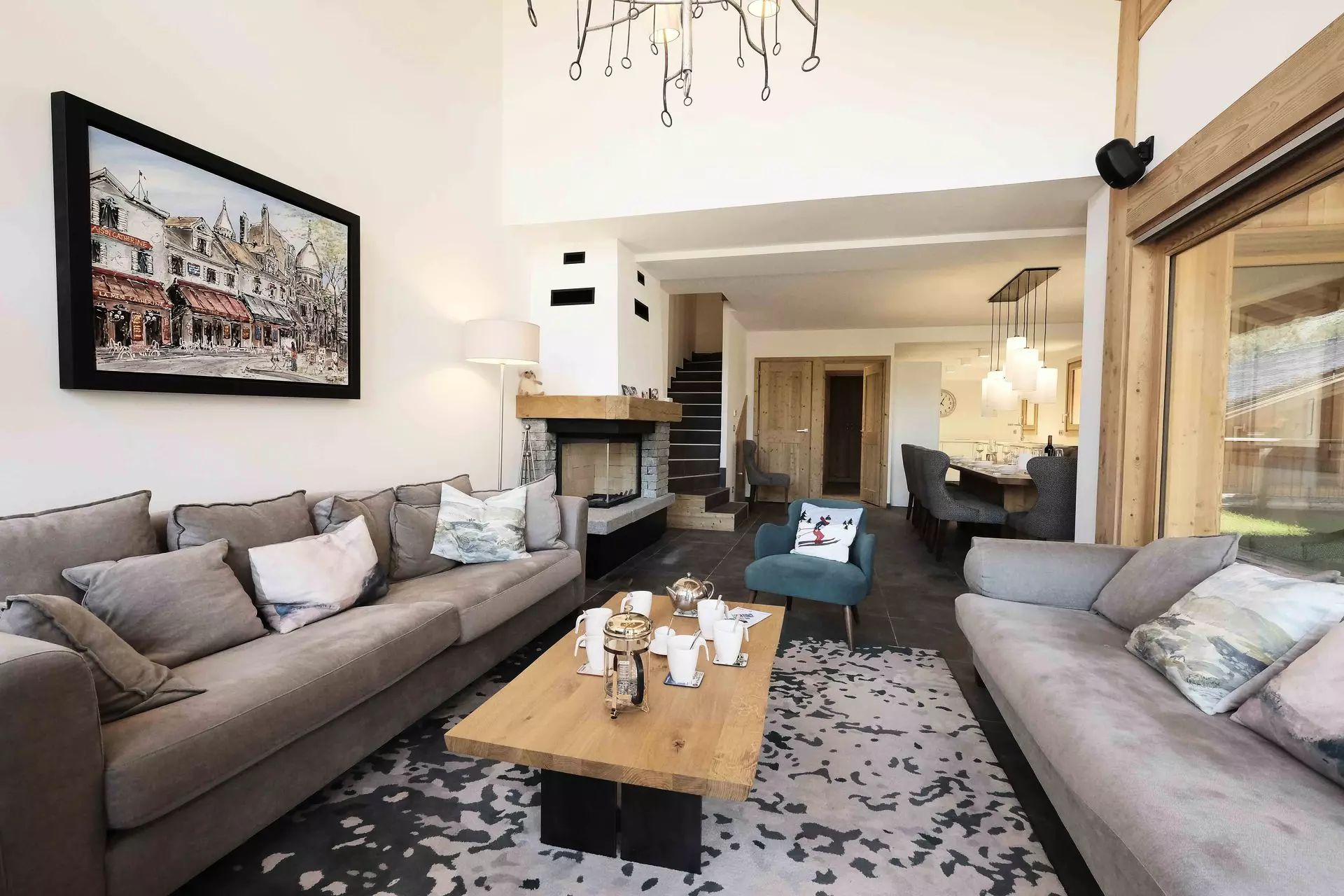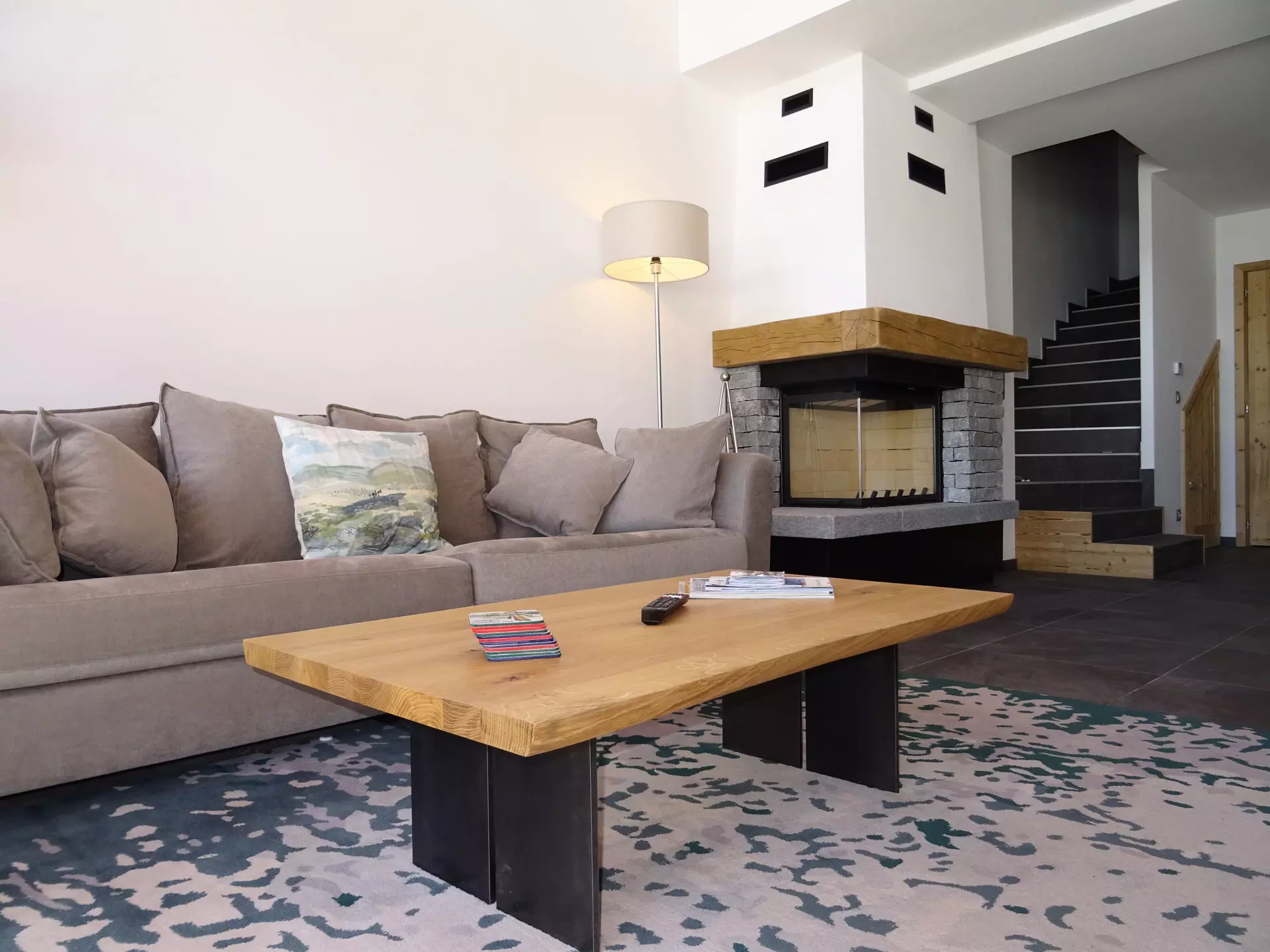 Beautiful living room opening onto the 40m² terrace with lawn. Bright and cozy living room, equipped with a television.