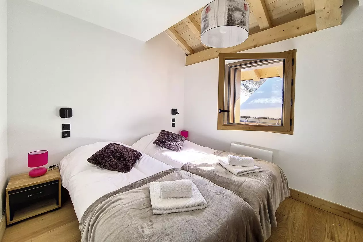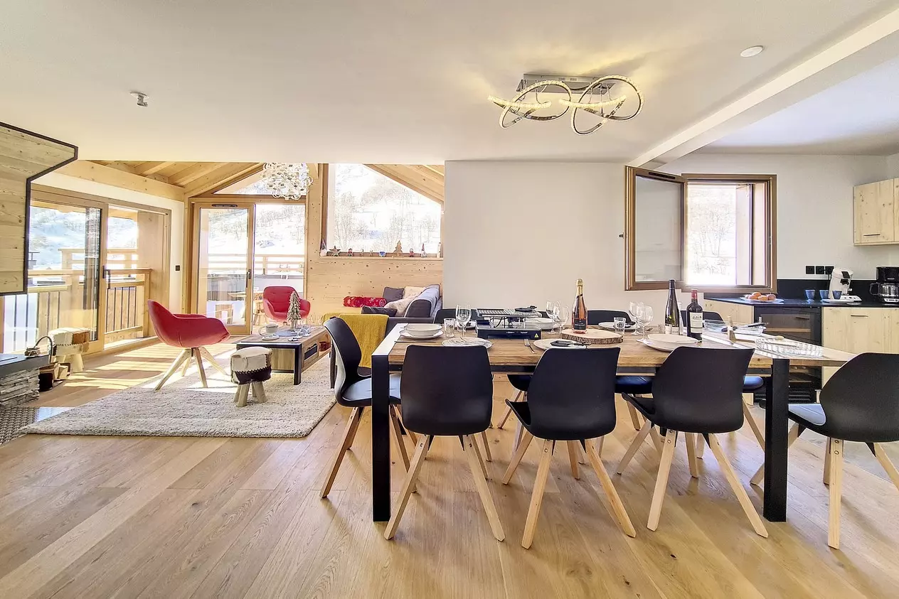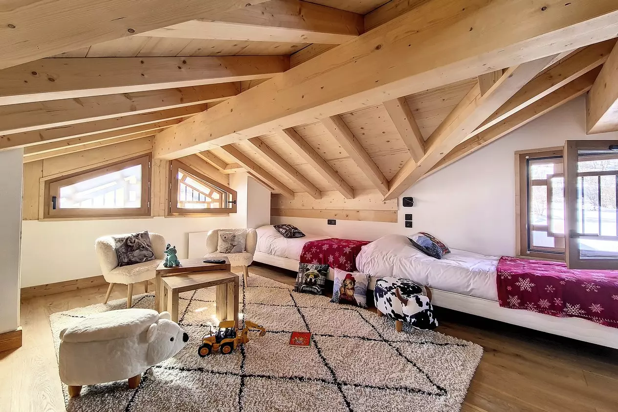 With its surface area of 138 m², this "rooftop" chalet extends over 3 levels, which can accommodate up to 10 people.