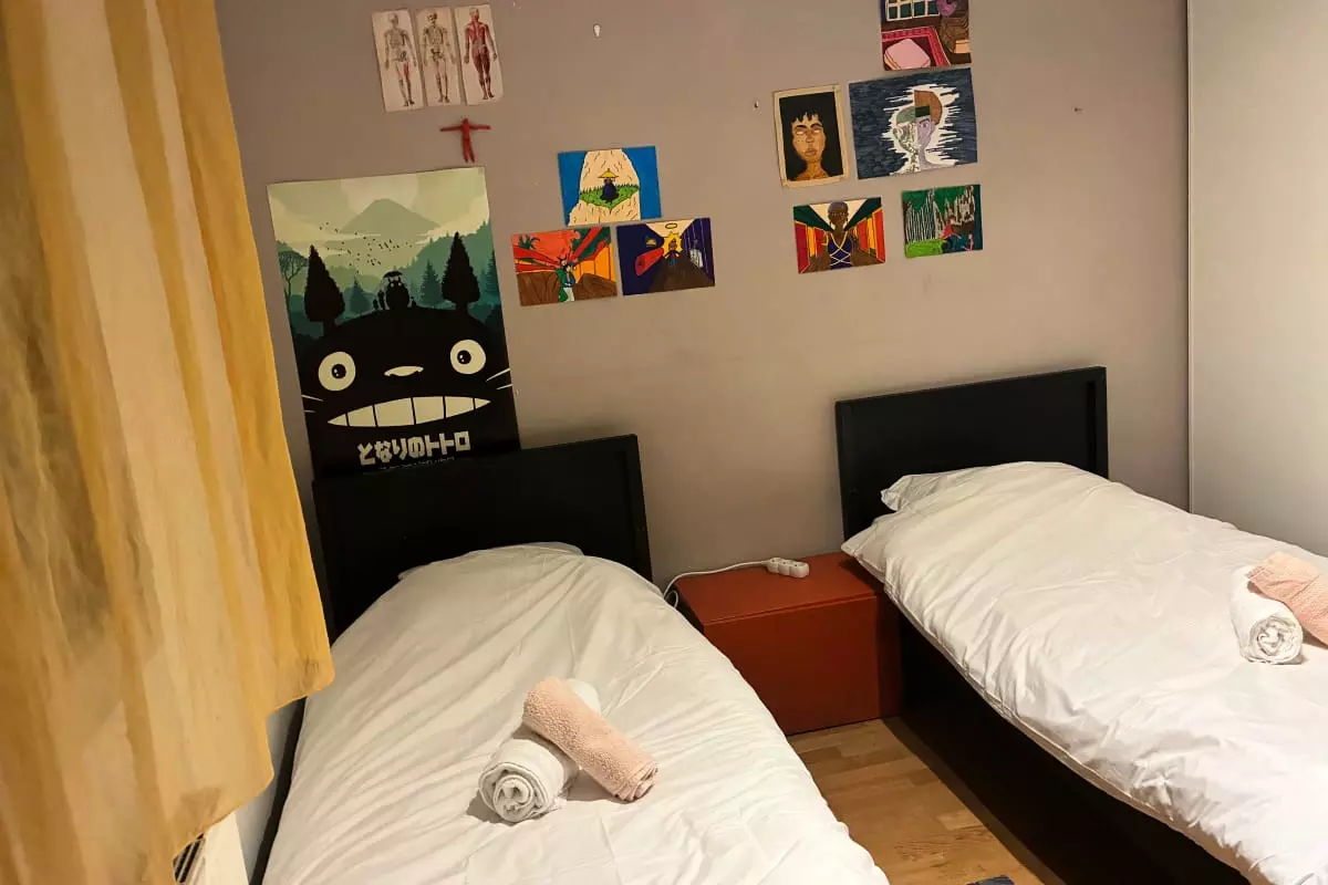 To freshen up, enjoy two functional bathrooms, and for your meals, a fully equipped kitchen awaits. After a busy day, relax in the comfortable living area.