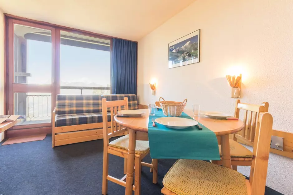 Studio cabin with a surface area of 29m² for 5 people, located on the 12th floor of the Varet 2 residence, balcony facing North/North-West with a view of Mont Blanc