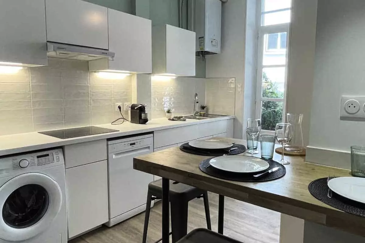For your comfort, the accommodation is equipped with modern amenities including Wi-Fi, television, a dishwasher, a washing machine, a coffee machine, a desk, a microwave, an oven, an iron and a balcony to enjoy the natural light.