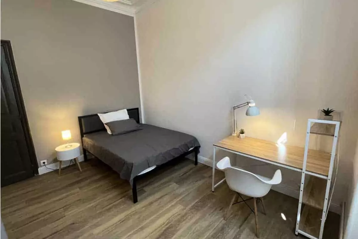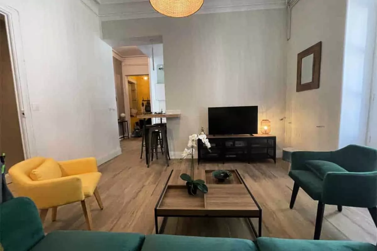 Located on the 2nd floor of a building without an elevator, the apartment includes four identical bedrooms, each equipped with a 140 x 190 cm double bed, ensuring comfort and tranquility. You will also have a fully equipped kitchen for preparing your meals, two bathrooms, and a spacious living room where you can relax after a day of exploring.