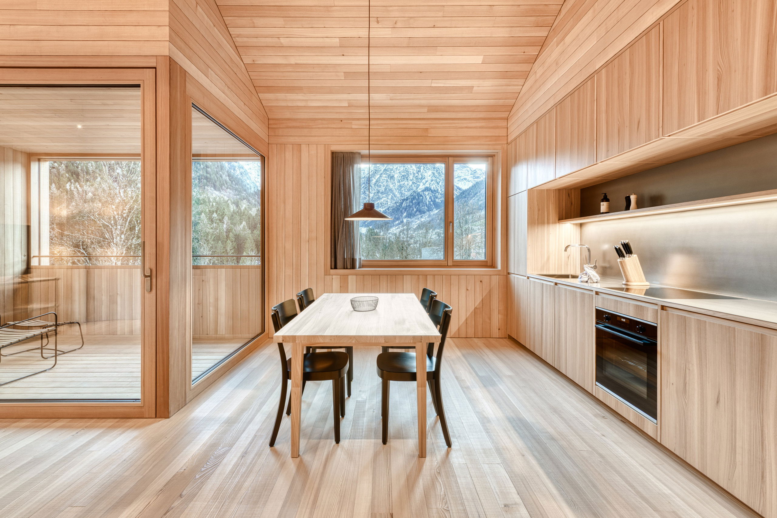 A bedroom with a comfortable double bed, a stylish bathroom with a rain shower and steam function, and a bright living area with a sofa bed (for 1 adult or 1–2 children) offer everything for relaxed holiday days. The modern kitchen is fully equipped - with oven, dishwasher and Nespresso machine. WiFi, smart home, flat TV, a personal safe. You can park in the underground car park or in front of the house, and there is also an electric charging station at the house. A ski room with shoe dryer is available to you in winter, and in summer there is a storage space for bicycles in the underground car park.