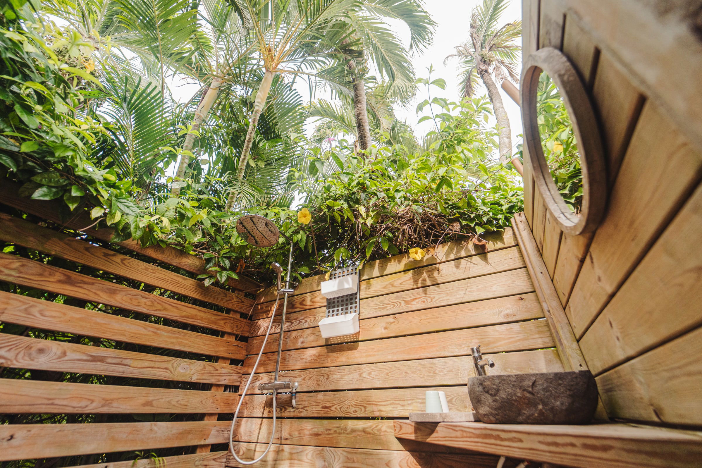 •	The outdoor showers in the bungalow
