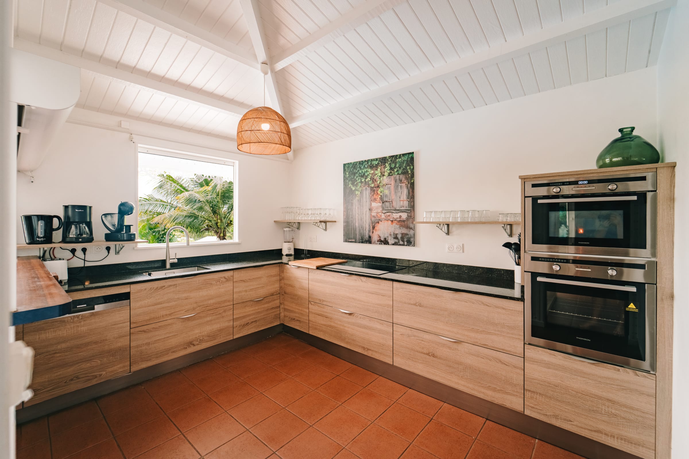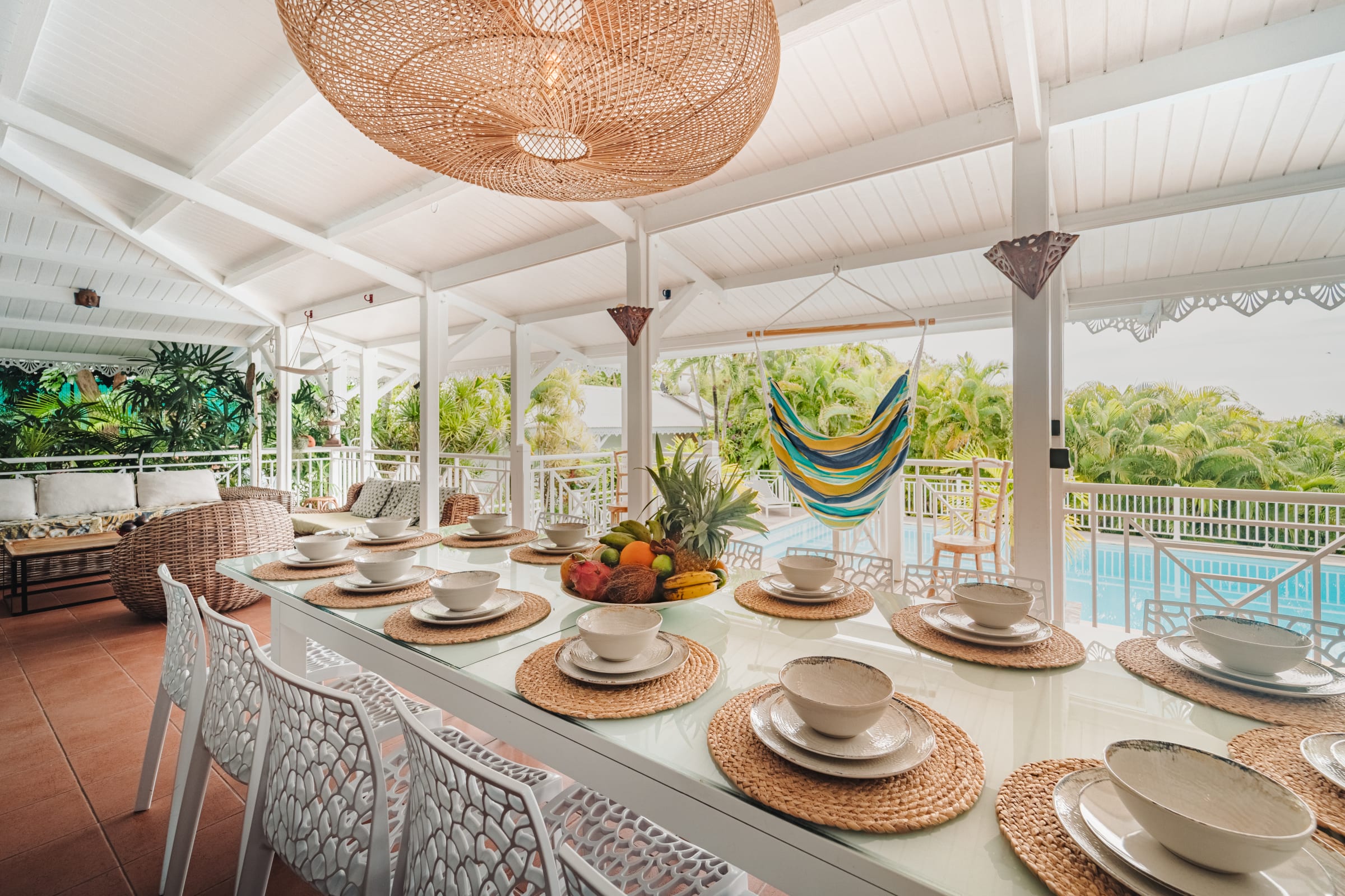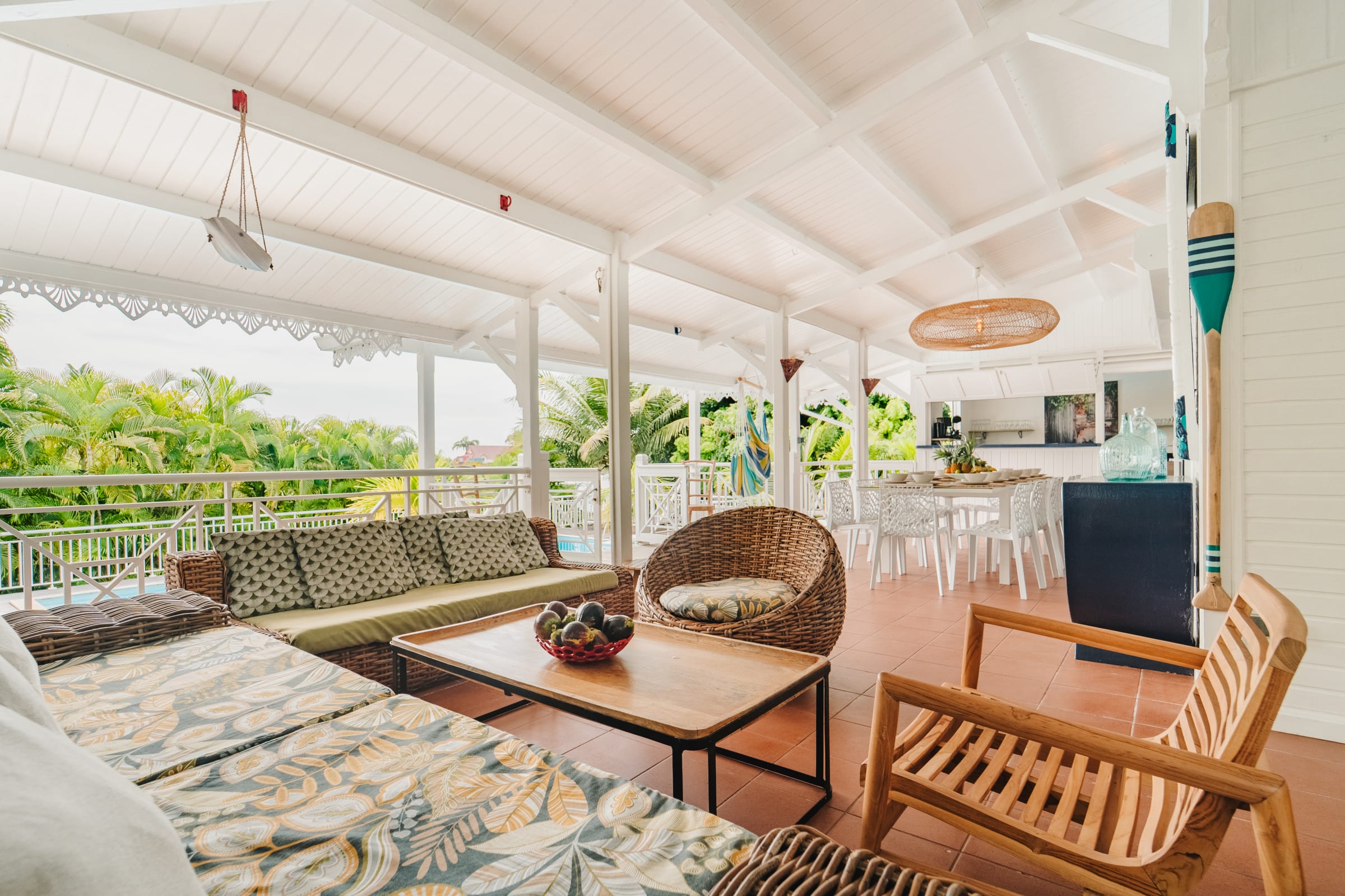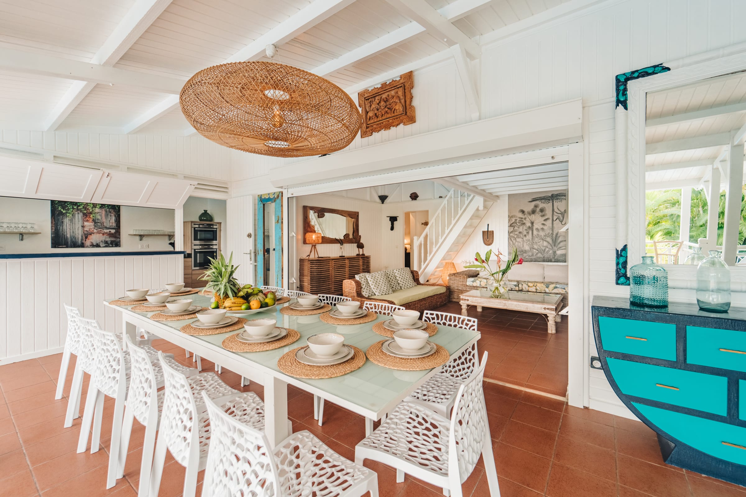 The villa is built around a large, bright living room that opens onto a spacious, shaded, and breezy terrace. The modern kitchen is fully equipped to accommodate large meals. A cozy indoor lounge with TV and Netflix also provides the perfect space for relaxed evenings.