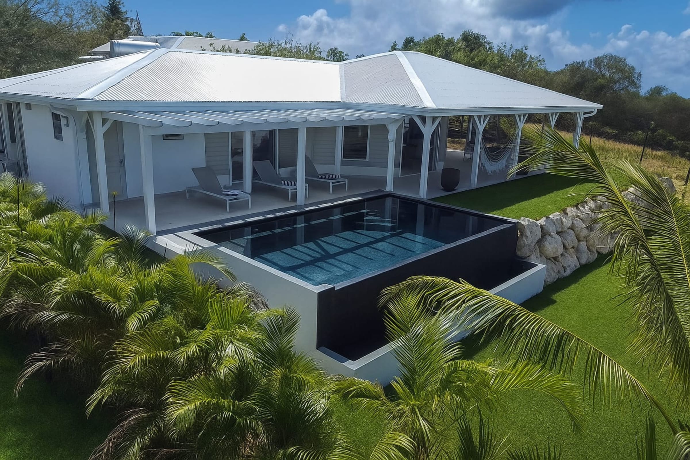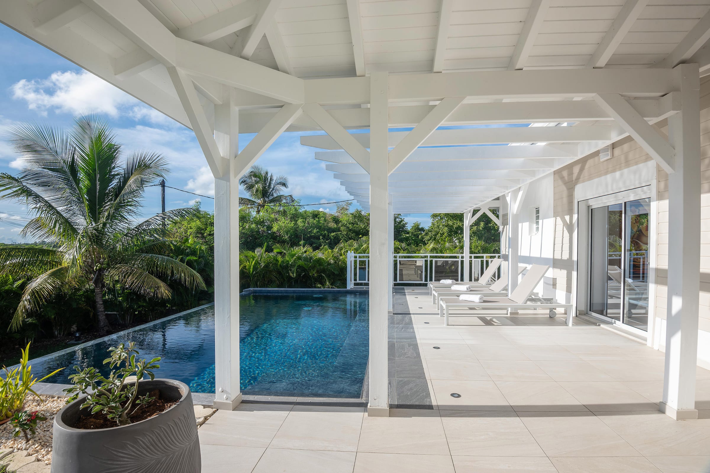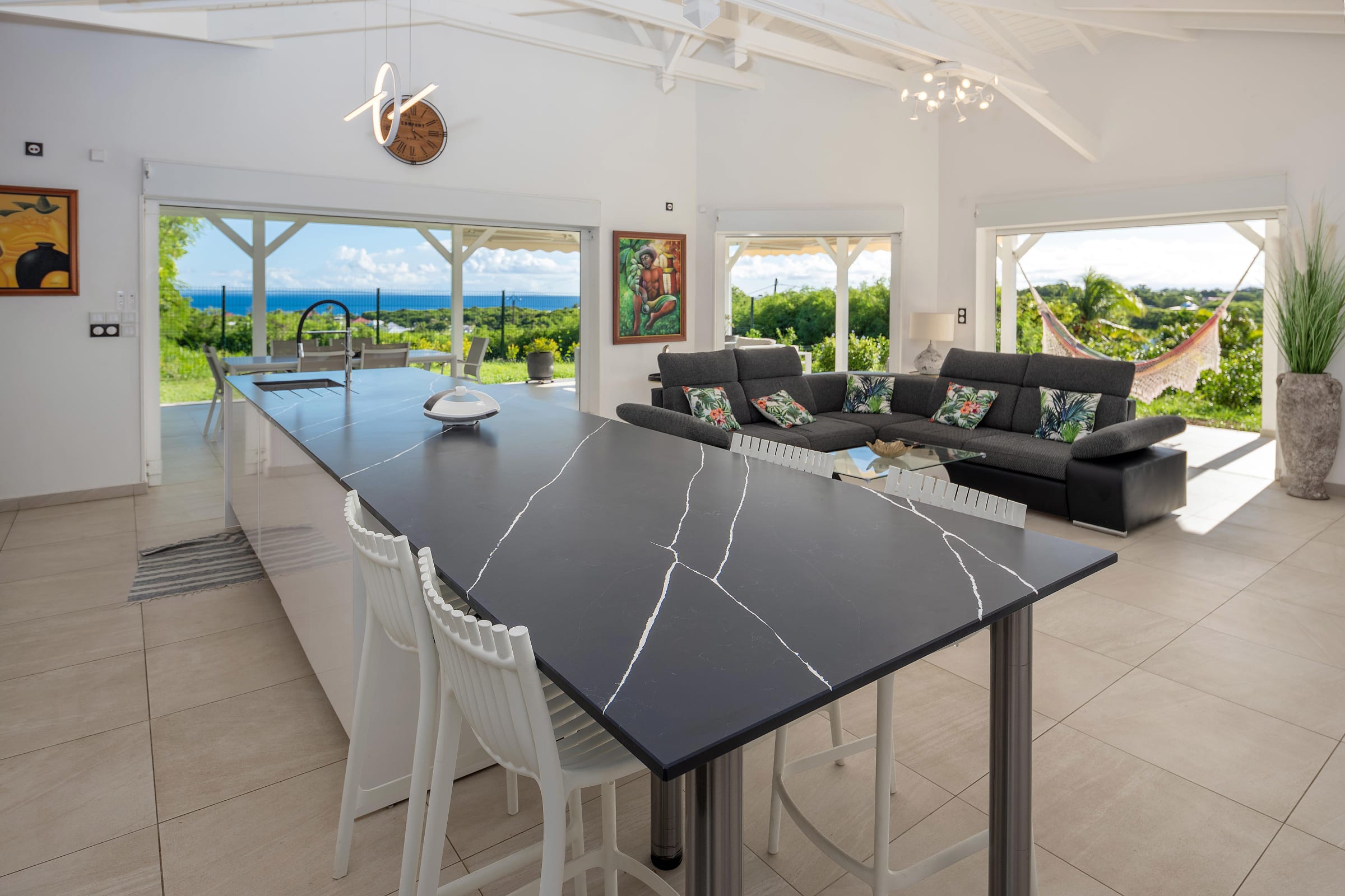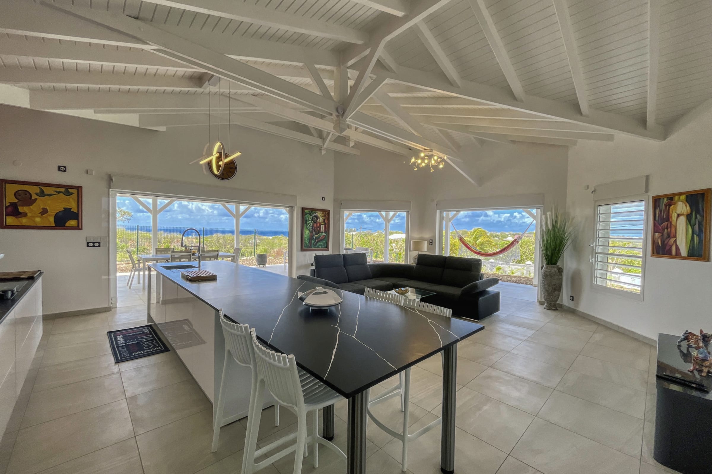 Ideally located, the villa is just a 10-minute drive from the marina of Saint-François, with its restaurants, shops, water activities, and golf course.