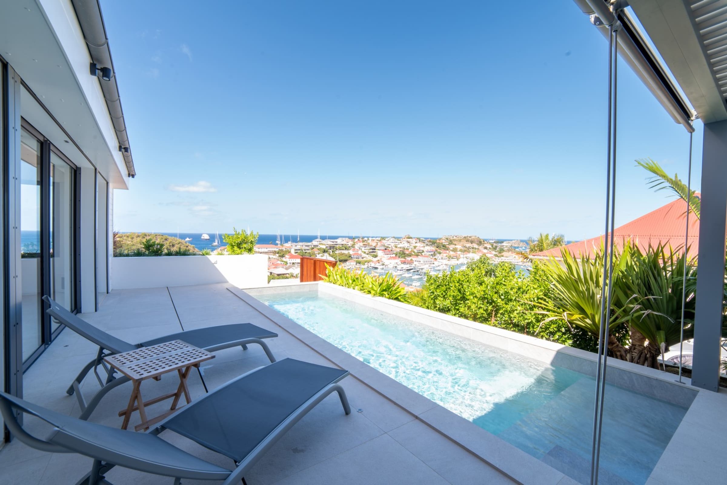 Ideally located in the heart of Gustavia, Villa Les Grenadines spans two levels and offers a prime location just steps away from the island’s best restaurants. Modern and newly built, this villa is the perfect choice for an exceptional vacation. From the moment you arrive, you’ll be captivated by the panoramic view over the sea and the harbor of Gustavia.