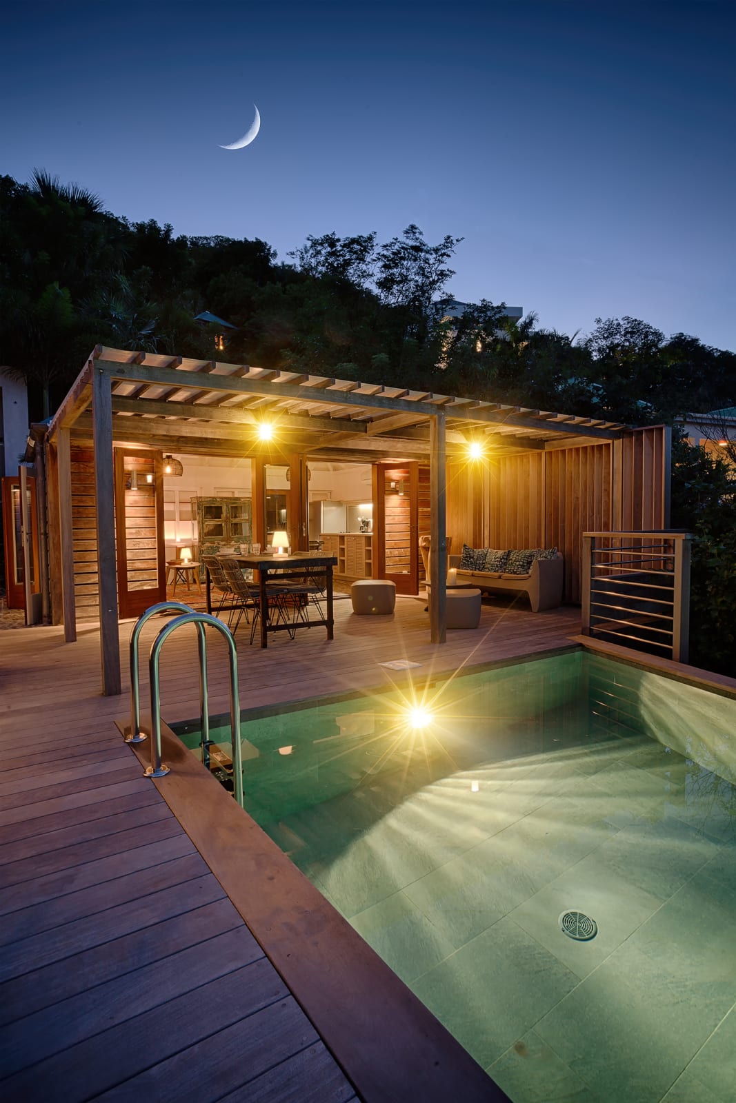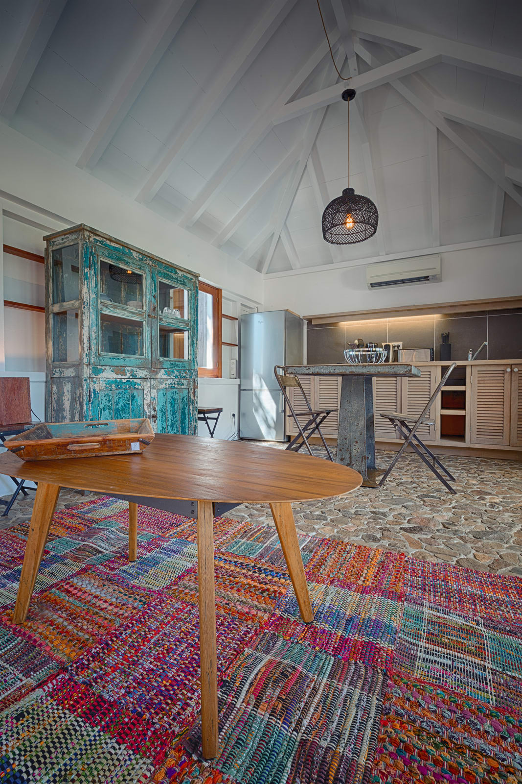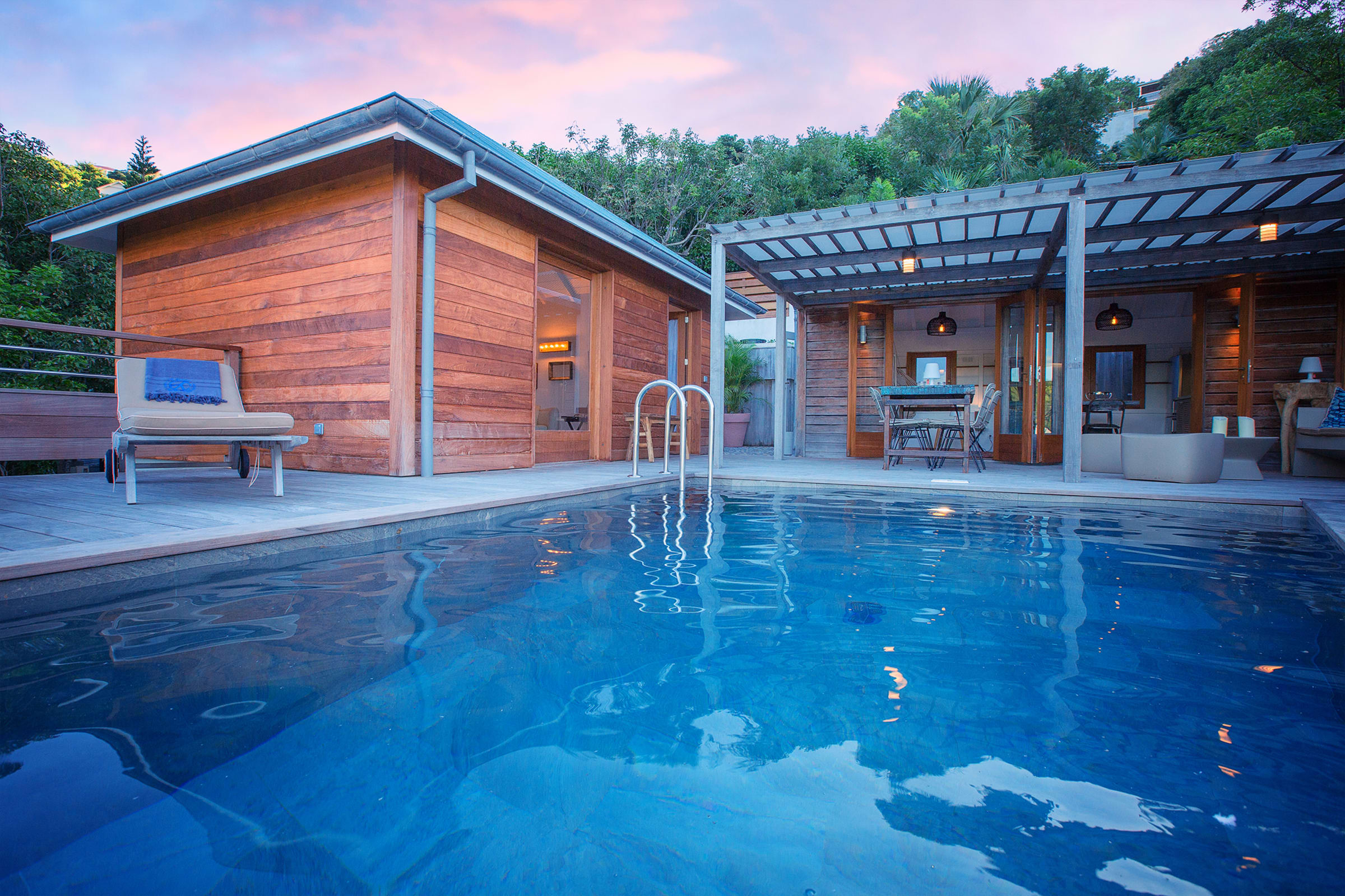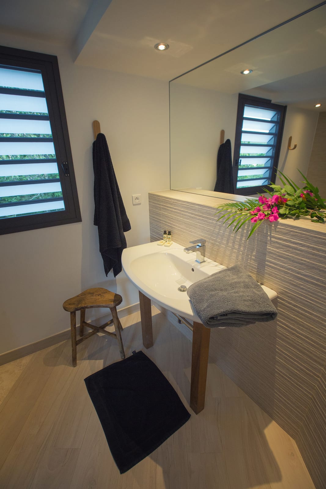 The outdoor terrace includes a lounge area, sunbeds, and a barbecue, all with a beautiful view of the Caribbean Sea. A small private pool nestled among the island’s lush vegetation adds the perfect touch of refreshment. The atmosphere is peaceful, private, and perfectly suited for a romantic escape.