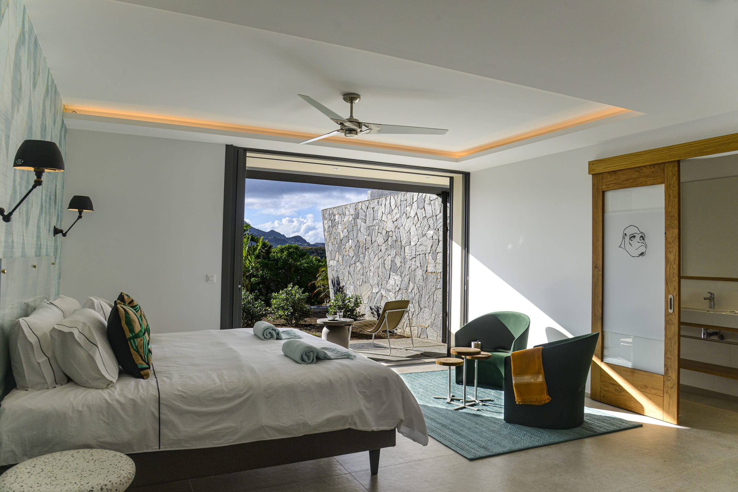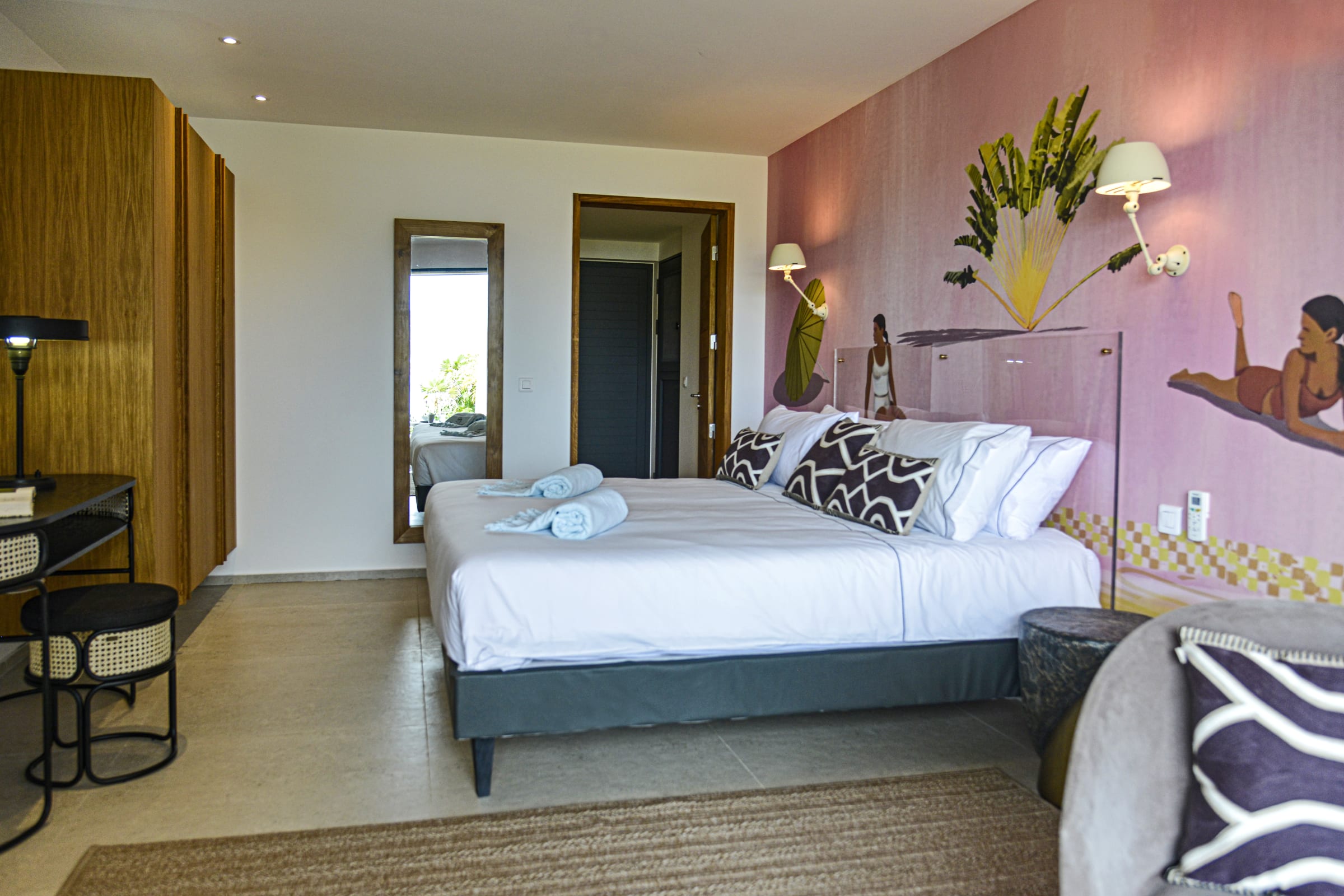 Built on two levels, Villa Marcel includes six comfortable air-conditioned double bedrooms, each with a king-size bed and elegant decor. Three bedrooms are located on the main level, and the other three on the lower floor. The upper-level bedrooms each have an en-suite bathroom and direct access to the terrace. On the lower level, two of the bedrooms are connected and share a bathroom—making this floor ideal for a family.