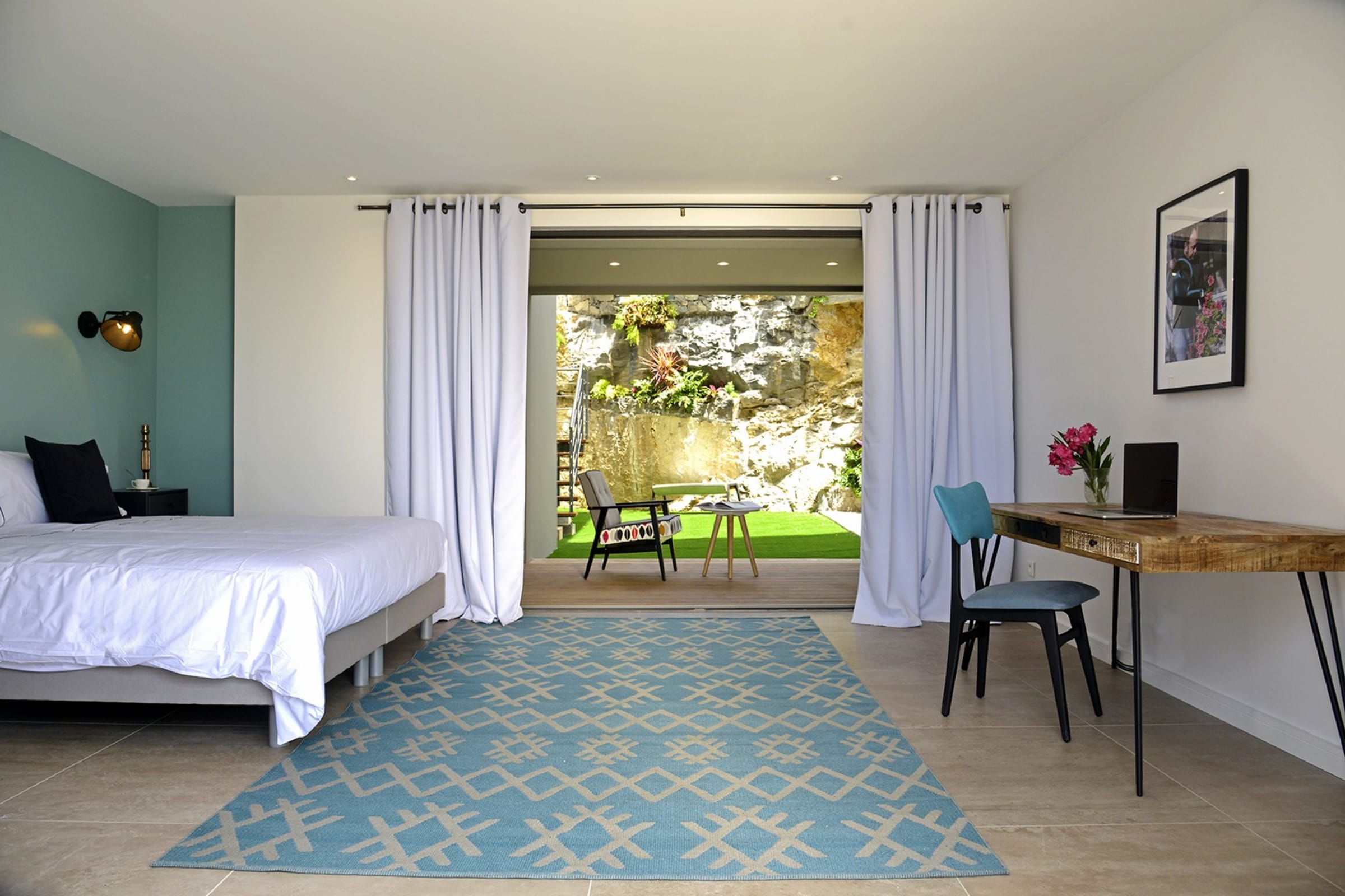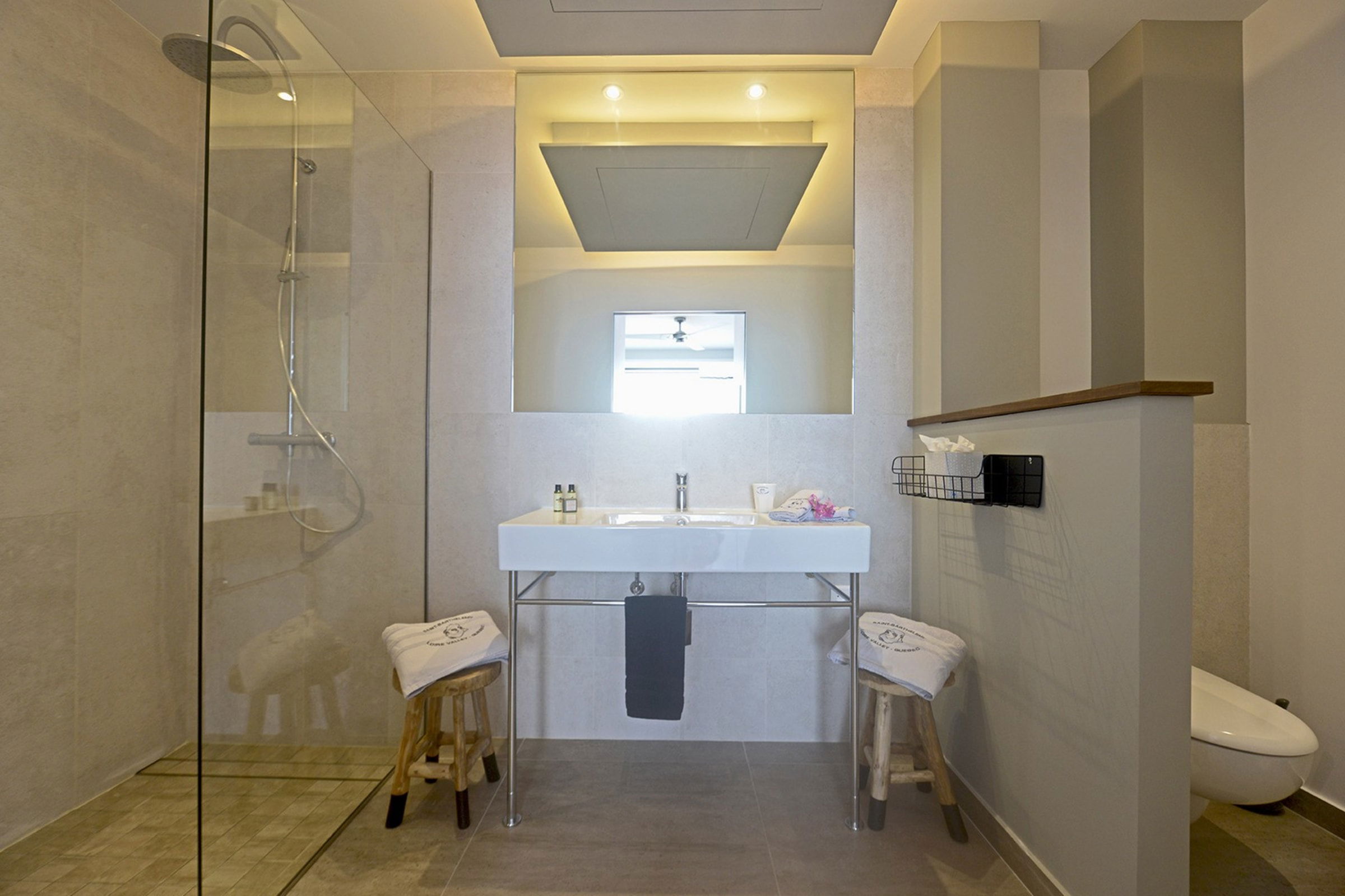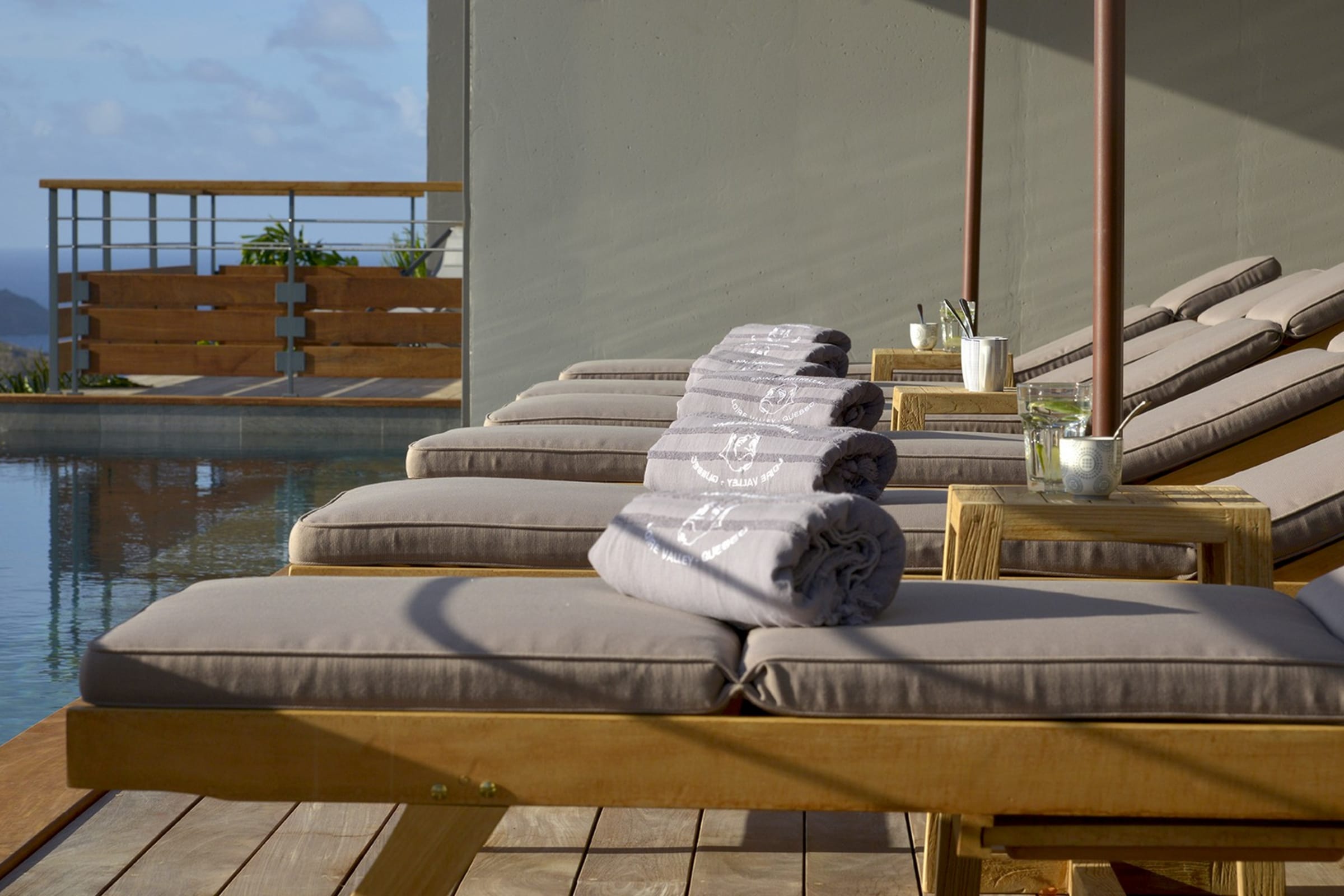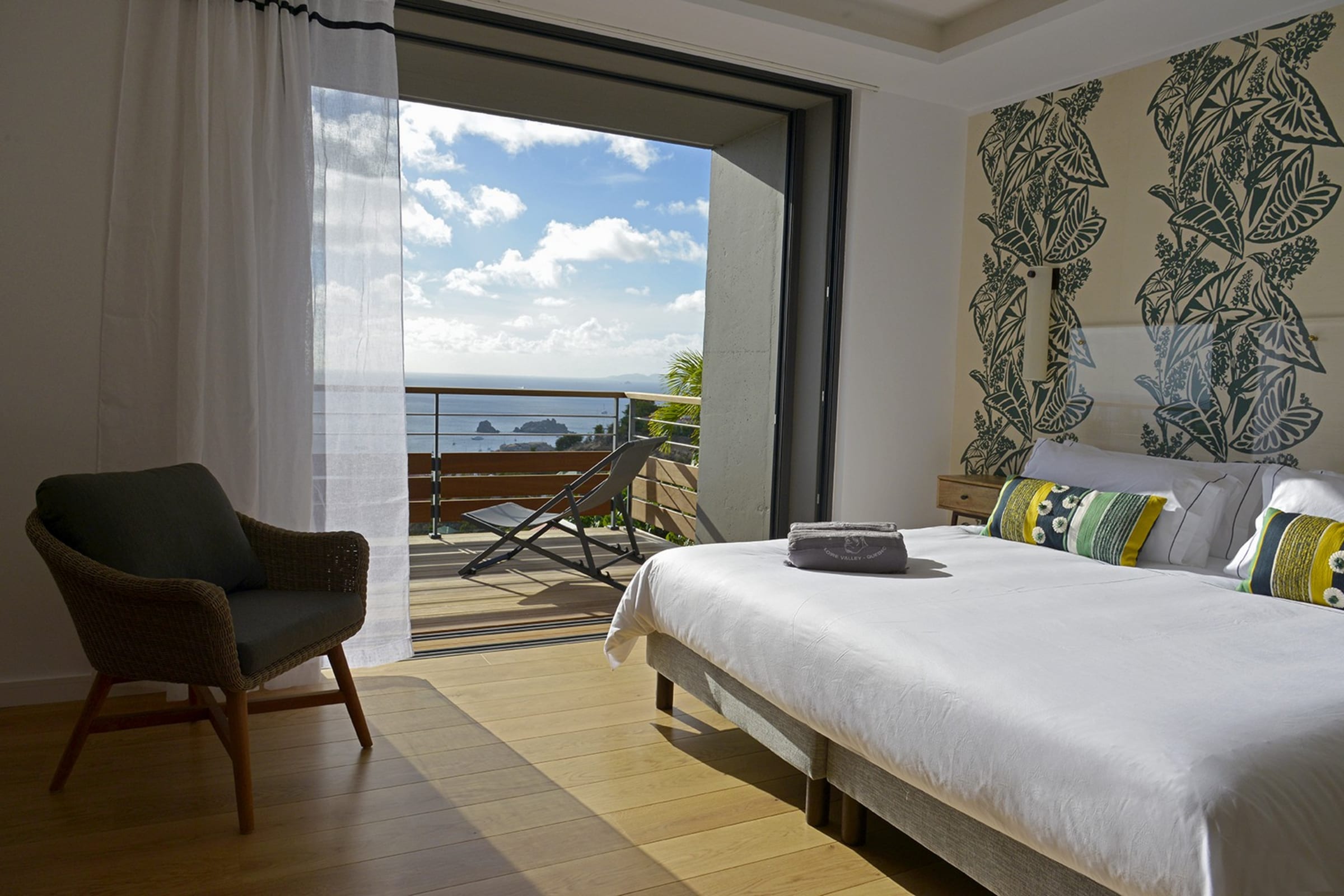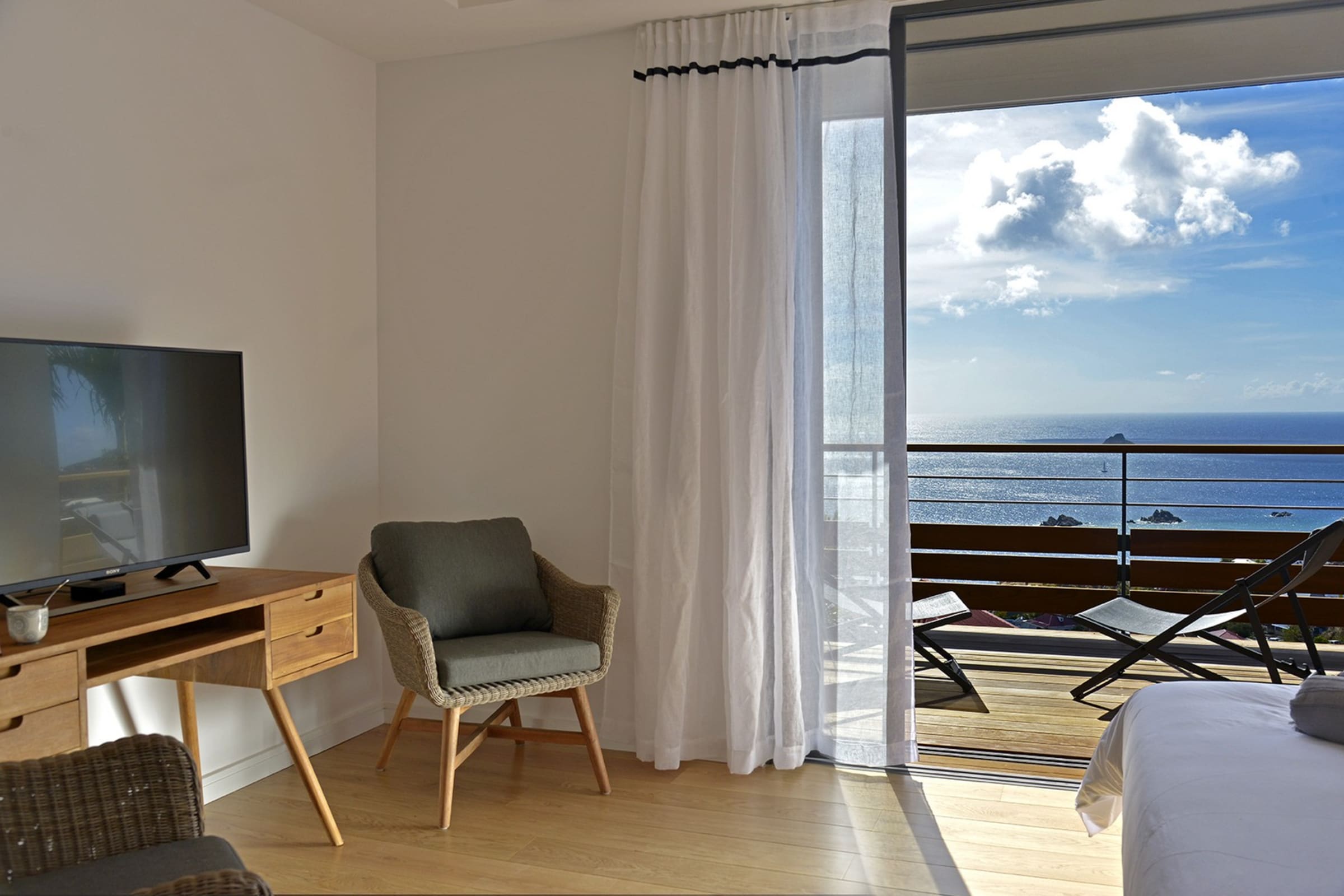 Built over two floors, this luxury villa features 4 air-conditioned master suites with ocean view. Each has king-size beds that can be separated into twins, an en-suite bathroom with walk-in shower and a walkin closet. Three of them are located on either side of the pool, two of which feature a balcony. The fourth bedroom is on the lower level, with a terrace, kitchenette, private entrance, and parking.