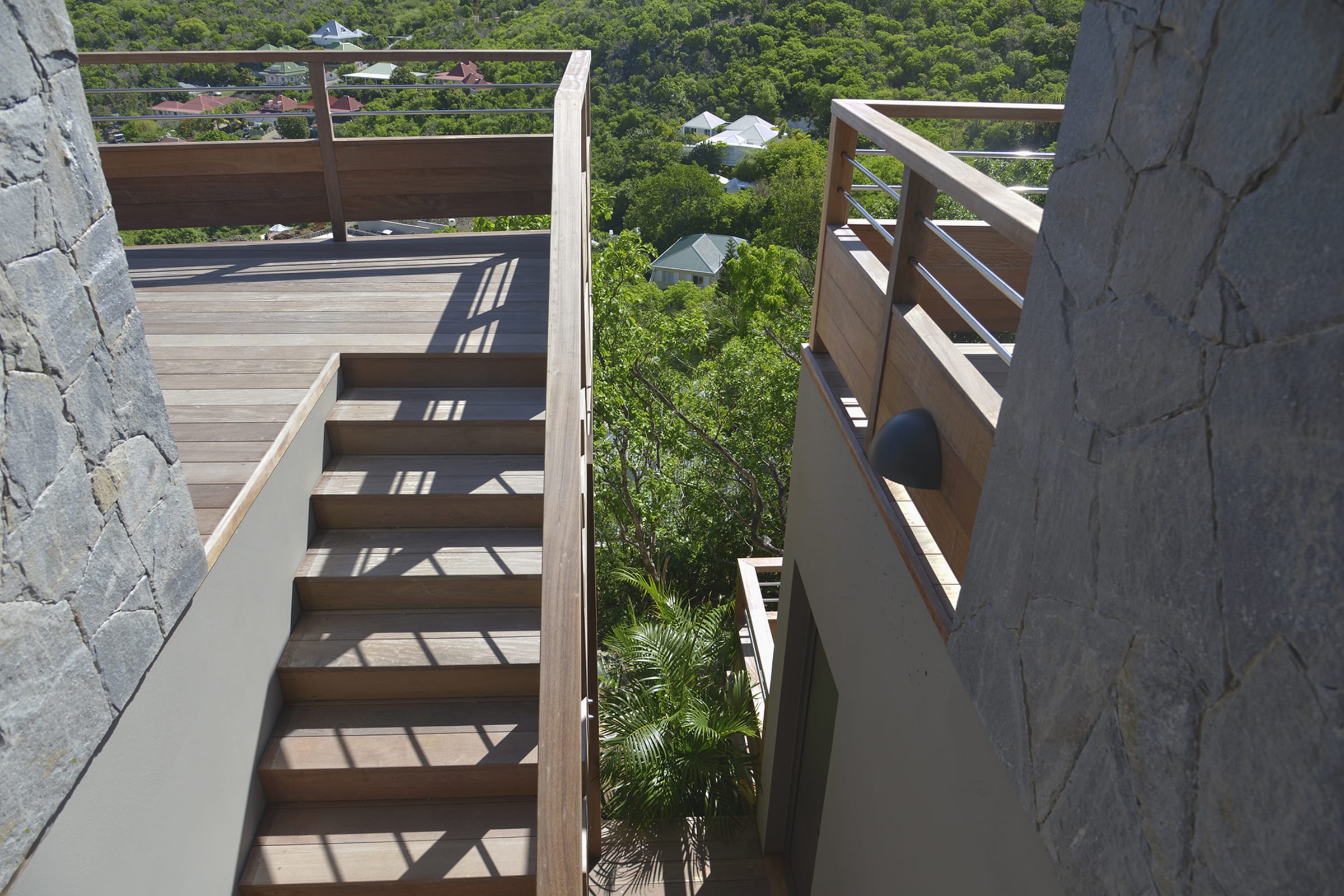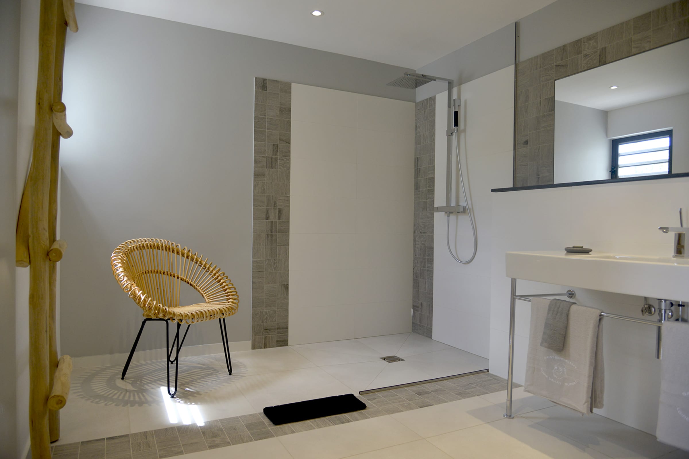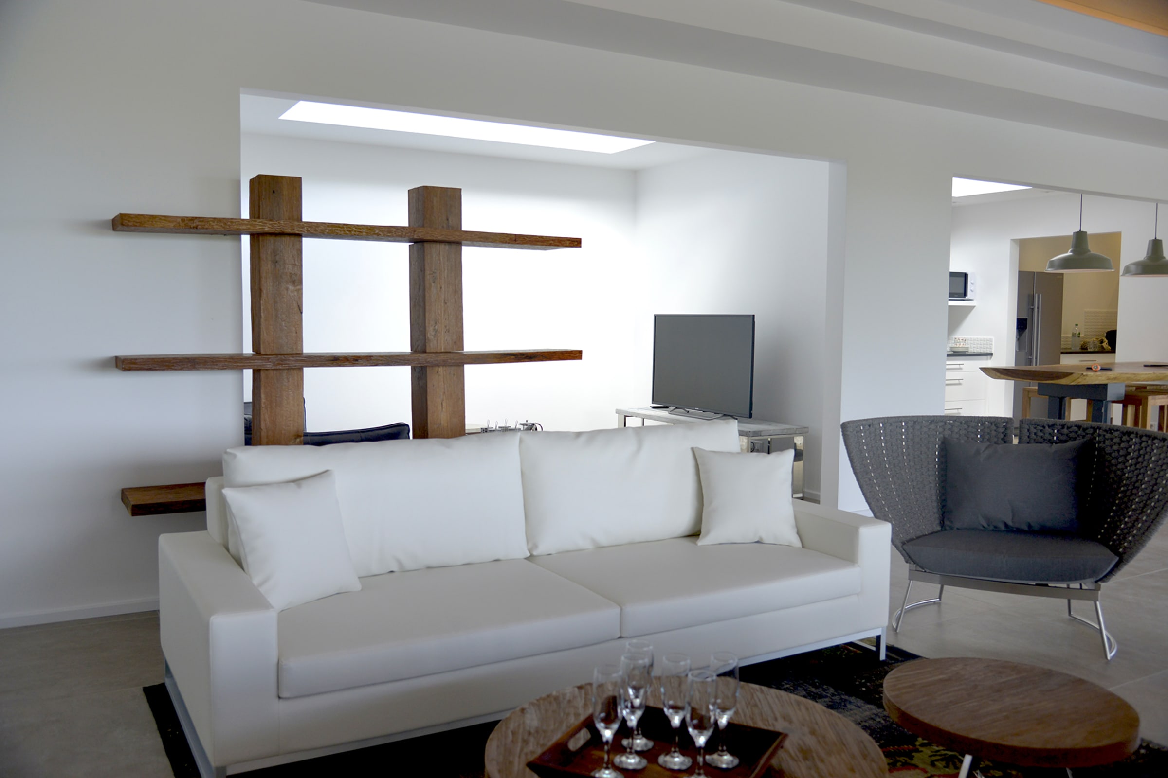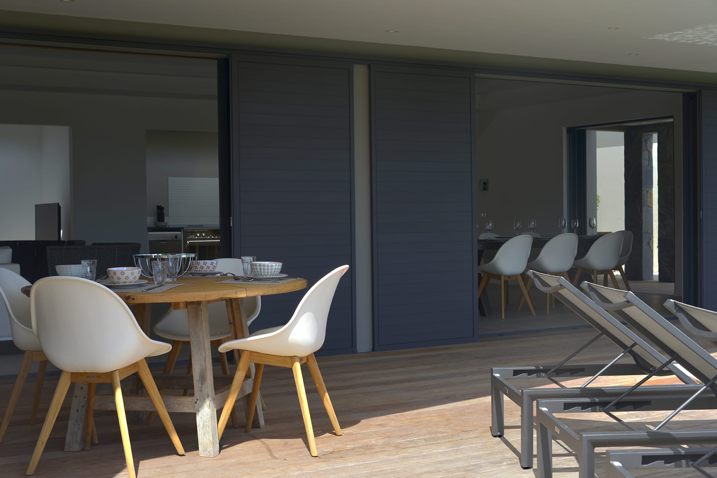 The spacious wooden deck includes a 15m infinity pool, an outdoor nice little dining area and deckchairs— all facing the sea. The perfect place to relax and unwind in peace. Besides, you will have a direct proximity to the sublime beach of Flamands, enjoying delicious moments in the sun, during a game of beach volleyball or snorkeling to observe the seabed.
