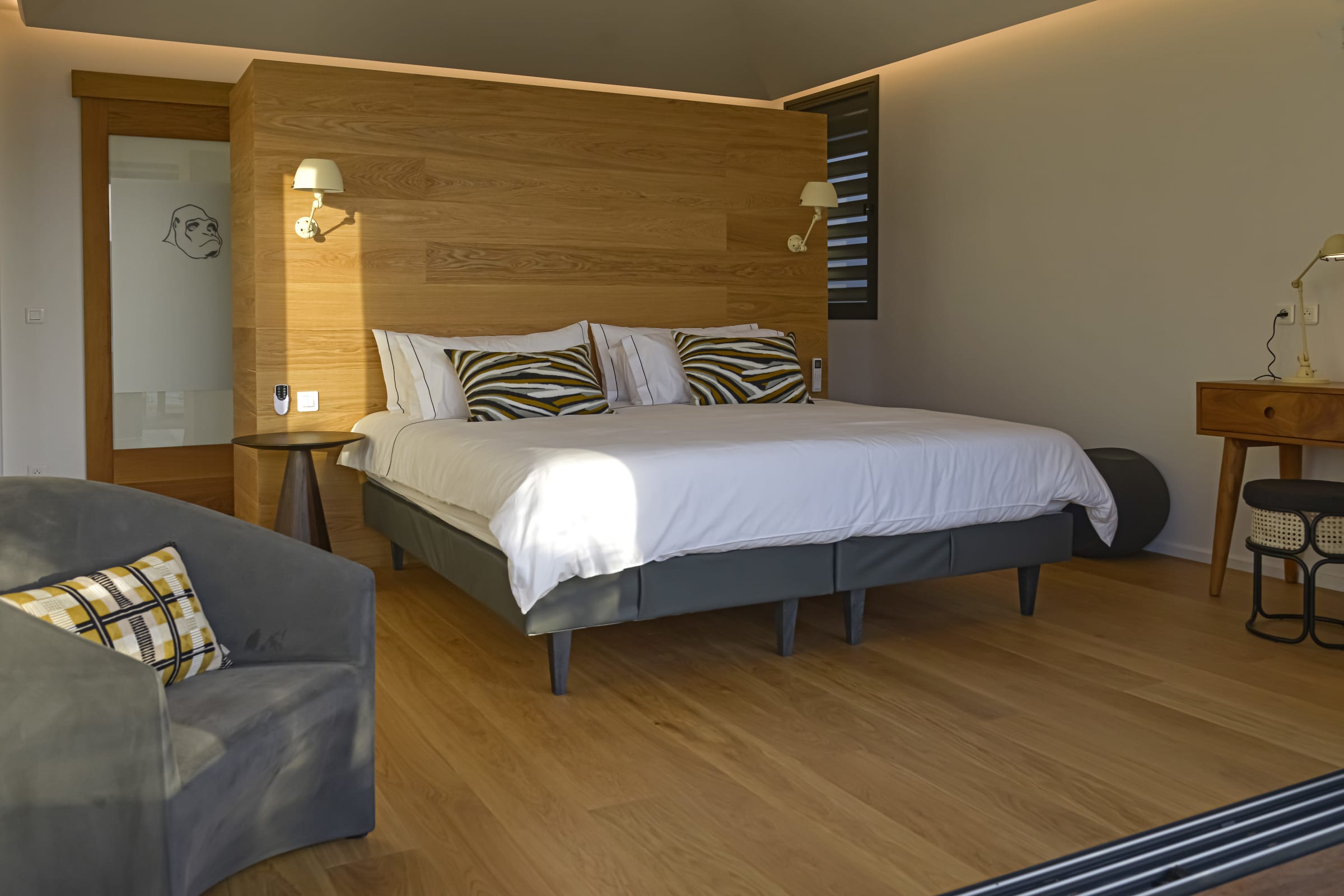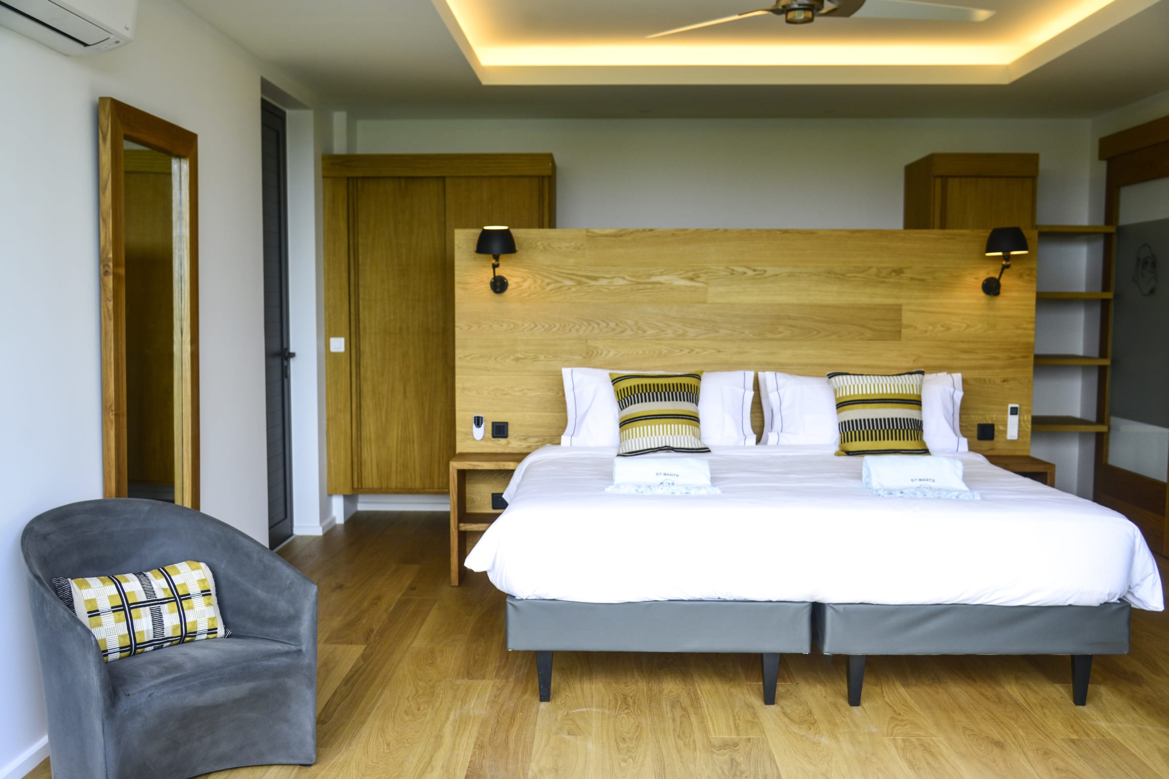 Built on two levels, Villa Marcel includes six comfortable air-conditioned double bedrooms, each with a king-size bed and elegant decor. Three bedrooms are located on the main level, and the other three on the lower floor. The upper-level bedrooms each have an en-suite bathroom and direct access to the terrace. On the lower level, two of the bedrooms are connected and share a bathroom—making this floor ideal for a family.