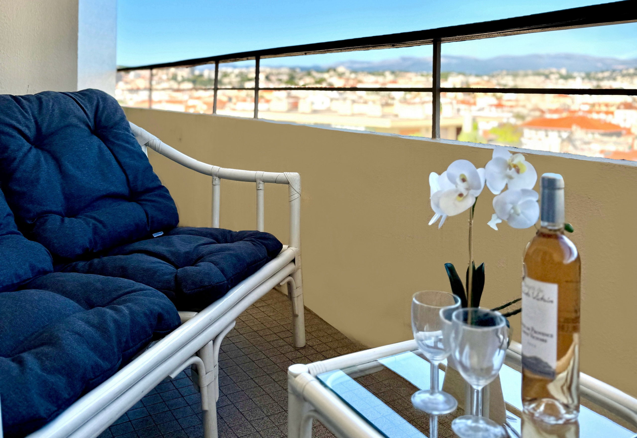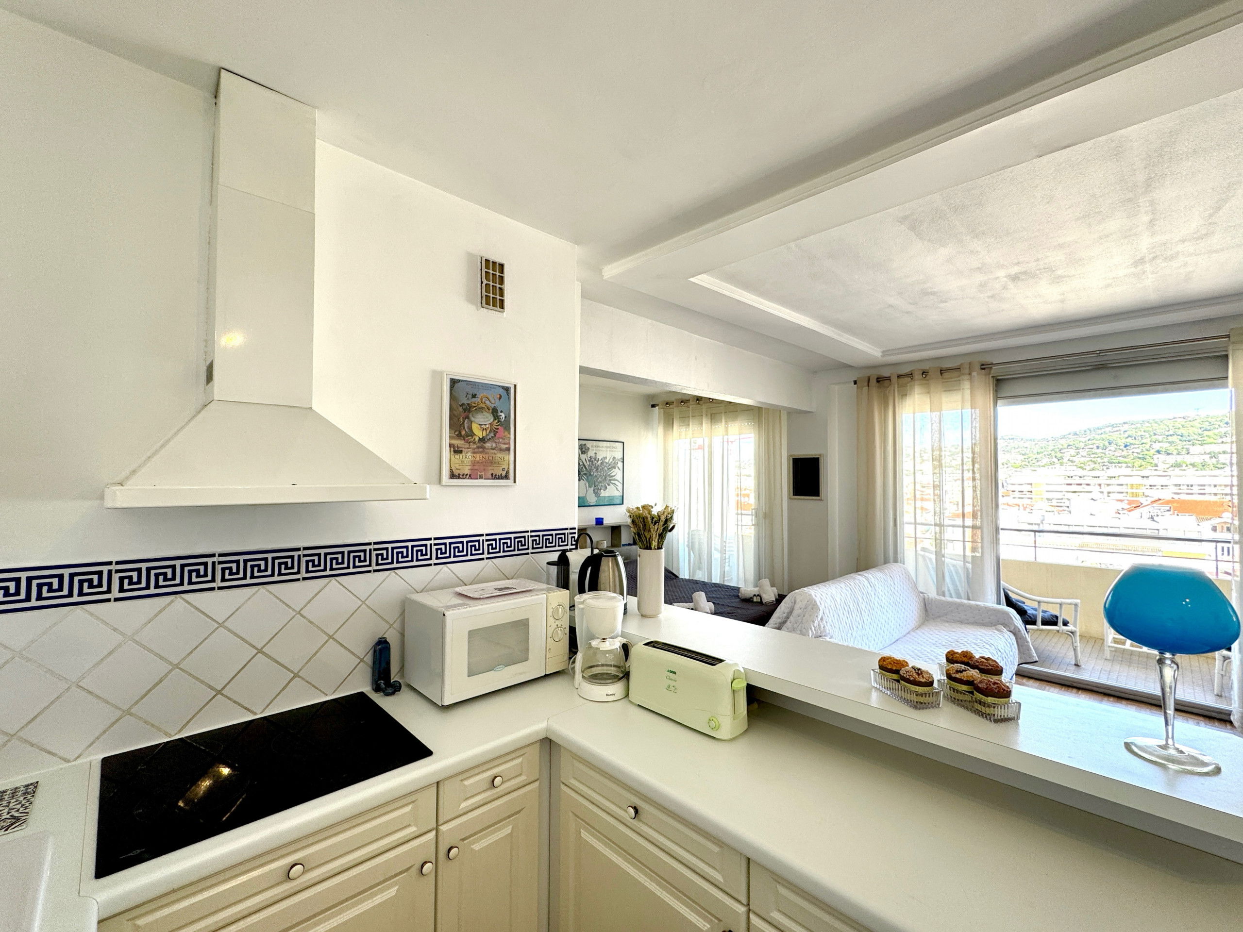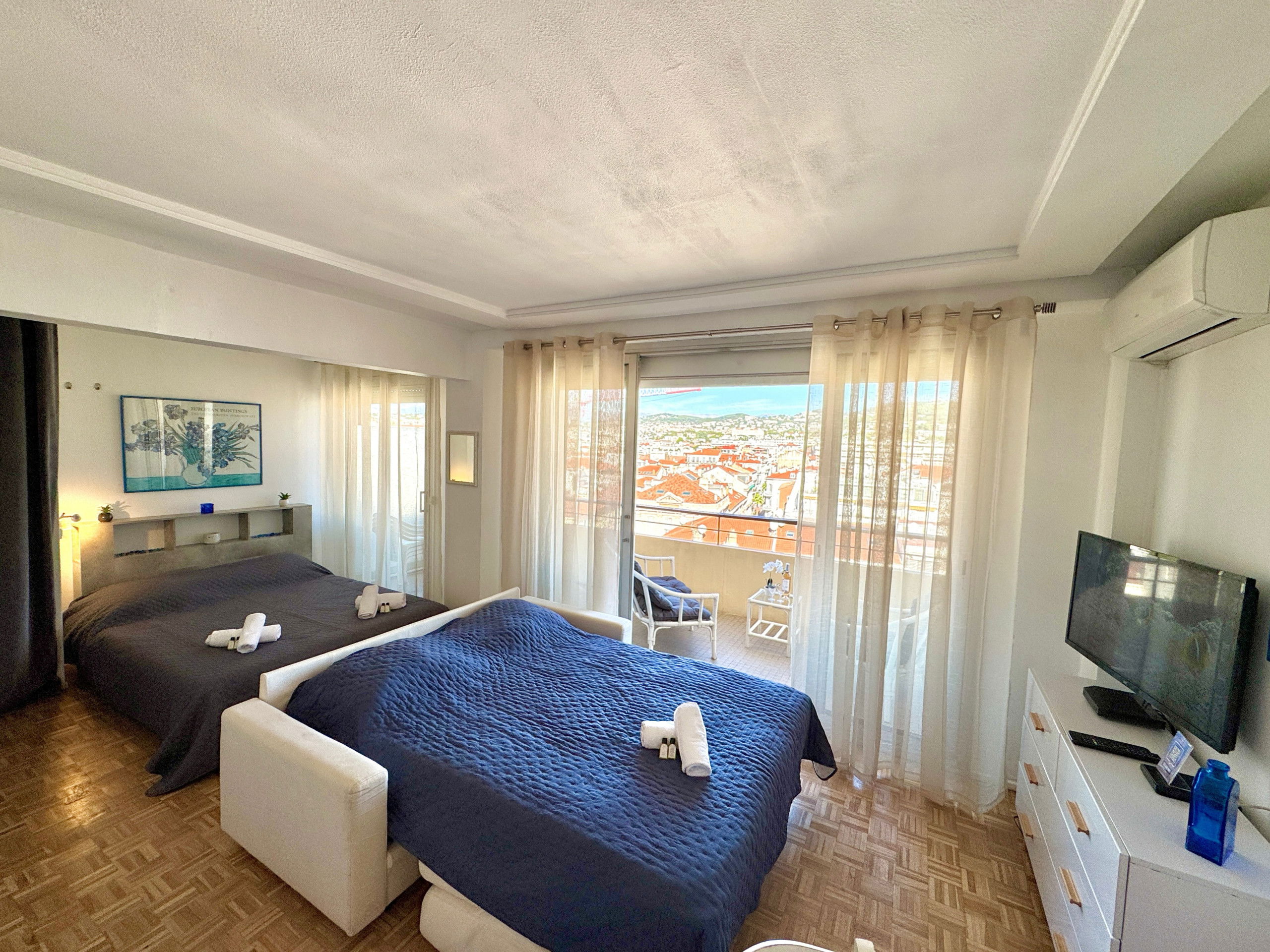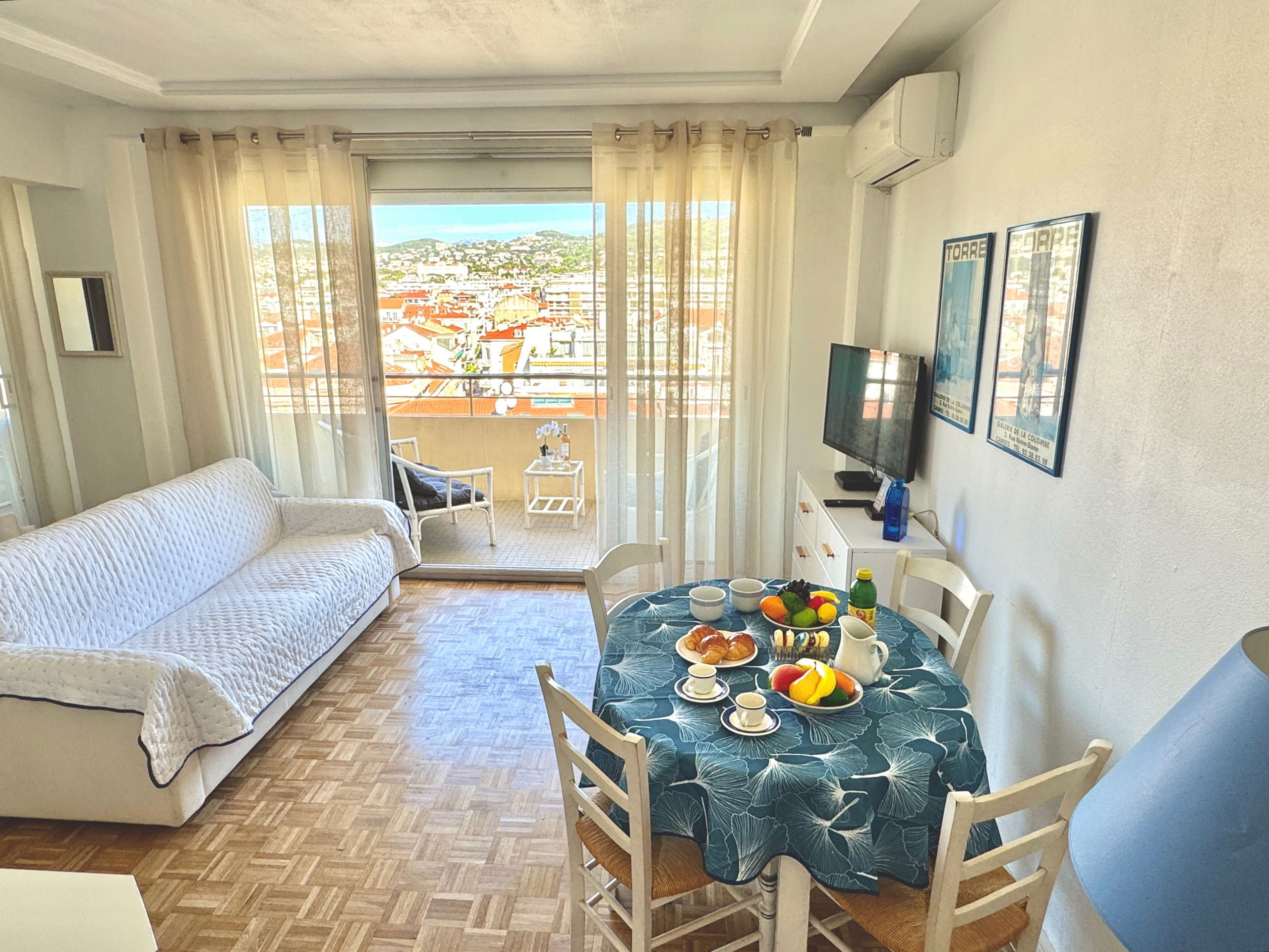 Living room with bed for 2 people (160X200), sofa bed for 2 people, large terrace overlooking Cannes hills