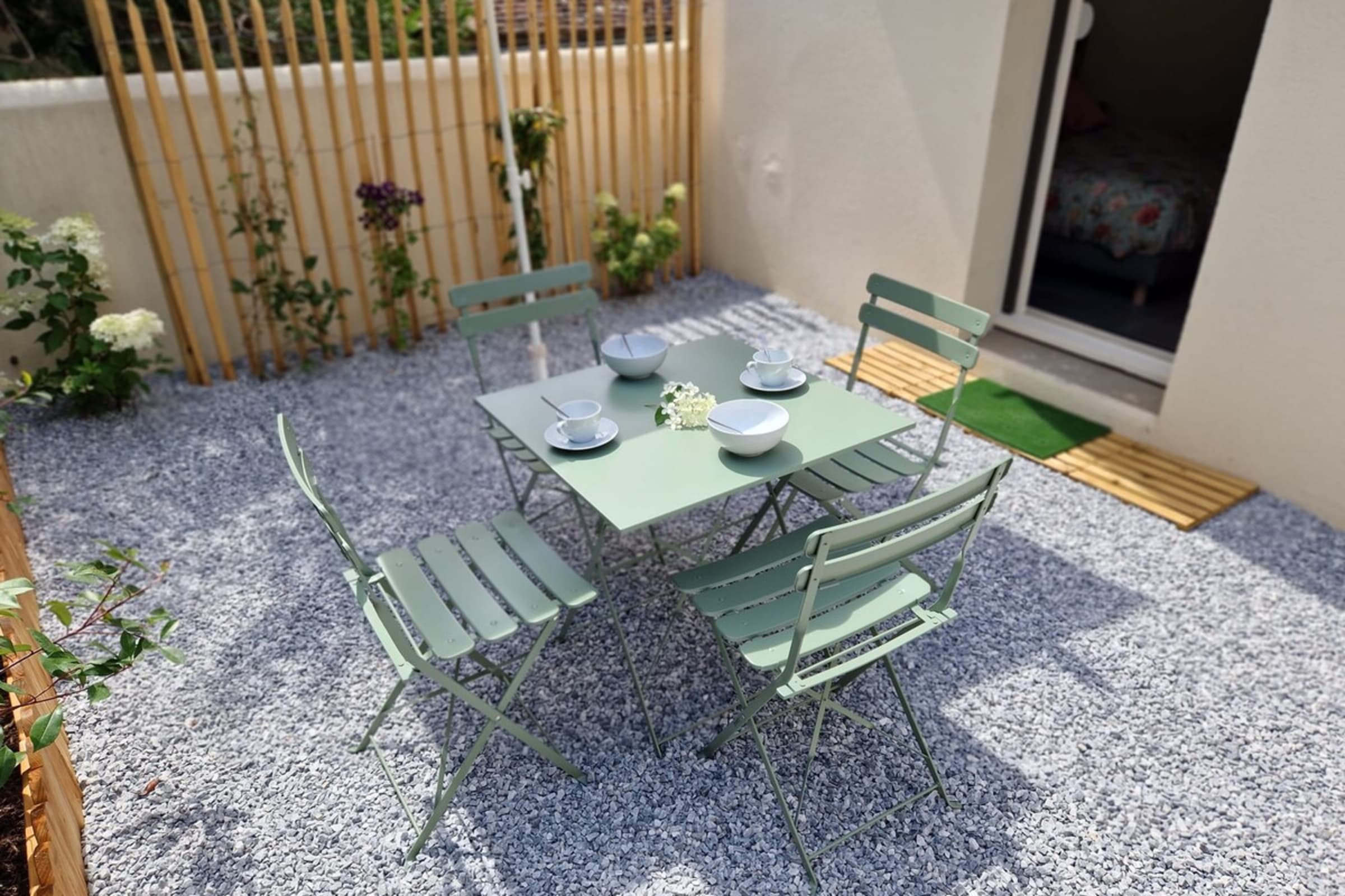 Enjoy your very own outdoor space, complete with table and chairs, perfect for a sunny breakfast or a relaxing moment after a busy day.