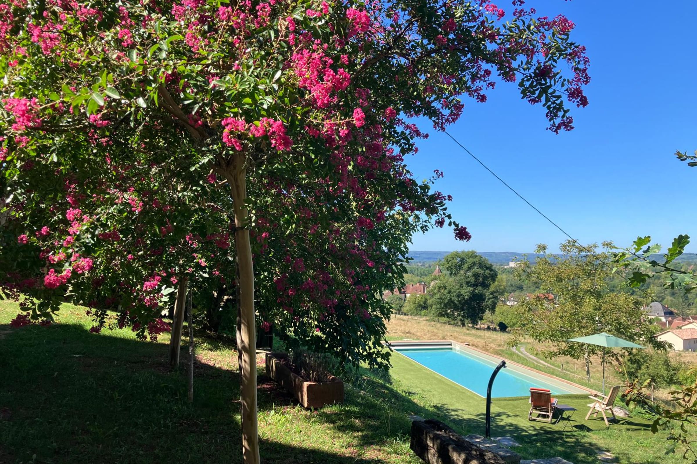 Ici, tout invite à la déconnection dans le jardin paysagé avec sa vue dégagée sur le paysage lotois.