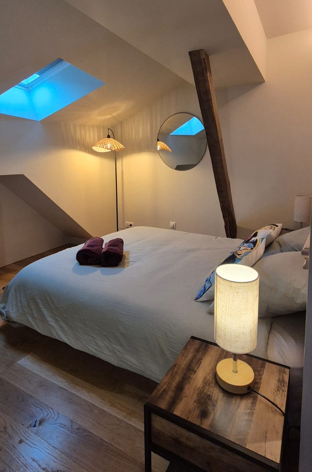 You,ll stay in the heart of the medieval town, a 2-minute walk from the historic market hall. Across the street, you can enjoy pastries from Chez Marie, access the supermarket, and numerous bars and restaurants.