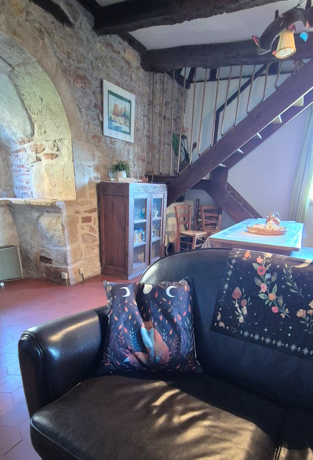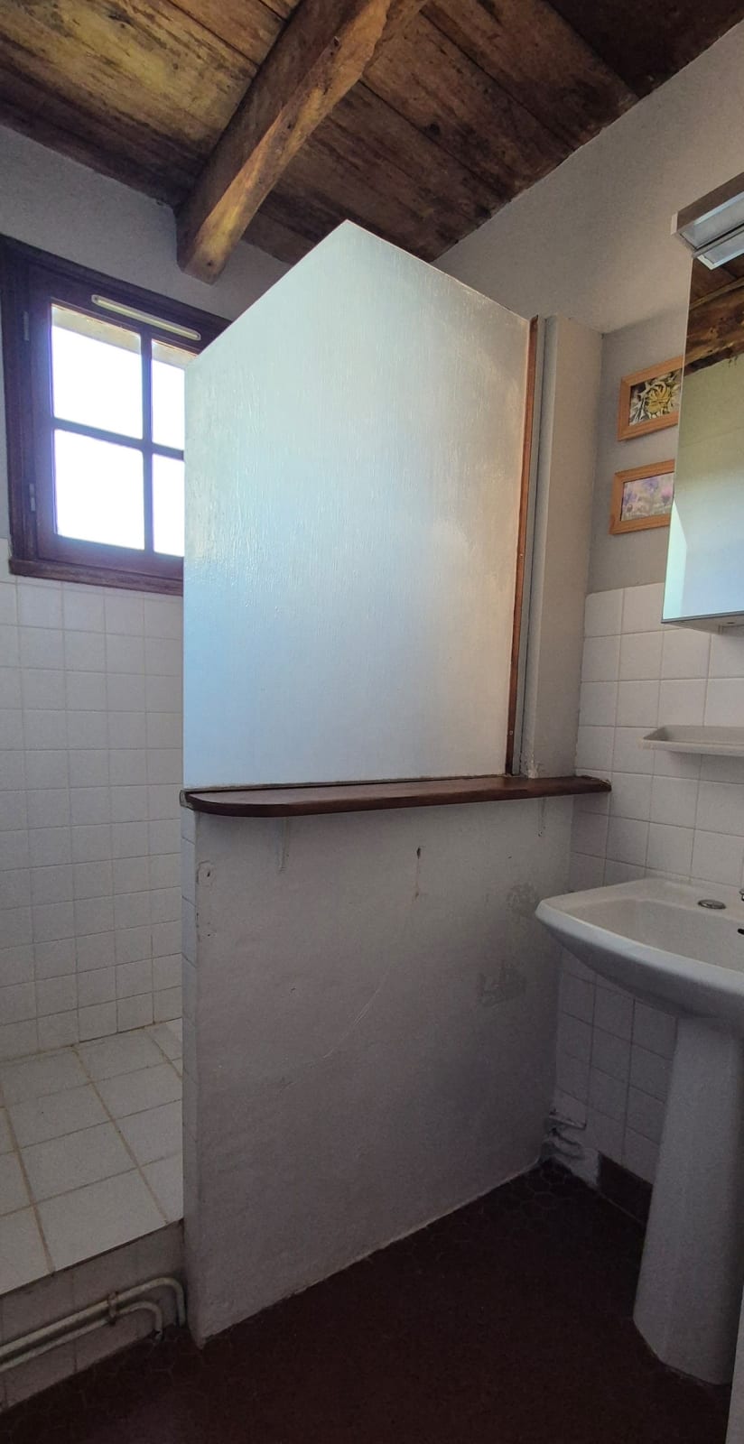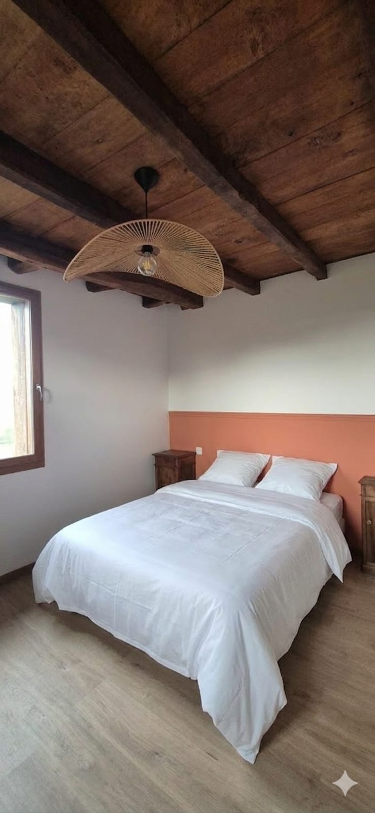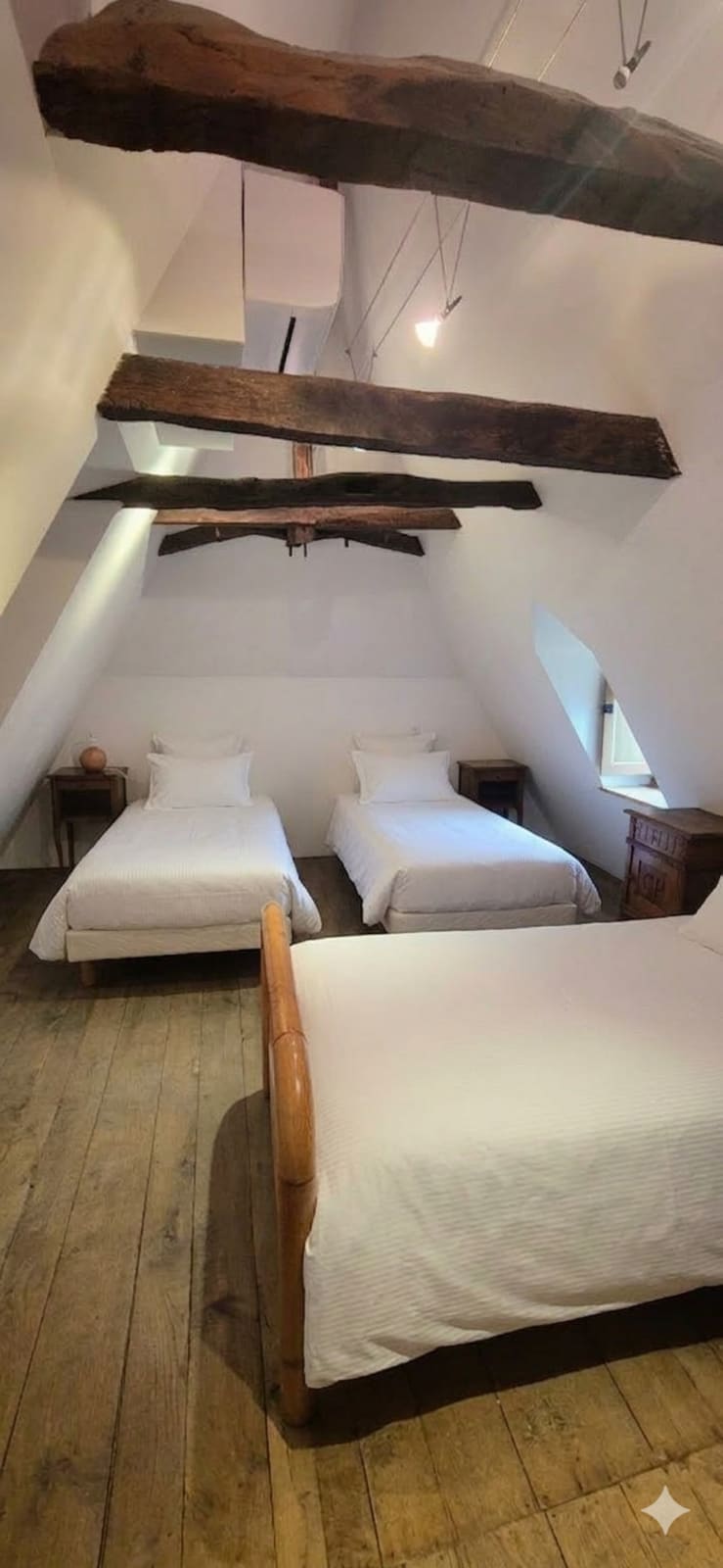 A l’étage, une chambre sous les toits (1 lit 140 cm).