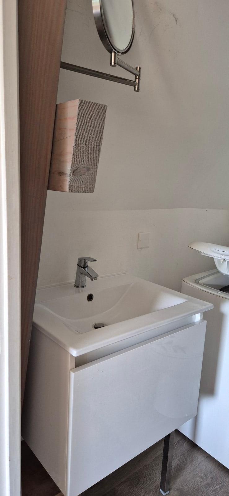 A l’étage, une chambre mezzanine sous les toits (1 lit 140 cm).