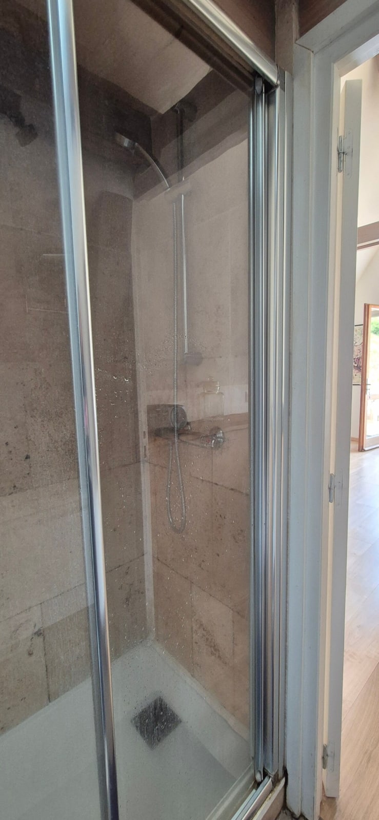 Au rez-de-chaussée : une cuisine ouverte salon- salle à manger, et une salle de douche