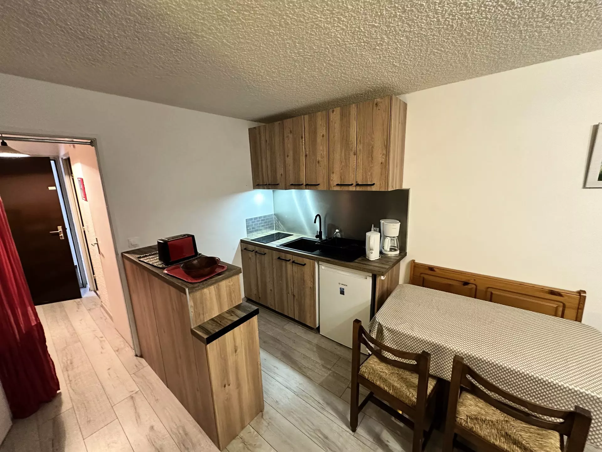 This 29m2 studio cabin, close to the village with a shuttle stop at the foot of the residence, welcomes you summer and winter in its privileged environment, surrounded by nature.