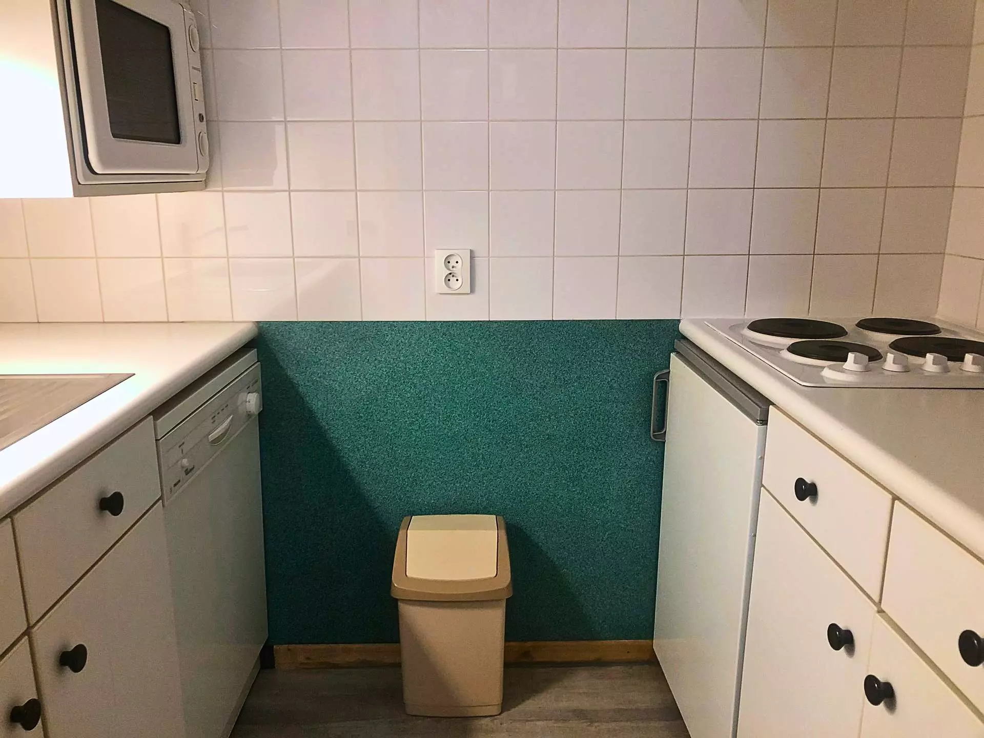 It is equipped with a separate kitchenette, a bathroom, a separate toilet and a balcony.