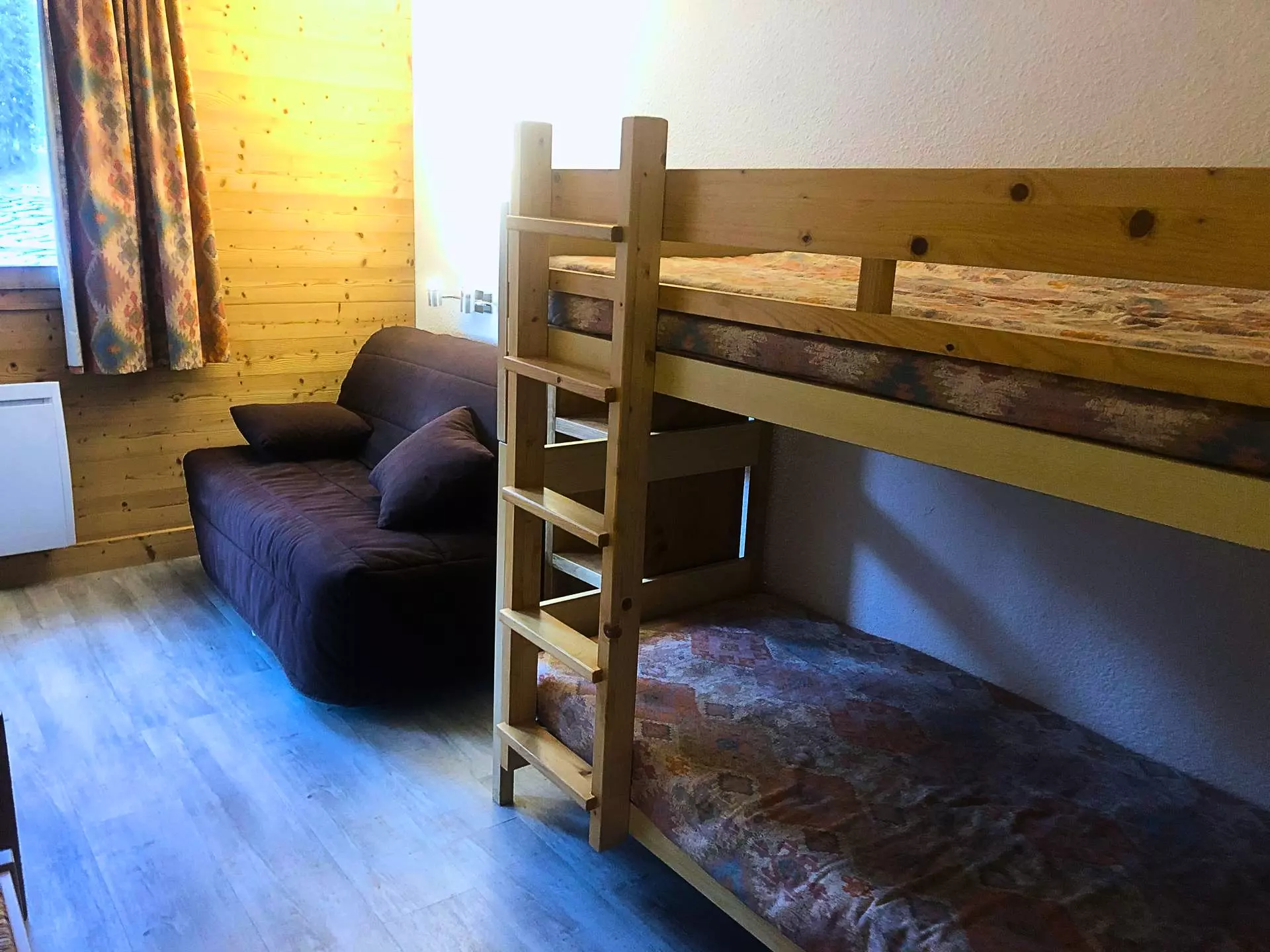 The living room is furnished with a sofa bed, and the bedroom with a sofa bed and bunk beds. Duvets are provided for all beds.