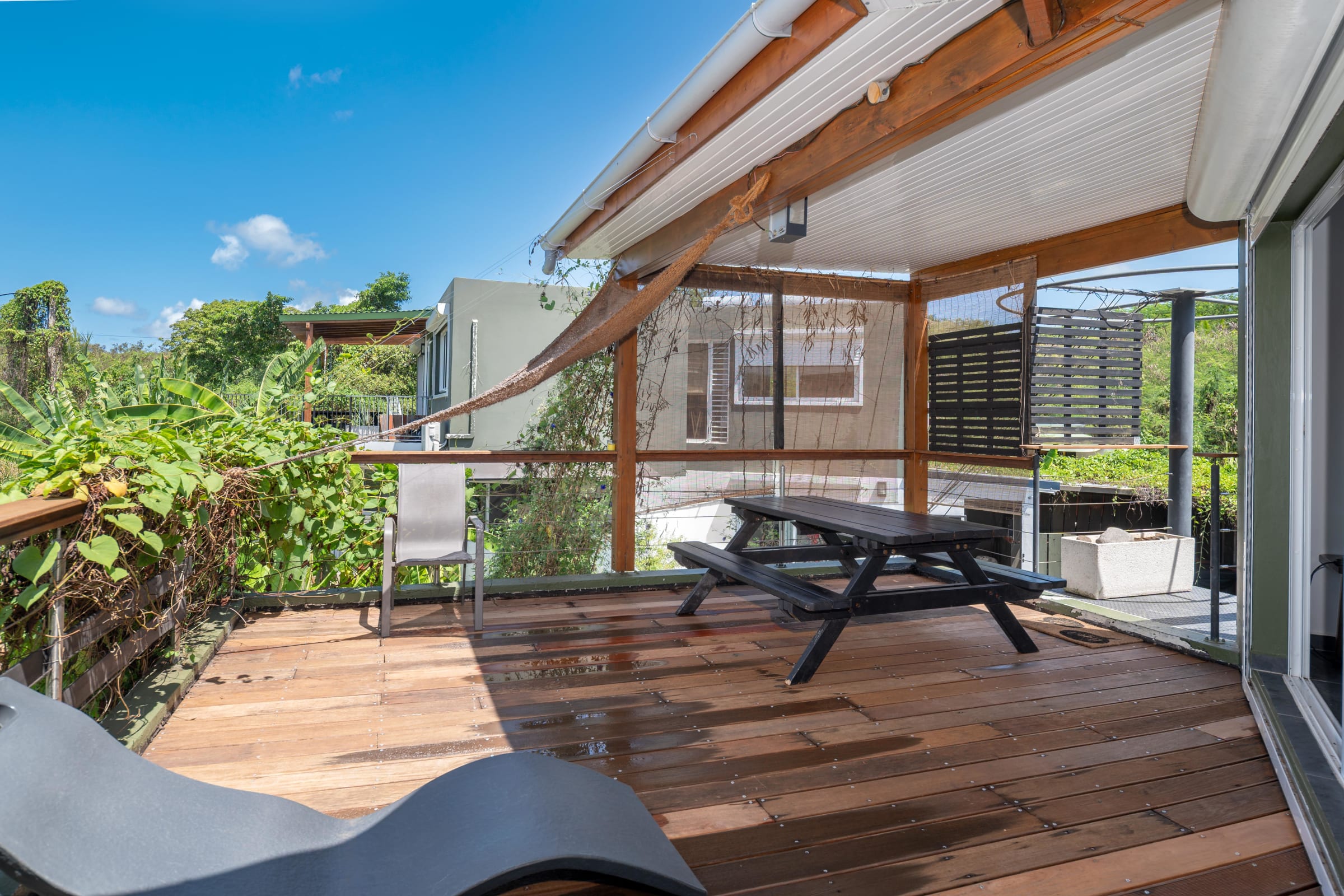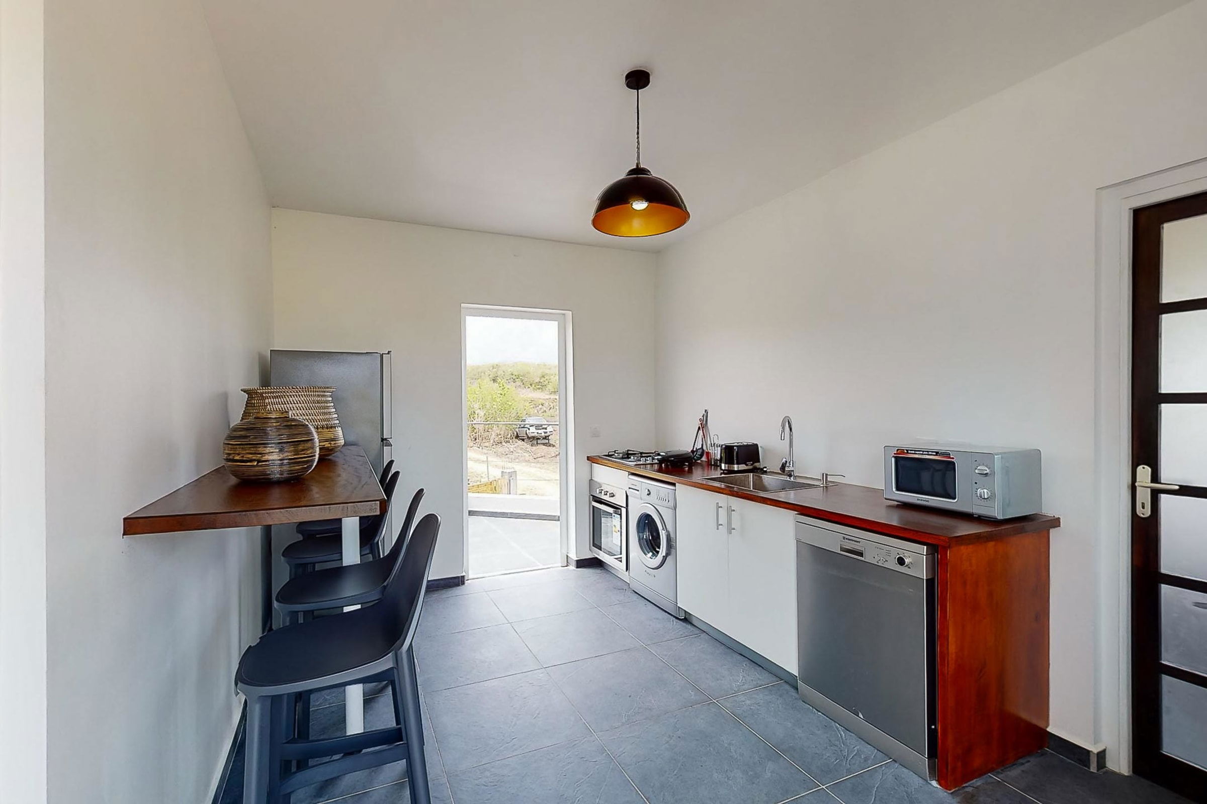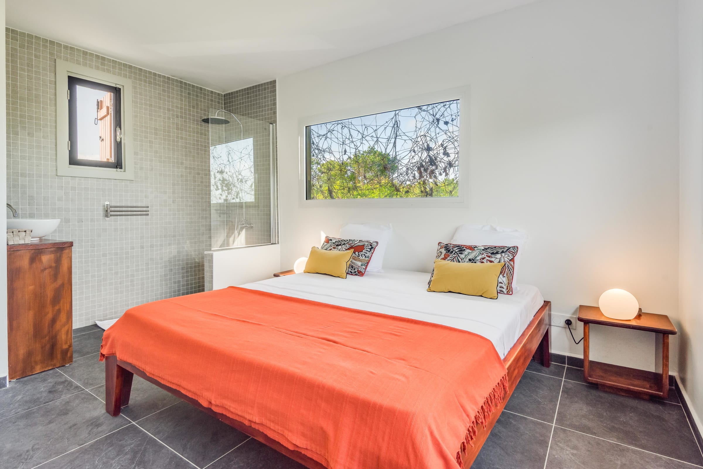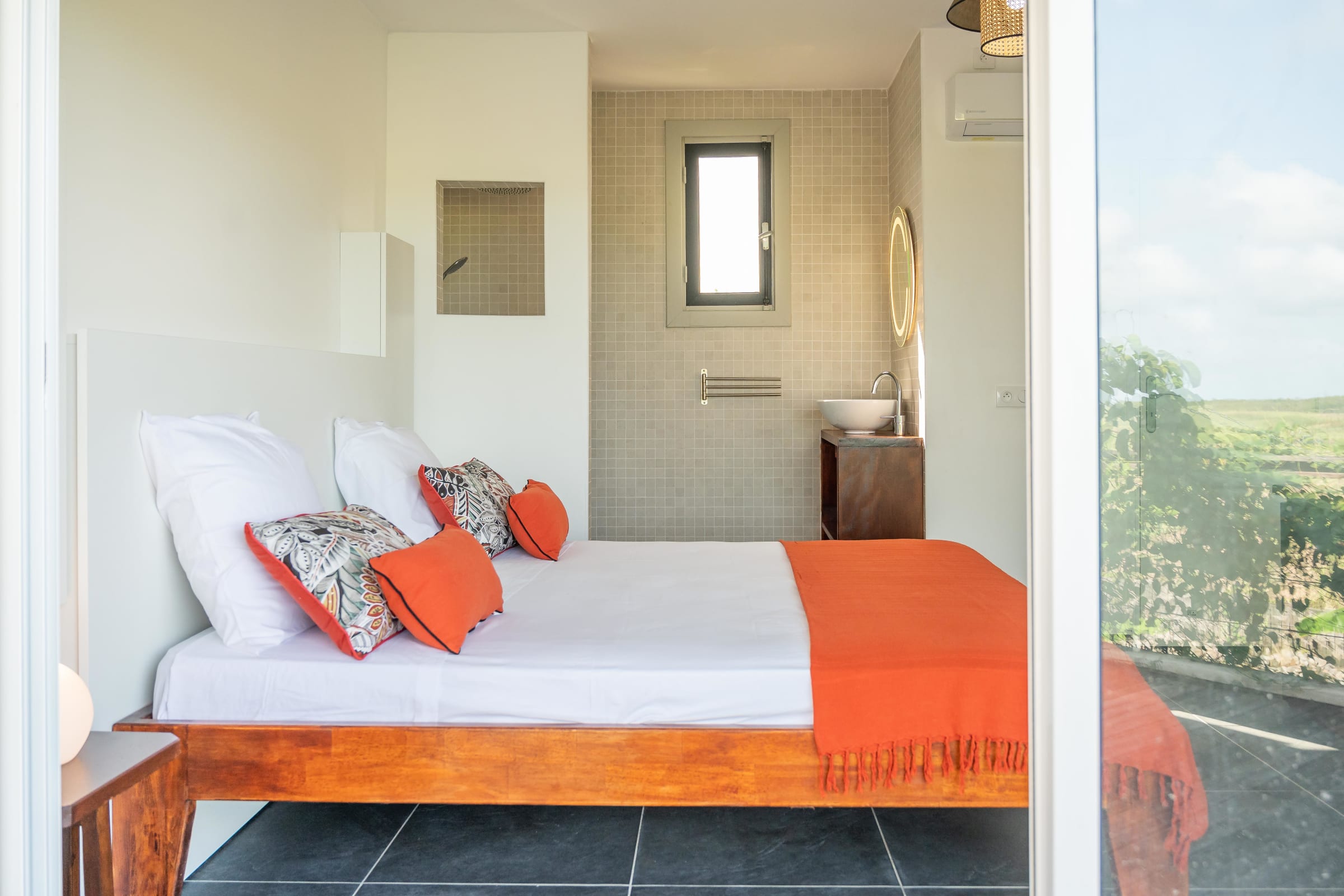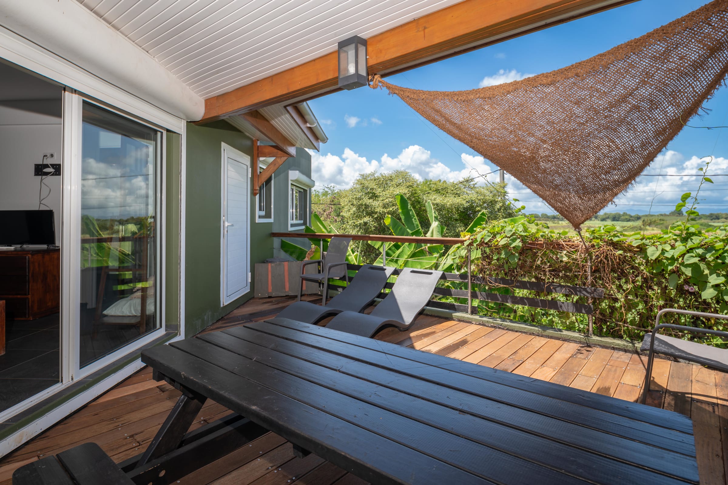 Beyond its interior comfort, you’ll be charmed by the breathtaking views of sugarcane fields swaying in the tropical breeze and the rolling hills of Basse-Terre. Here, modern design and nature blend seamlessly to create your perfect escape.