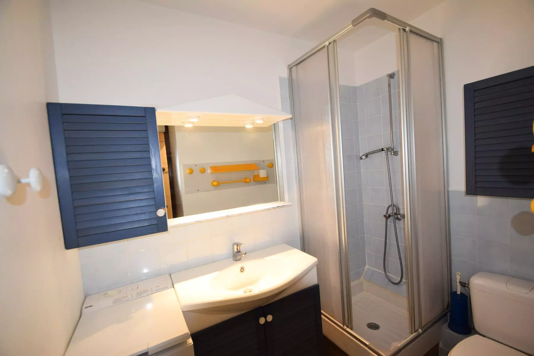 Studio 2/3 pers, 20 m2, south-facing balcony, view of the slopes, 2nd floor, elevator - Kitchen: 2 electric hobs, microwave, refrigerator - Living room: dining area, 2 single pull-out beds + 1 single bed, TV - Bathroom: shower, toilet included. Floors: living room: carpet, kitchen and bathroom: plastic.