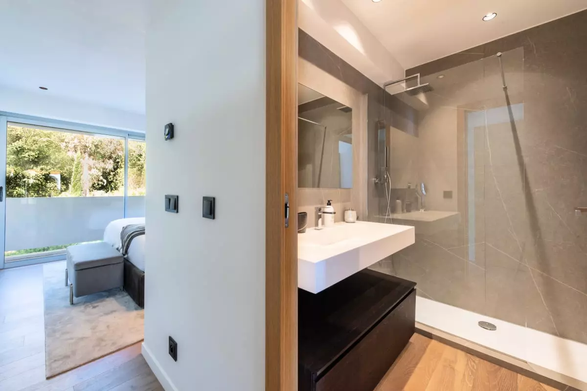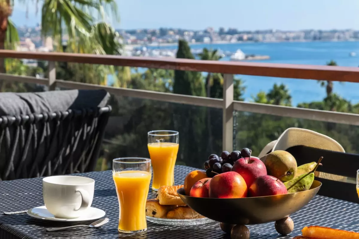 The residence overlooks the Golfe-Juan coastline, a stone's throw from Cannes and its iconic sites.