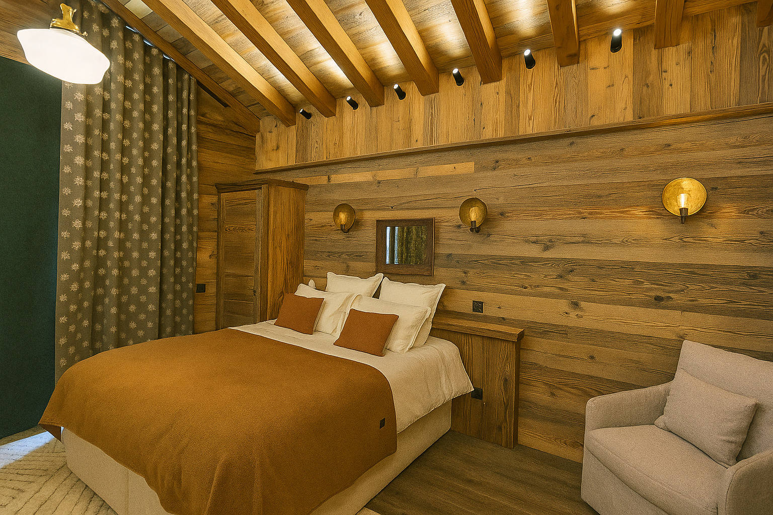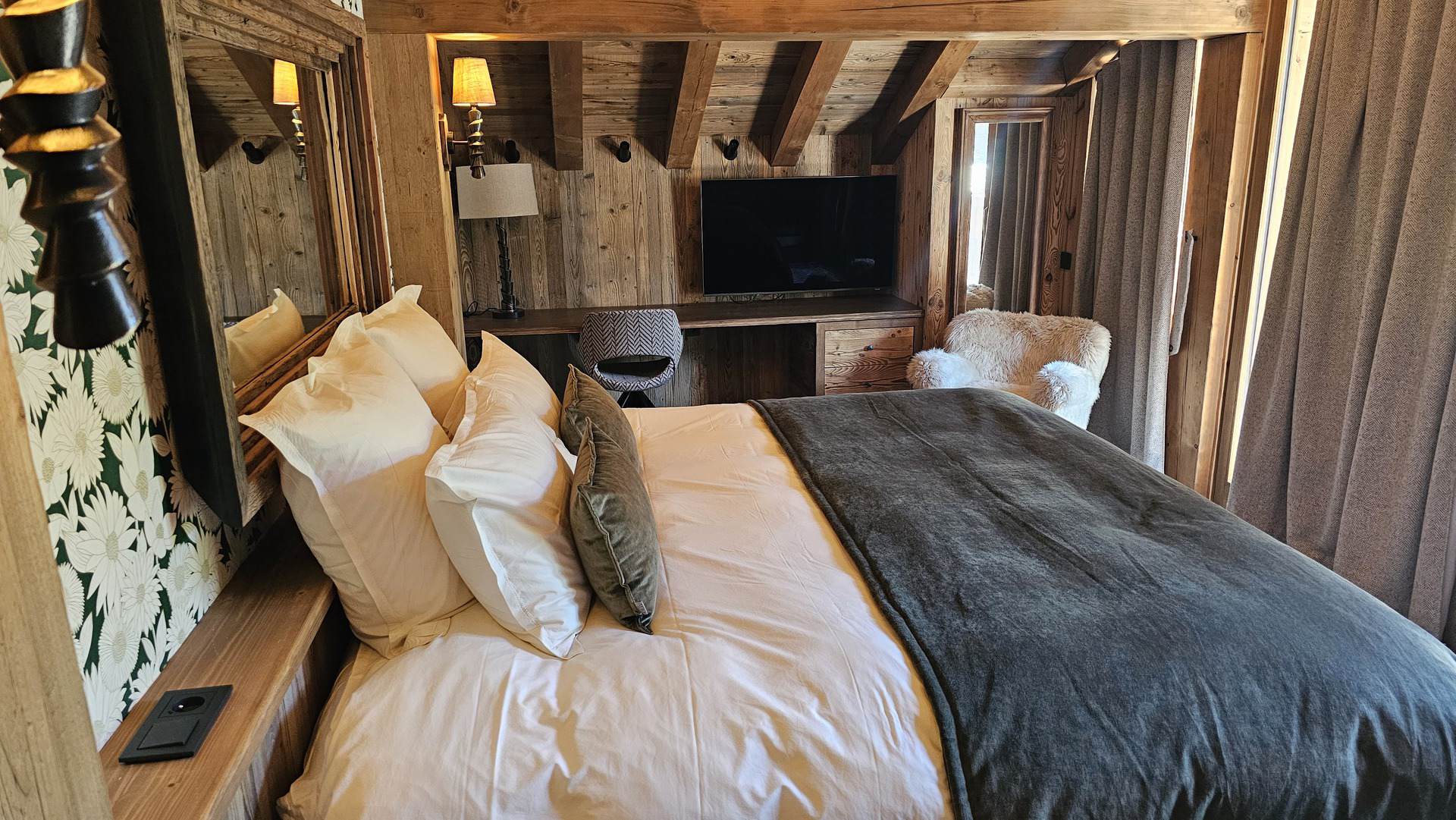 Chalet RHODO of about 323m², with 6 bedrooms for 12 persons. It is located in the hamlet of Raffort, 145 meters from the free bus stop that leads to Meribel center. There is also the Olympe gondola nearby which leads directly to the snow front of Méribel.