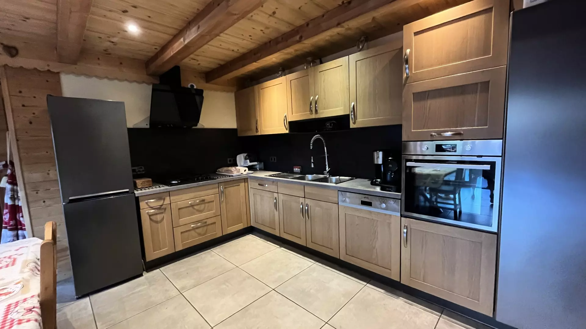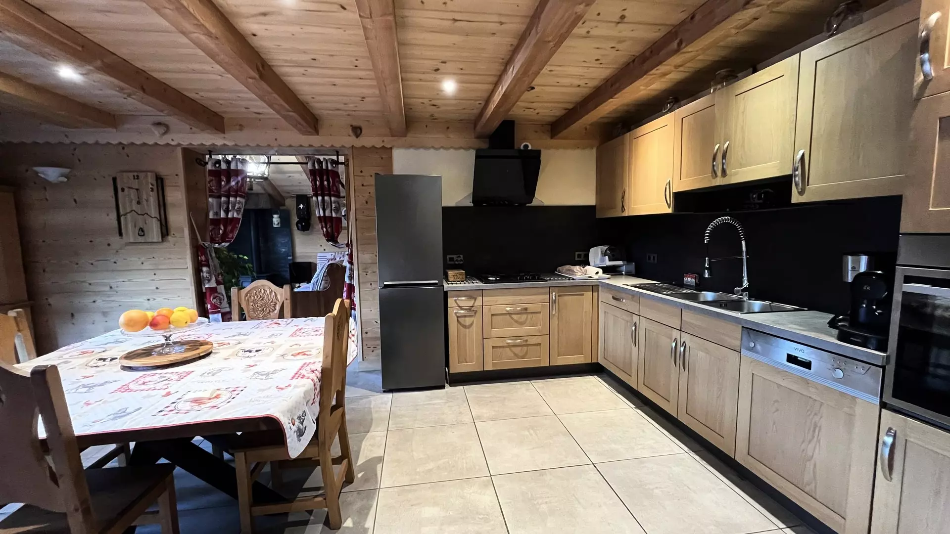 The kitchen is ideally equipped for cooking enthusiasts, containing a hob, an oven, a Nespresso capsule coffee machine, a kettle and a raclette machine.