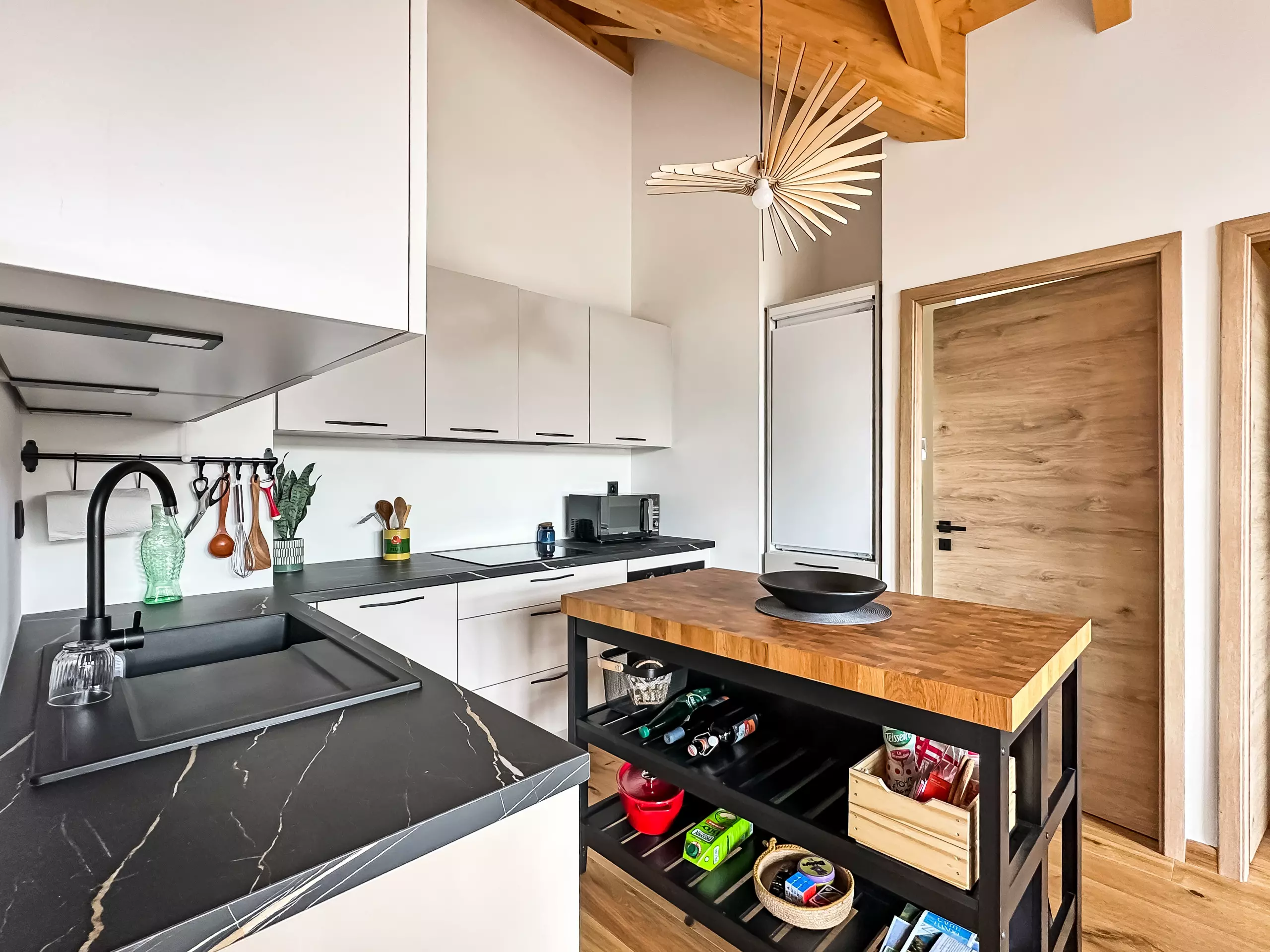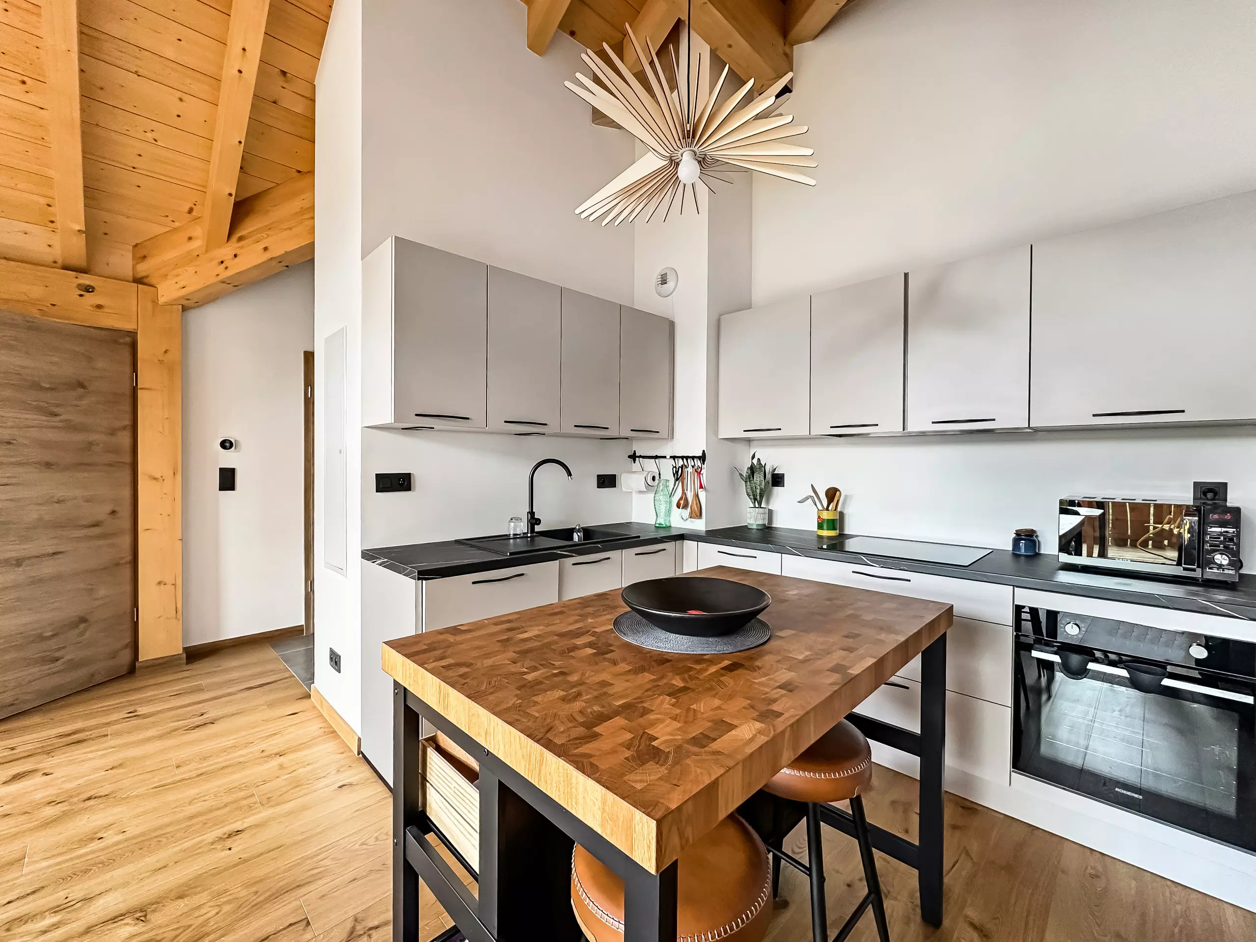 The apartment has 3 bedrooms, a fully equipped kitchen that will allow you to prepare delicious meals with its many amenities: refrigerator, oven, microwave, dishwasher, coffee machine, raclette machine, ...
