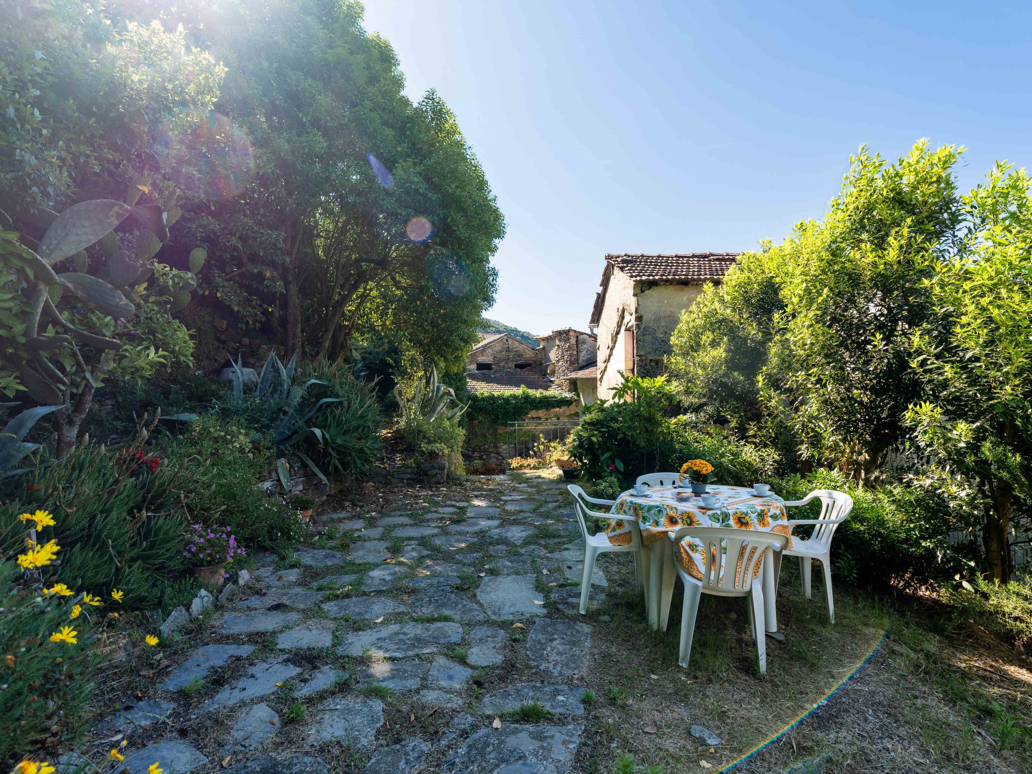 Cosy "rustico" cottage "Schöner Augenblick", 2 storeys, renovated in 2025. 2 apartments in the property. In the resort Molini di Prelá, 3 km from the centre of Dolcedo, 7 m from the centre of Imperia Porto Maurizio, in a sunny position in the residential district, 7 km from the sea. Private: natural state property, terraced garden, 100 m2 (fenced), natural garden, lawn for sunbathing. In the house: storage room for bicycles. Public car park at 10 m, public parking on the road. Shop, grocery 30 m, shopping centre 10 km, restaurant, bar 200 m, bakery 30 m, café 200 m, bicycle rental 3 km, bus stop 100 m, railway station "Imperia Oneglia" 15 km, sandy beach "Borgo Prino" 10 km pebble beach "Borgo Foce" 10 km, rocky beach "Imperia" 10 km, bathing lake "Laghetti" 900 m. Walking paths from the house 10 m. Nearby attractions: Valloria (160 bemalte Türen) 3 km, Porto Maurizio Altstadt Parasio 10 km, Bussana Vecchio Erdbebendorf 30 km, Triora Hexendorf 40 km, Monte Carlo Monaco 60 km, San Remo 30 km.