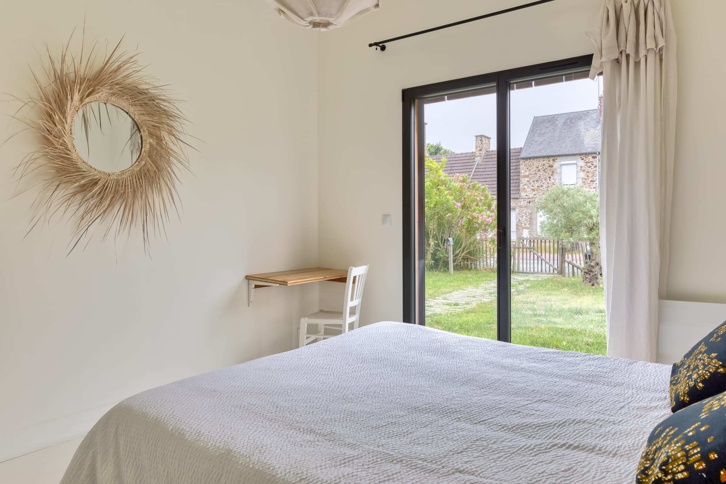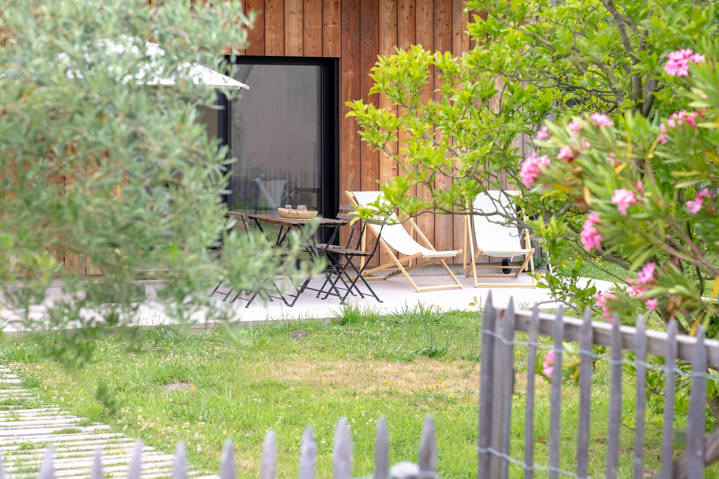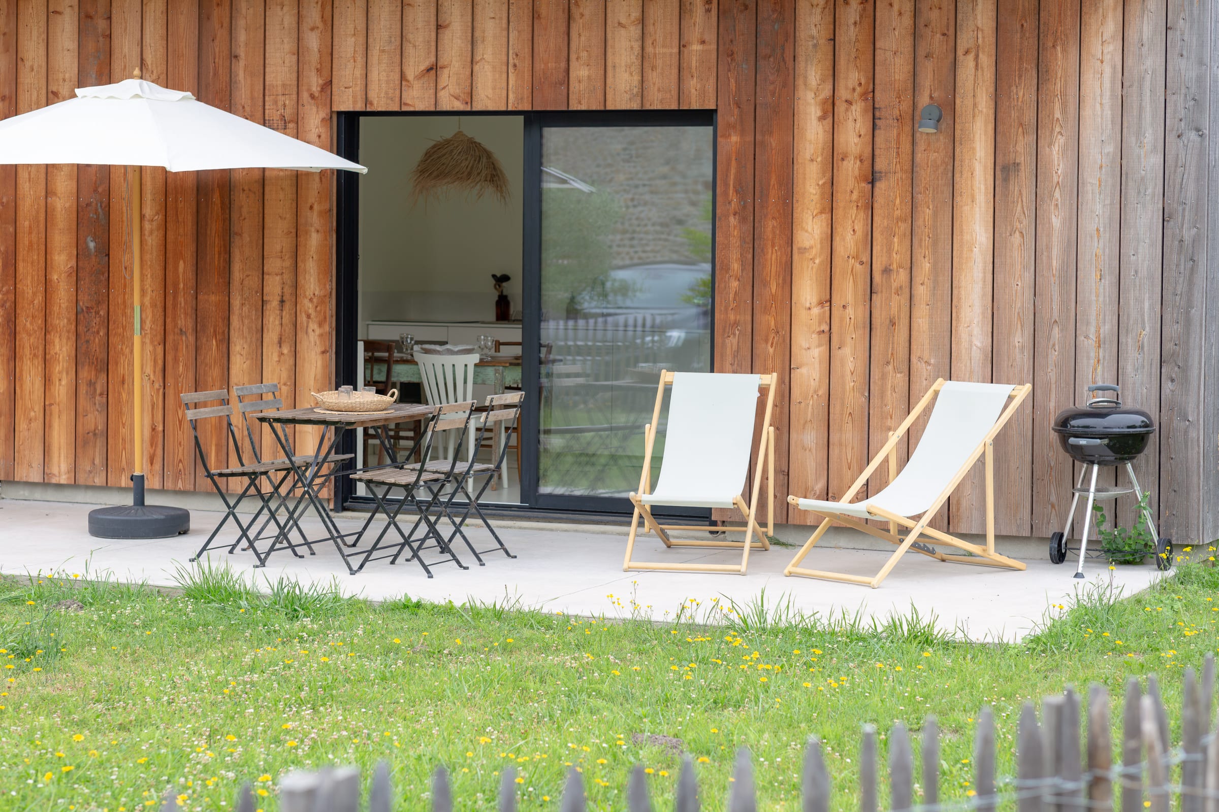 As soon as you arrive, you will be charmed by the gentle, natural atmosphere of the place: large windows opening onto the outside, views of the countryside, a wooden terrace to enjoy sunny days, and a tastefully decorated interior that combines modern comfort with a country feel.