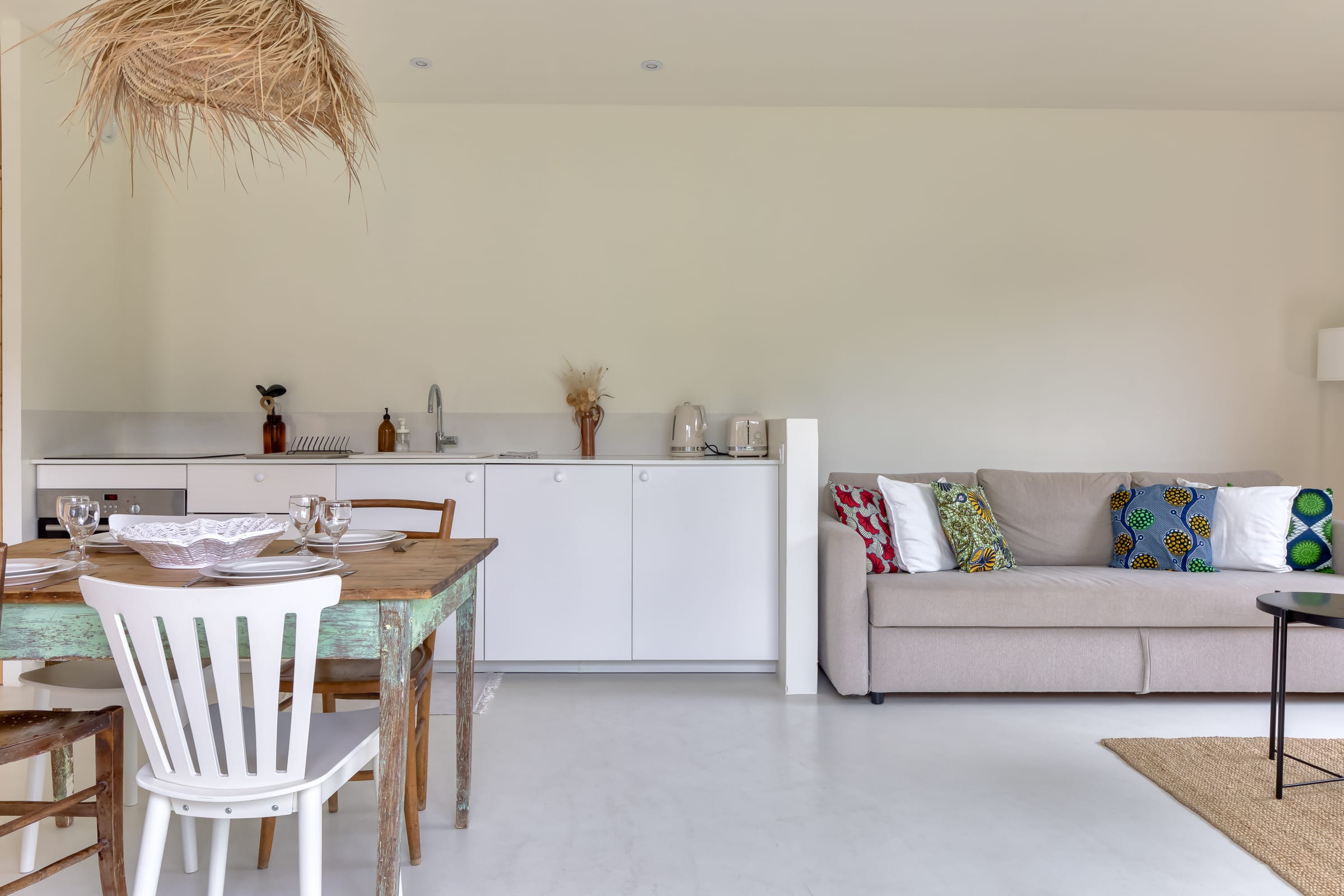 The open-plan, modern and well-equipped kitchen allows you to prepare your meals just like at home: dishwasher, washing machine, cooker, microwave, kettle, coffee maker, toaster and all the crockery you need for 8 people.