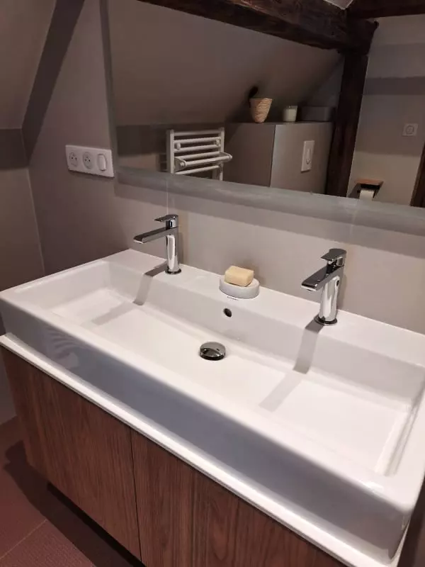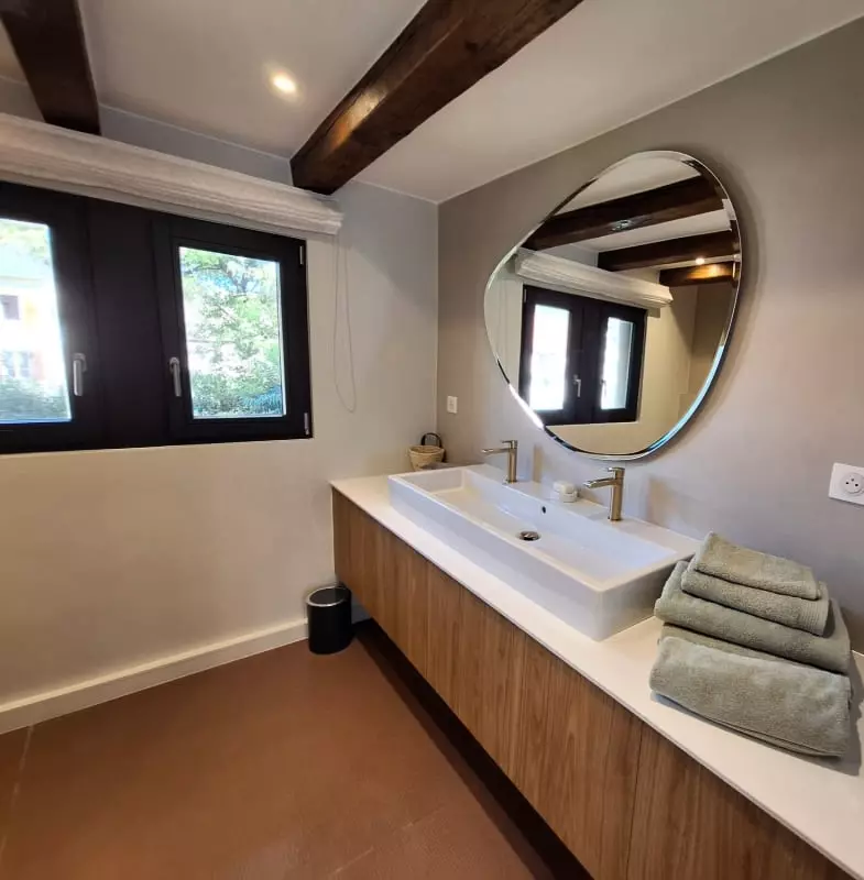 You will also have a fully equipped kitchen, a stub-style dining room, not to mention a welcoming living room, with a reading corner and an 8-seater sofa as well as armchairs, to relax after a day of exploring.