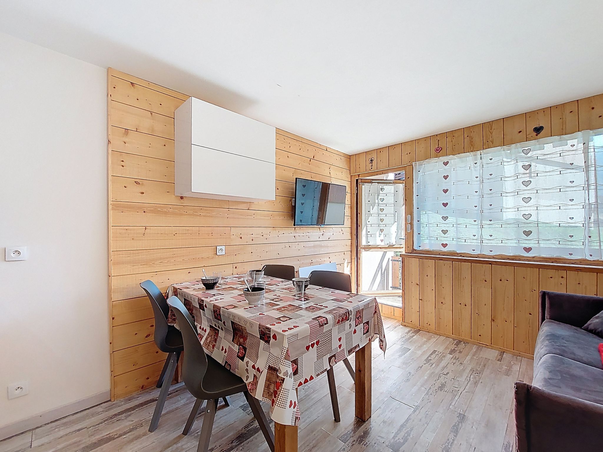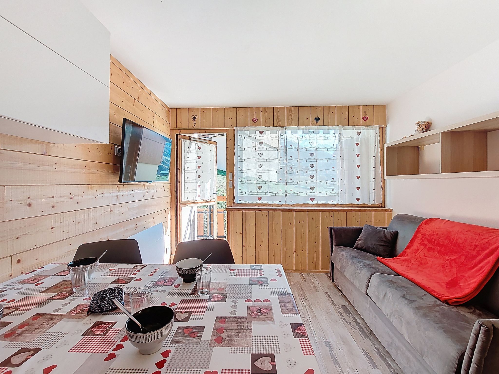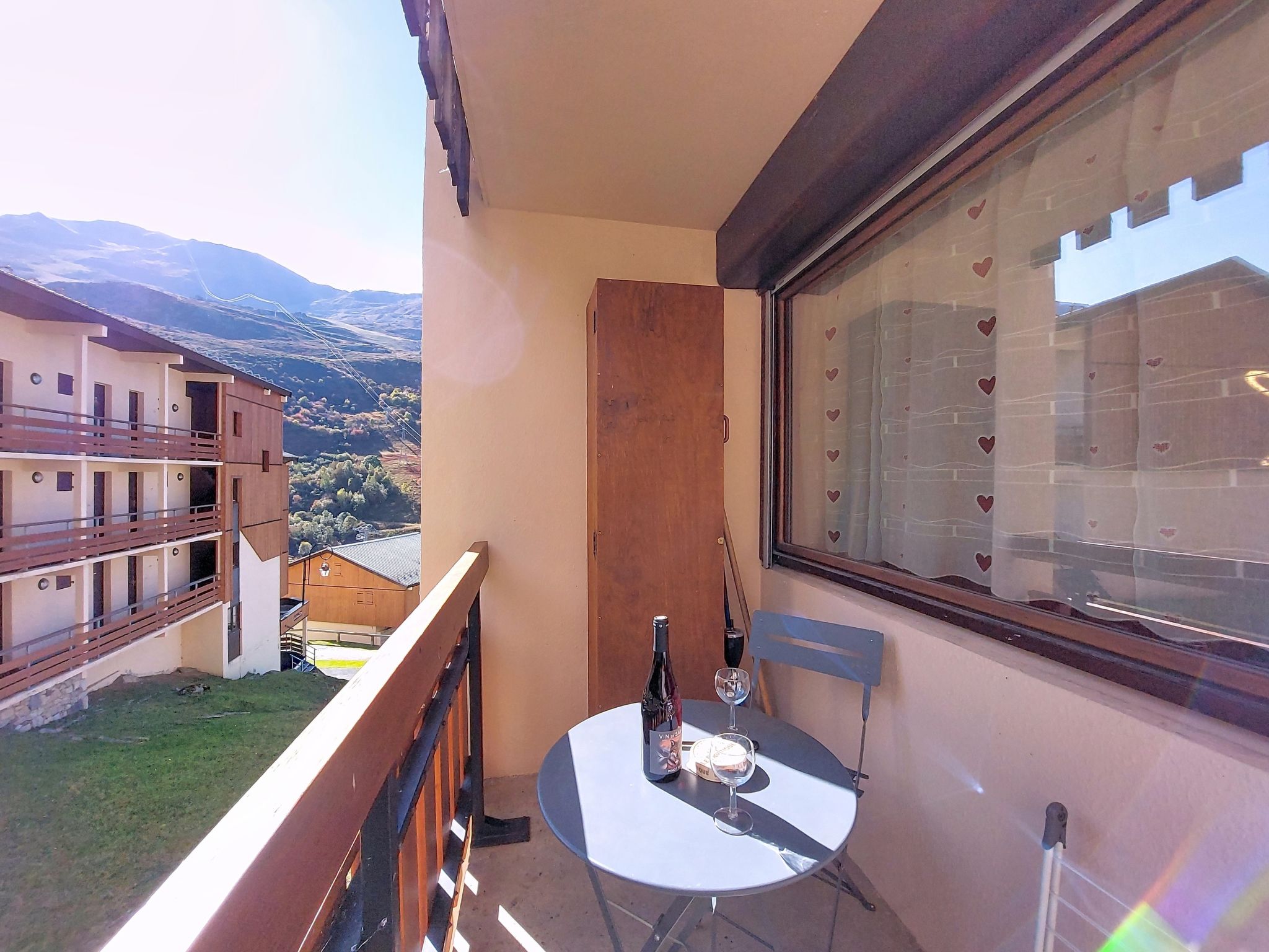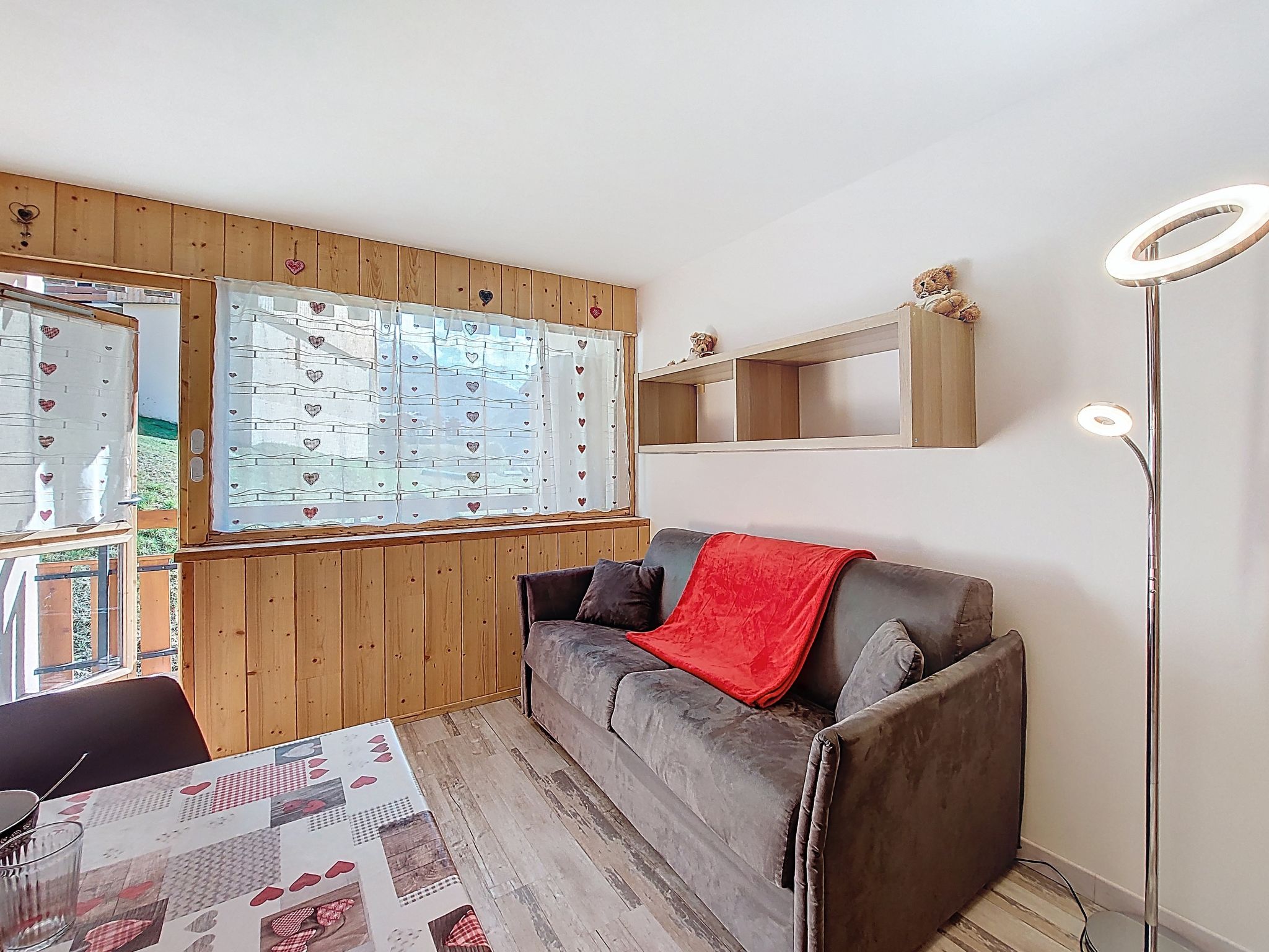 "Asters 122 Bâtiment C4", 1-room studio 24 m2 on 1st floor, south facing position. Beautiful and tasteful furnishings: living/dining room with 1 sofabed (140 cm, length 190 cm), TV (flat screen). Exit to the balcony, south facing position. Sleeping alcove with 1 french bed (140 cm, length 190 cm). Kitchenette (dishwasher, 2 ceramic glass hob hotplates, toaster, kettle, microwave, electric coffee machine, raclette grill, fondue Set (cheese)) with dining table. Shower/WC. Electric heating. Very beautiful view of the mountains. Facilities: Internet (WiFi, extra). Please note: non-smokers only. Smoke alarm, no lift. Offer by a private individual according to Art. 155, IV of CGI. 73257007956AK