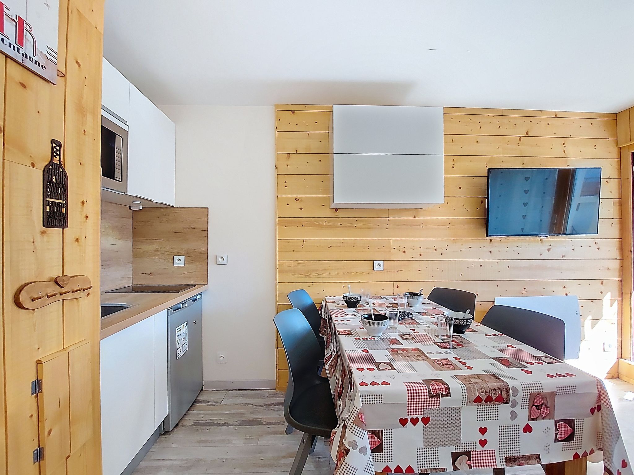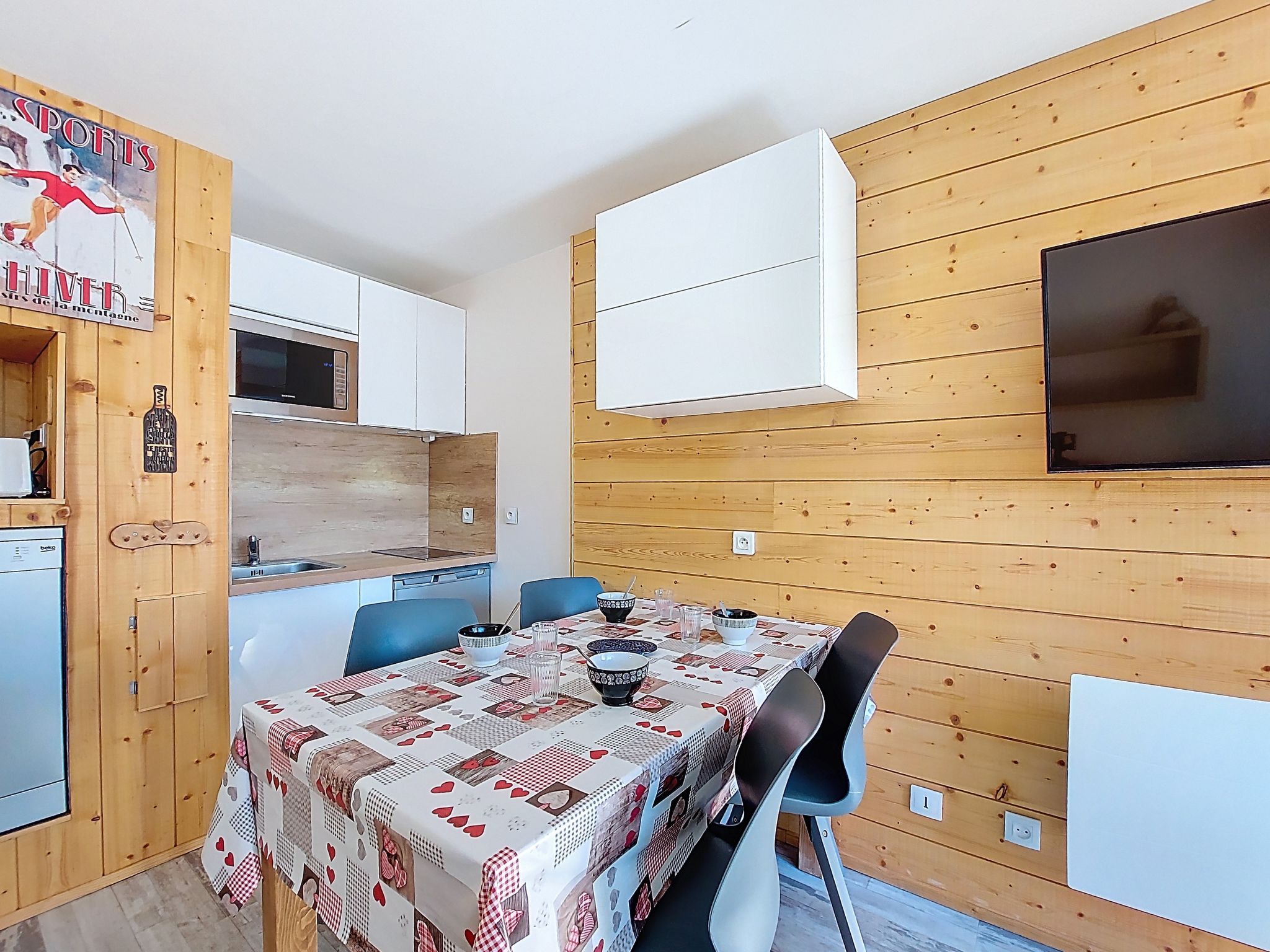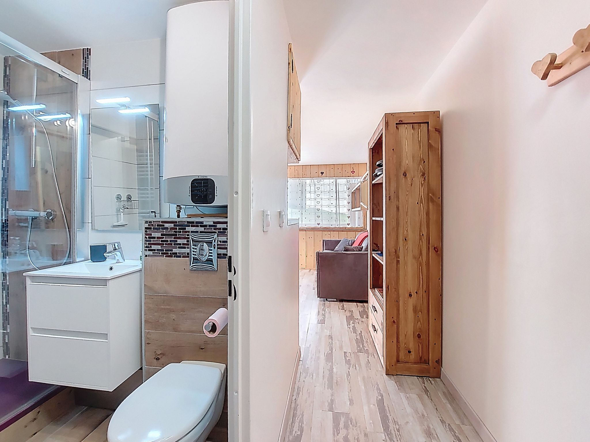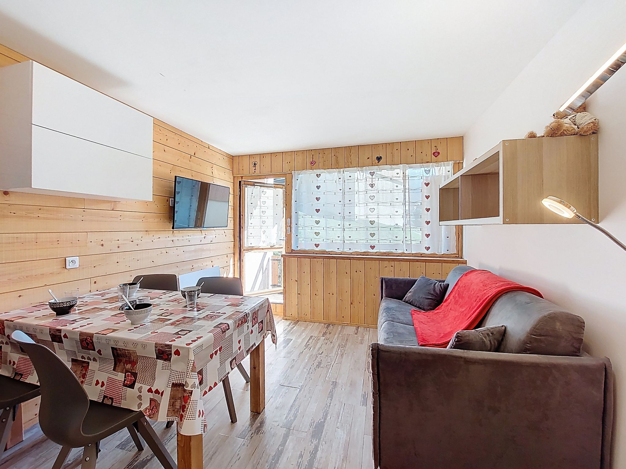 "Asters 122 Bâtiment C4", 1-room studio 24 m2 on 1st floor, south facing position. Beautiful and tasteful furnishings: living/dining room with 1 sofabed (140 cm, length 190 cm), TV (flat screen). Exit to the balcony, south facing position. Sleeping alcove with 1 french bed (140 cm, length 190 cm). Kitchenette (dishwasher, 2 ceramic glass hob hotplates, toaster, kettle, microwave, electric coffee machine, raclette grill, fondue Set (cheese)) with dining table. Shower/WC. Electric heating. Very beautiful view of the mountains. Facilities: Internet (WiFi, extra). Please note: non-smokers only. Smoke alarm, no lift. Offer by a private individual according to Art. 155, IV of CGI. 73257007956AK