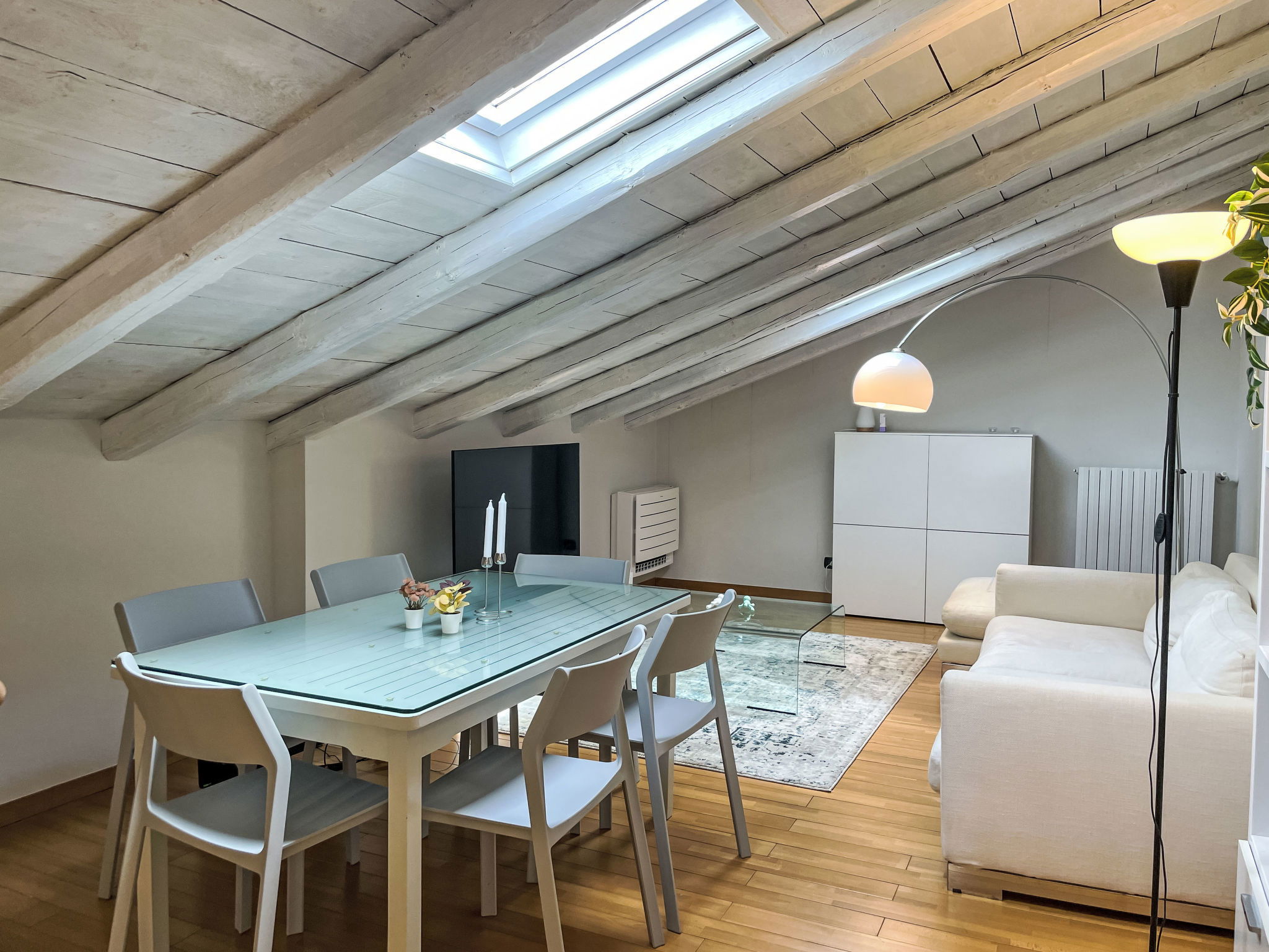 2-room terraced house 65 m2. Beautiful and tasteful furnishings: entrance hall. Exit to the garden. 1 room with 1 bed and 1 double bed. Shower/bidet/WC. Top floor: living room with sloping ceilings. Open kitchen (oven, dishwasher, Gas stove, 4 gas rings, toaster, kettle, freezer, electric coffee machine) with TV. Heating, air-conditioning. Heating available only from 01.10. to 15.04. Parquet floors, natural stone floors. Terrace 15 m2. Terrace furniture, barbecue (portable), deck chairs. Beautiful view of the countryside. Facilities: washing machine, dryer, mosquito net, baby cot for up to 2 year olds. Extra. Please note: maximum 1 pet/ dog allowed. Smoke alarm, fire extinguisher. IT005077C22MBX6592
