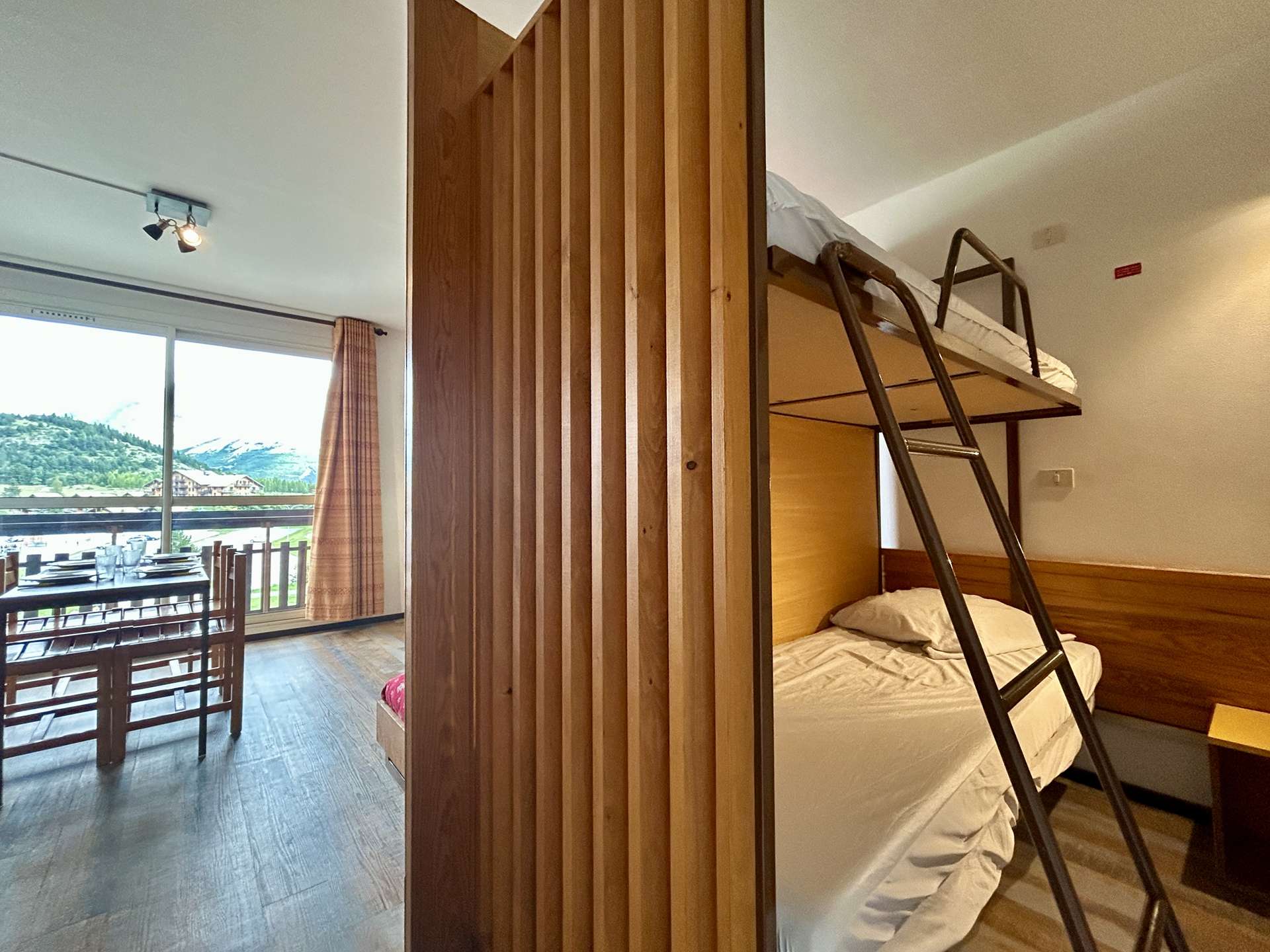 This studio offers a lovely east-facing view, just 50m from the Le Jas chairlift. It is located on the 6th floor of the "Le Bois d'Aurouze" residence, where many shops are located.
