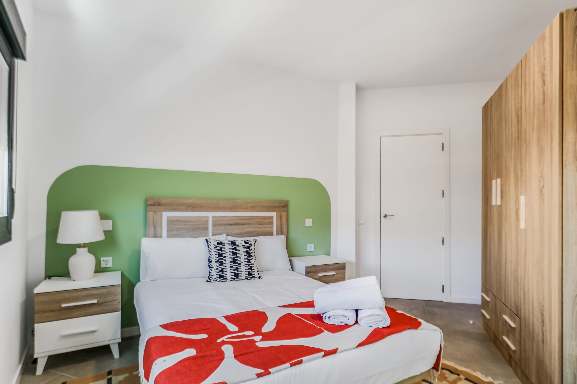 The bedroom is well-lit, providing a comfortable and inviting atmosphere.