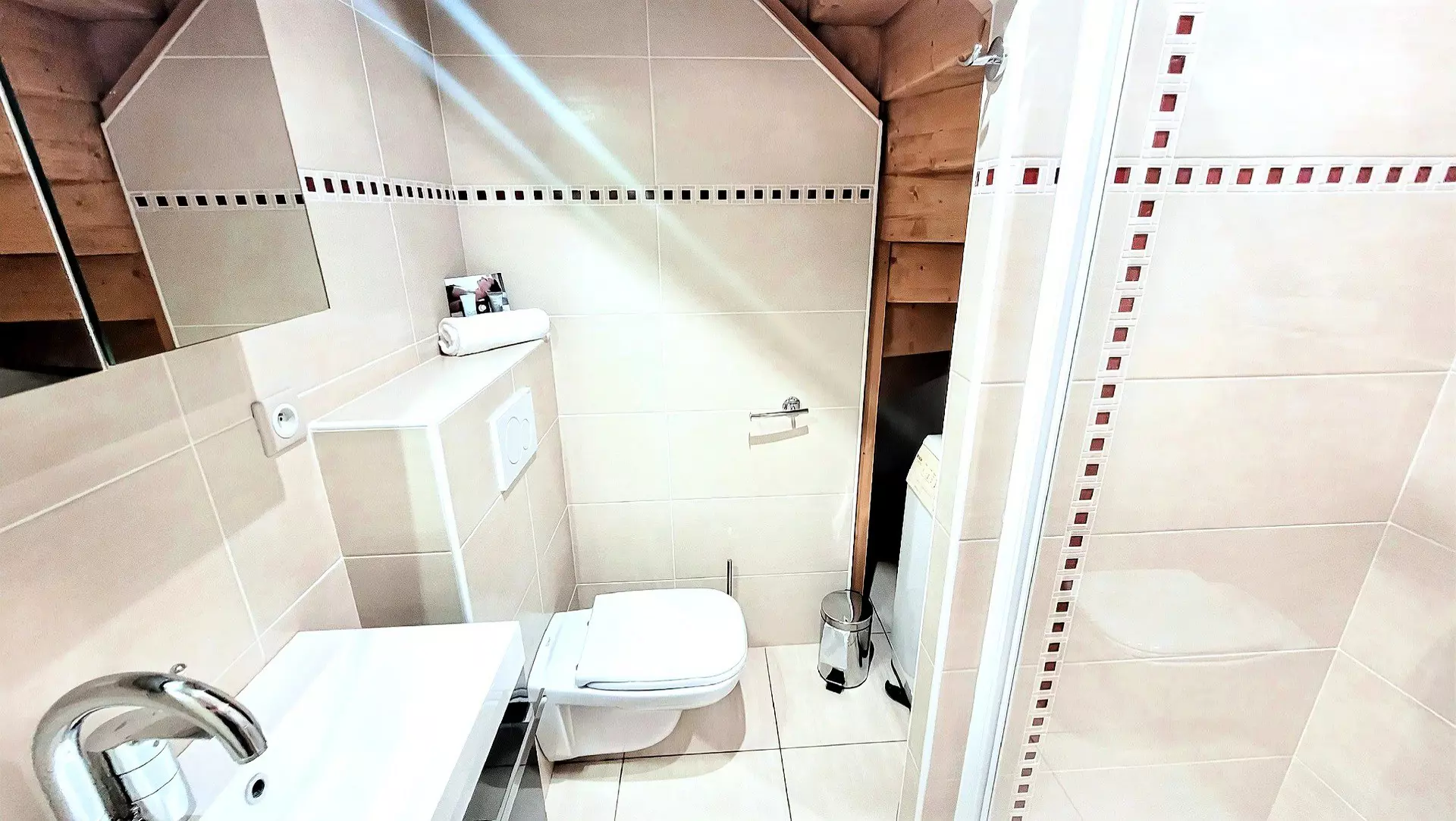 - 1 bathroom: 1 shower cubicle, 1 sink with storage under the sink and WC