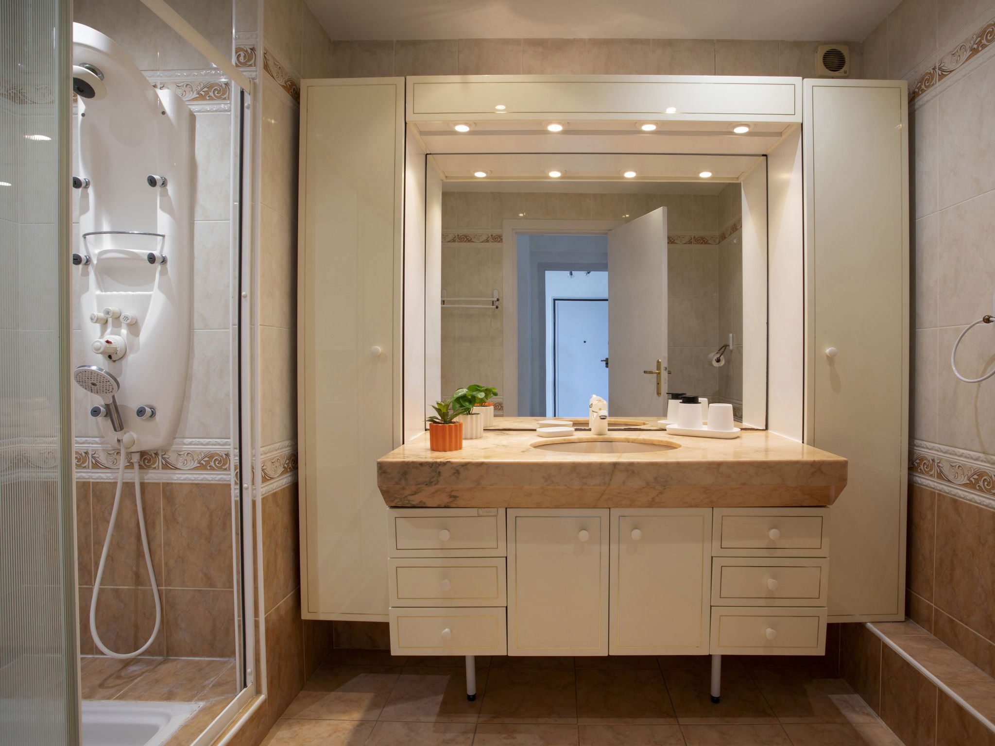 3-room apartment 100 m2 on 5th floor, south facing position. Spacious, partly renovated in 2025, comfortable furnishings: large living/dining room with 1 double sofabed (1 x 140 cm, length 190 cm), TV (flat screen). Exit to the terrace. 1 large room with 1 french bed (1 x 160 cm, length 200 cm). Exit to the balcony. 1 large room with 1 french bed (2 x 80 cm, length 200 cm). Exit to the balcony. Large kitchen (oven, dishwasher, 3 induction hot plates, toaster, kettle, microwave, electric coffee machine). Exit to the balcony. Shower/WC, sep. WC. Heating, air-conditioning. Large balcony 10 m2, north facing position, terrace 15 m2, south facing position. Terrace furniture. Very beautiful panoramic view of the sea, the countryside and the resort. Facilities: washing machine, iron, hair dryer. Internet (WiFi, free). Garage (1 car). Please note: non-smoking house. Smoke alarm. Offer by a private individual according to Art. 155, IV of CGI. 06027039026HT