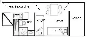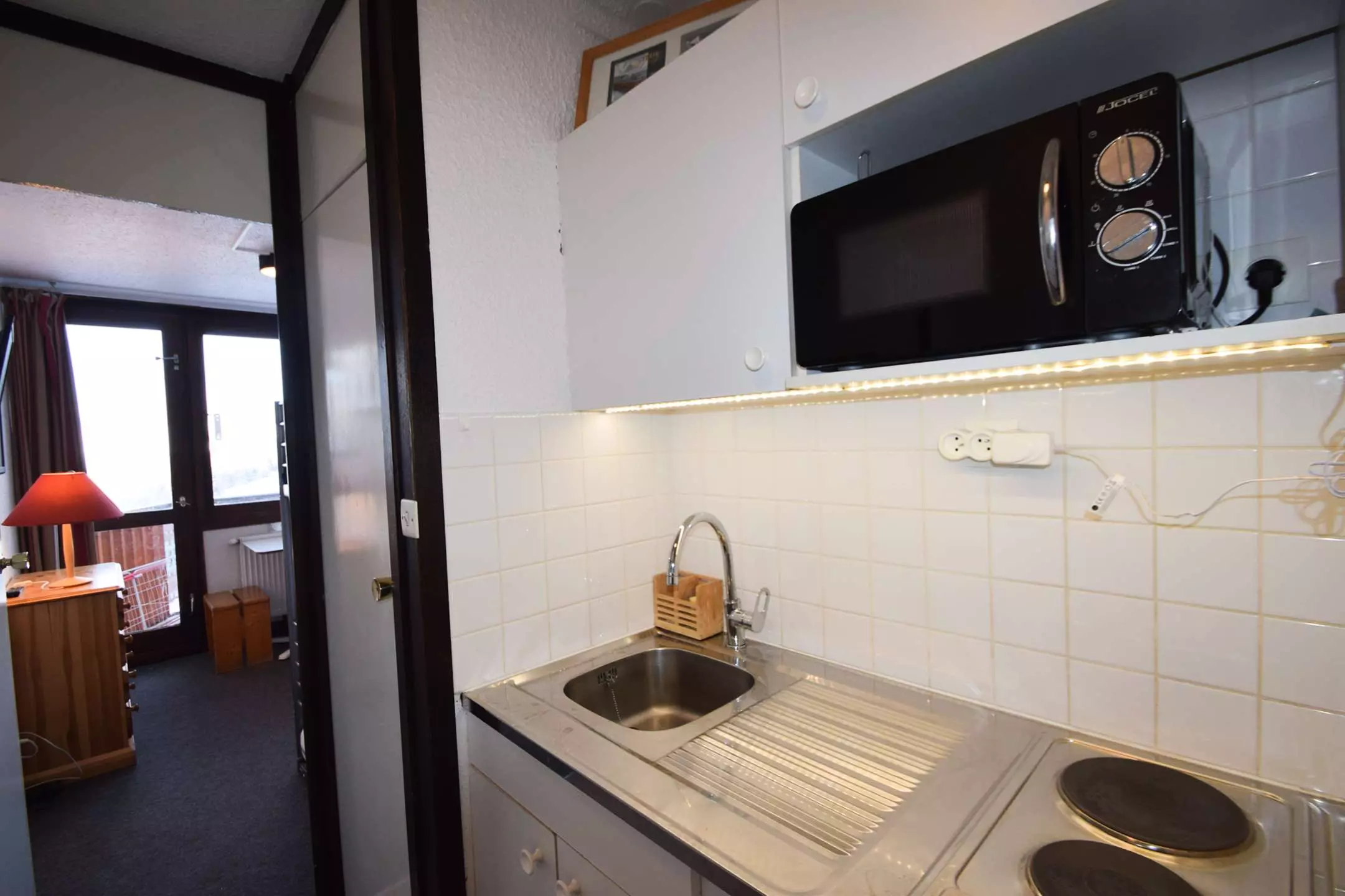 Studio 2/3 pers, 15m2, facing North with balcony, view of the valley and Mont Blanc, on the 9th floor with elevator - Kitchen: in corridor/entrance: 2 electric hotplates, refrigerator, mini-oven, filter coffee maker. Living room: 2 bunk beds + 1 single sofa bed - 80cm, dining area, TV. Bathroom: shower, WC included. Bedding: 1p duvets - Studio with a pleasant view of the valley and Mont Blanc. Ski locker n°901 on the ground floor on the UCPA side, slope exit level - LE FRANCE: 9-story residence, very well located Facing the slopes, ski-in ski-out access, connected by an interior gallery to the shops. PETS NOT ALLOWED and NON-SMOKING APPT - End of stay cleaning, sheets, towels and ski passes are optional.