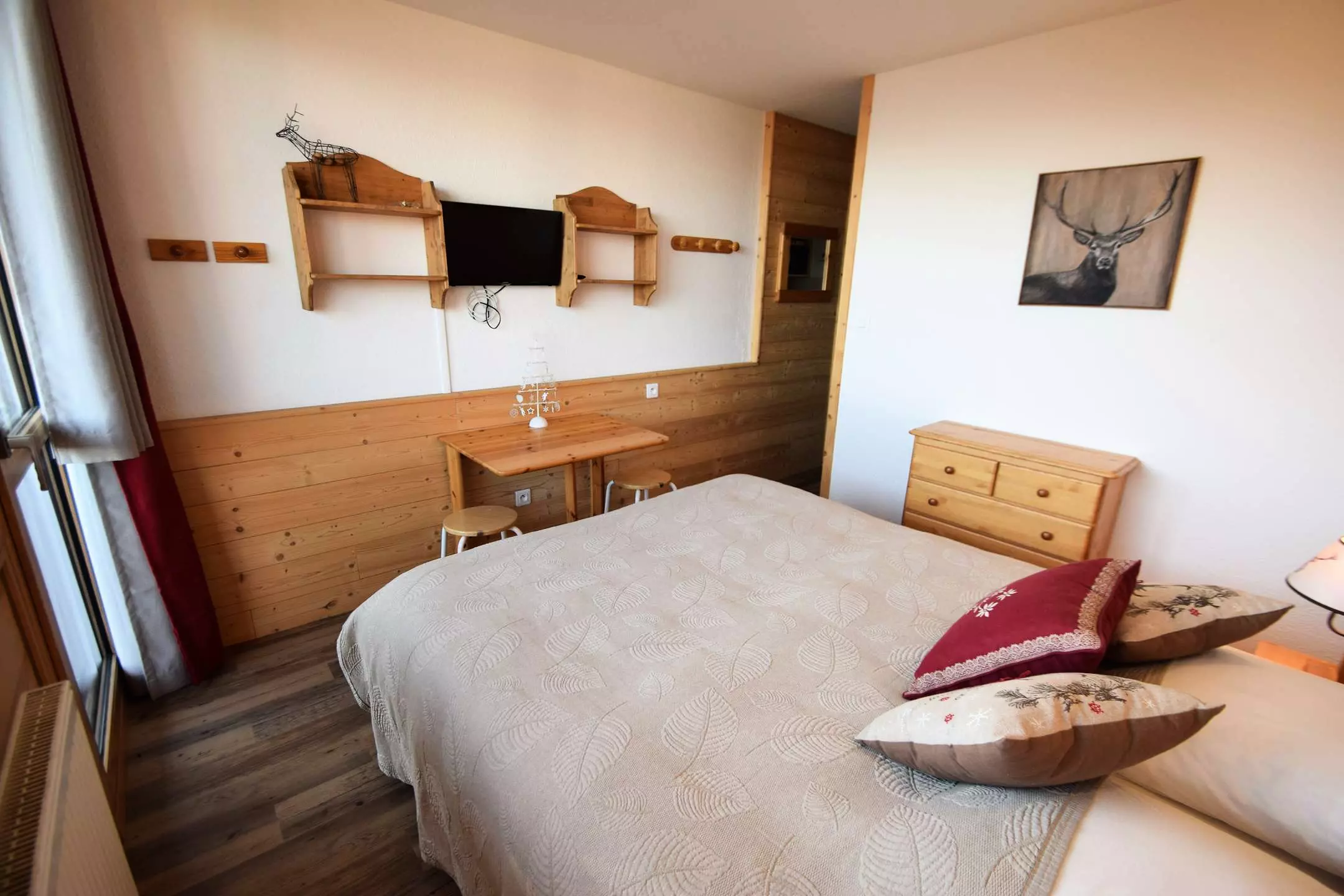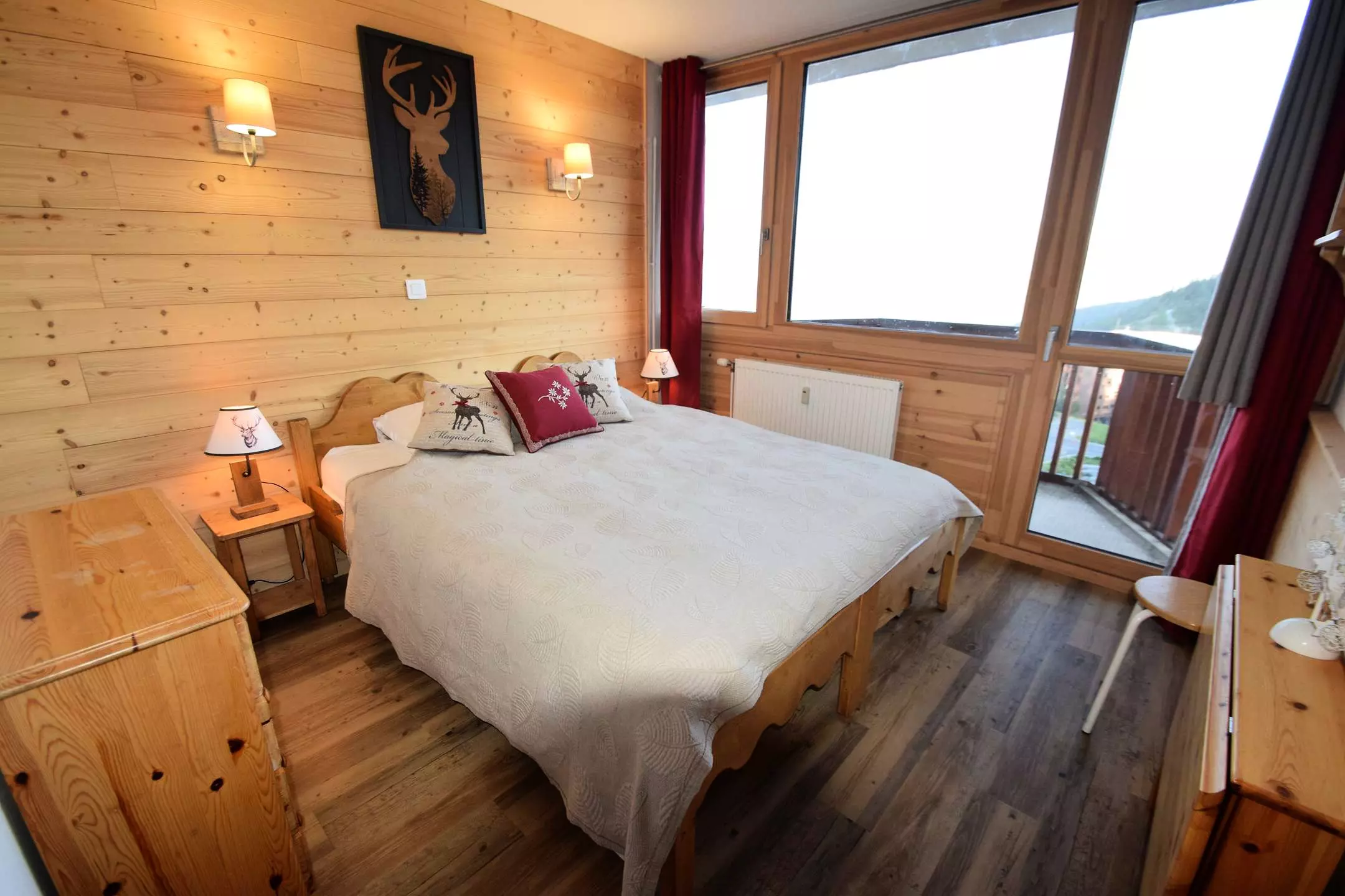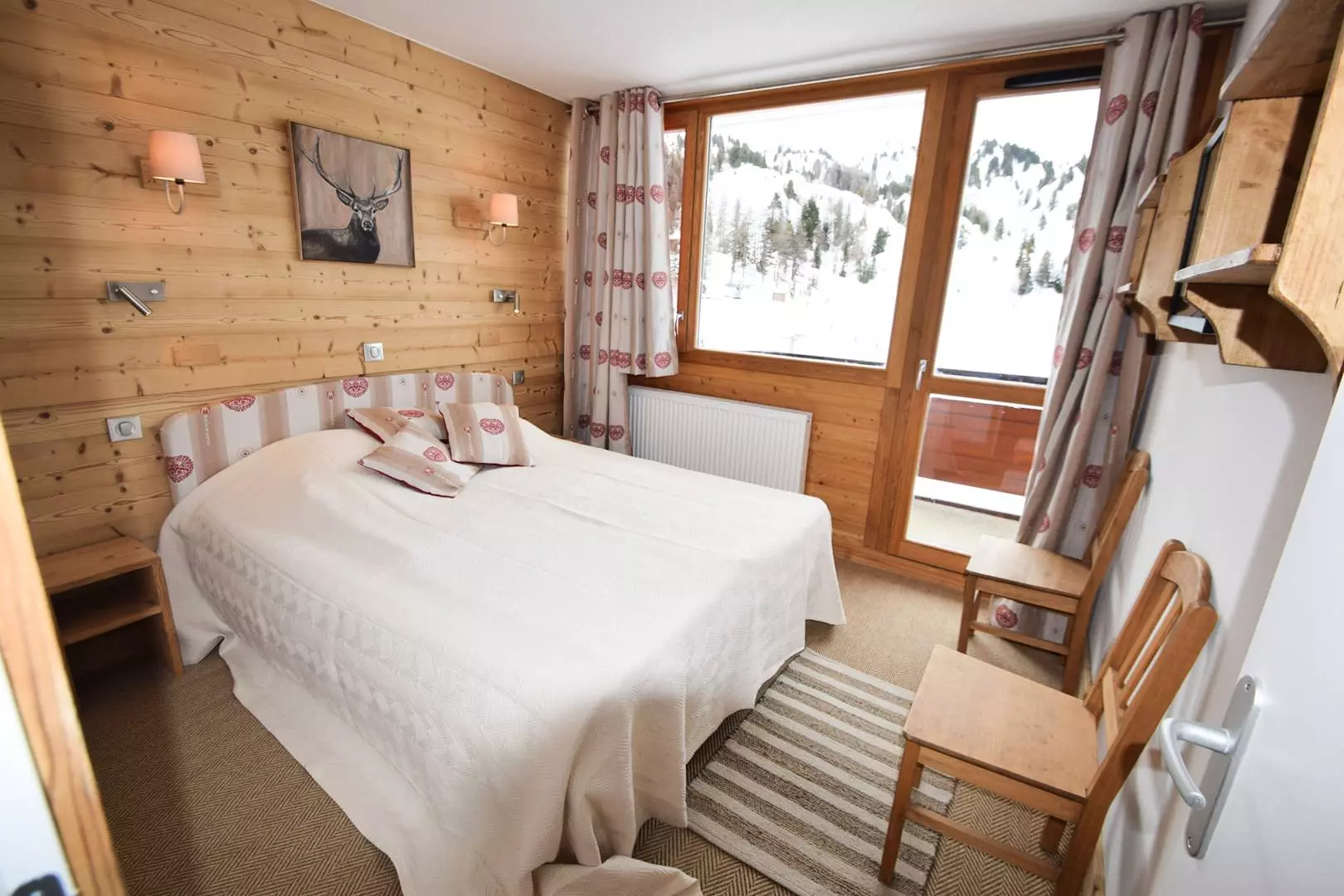 Apartment 933: 3 rooms for 6 people, 55m², south-facing balcony, beautiful view of the slopes and studio 908 17m² for 2 people opposite on the same landing, facing north with balcony, view of the valley and Mont Blanc - 9th floor elevator to the 8th + 1 floor by staircase (serving only 5 apartments) - 933: Kitchen open to living room with a bar unit: cooker with 4 electric hobs and traditional oven, large refrigerator, dishwasher, Nespresso coffee machine - Living room: dining area and lounge area, 2 single sofa beds, television - Bedroom 1: 1 double bed 160cm - Bedroom 2 (without window but with 2 skylights): 2 single beds - Bathroom: shower - separate WC - Bedding: 4 single duvets + 1 double duvet. - Floors: carpet except kitchen, living room, bathroom and toilet: plastic. Beautiful apartment with good comfort, very well located and exposed, SOUTH, with very clear view of the slopes, large balcony overlooking the living room and bedroom, very bright. Attention: in case of loss of key: invoice of 500€ excluding travel costs for changing the lock. 908: Kitchen: in corridor/entrance: 2 electric hotplates, refrigerator, microwave oven. Living room: 2 twin beds 80x190cm which can form a double bed, dining area, TV. Bathroom: shower, WC included. Bedding: 1 double duvet. Studio with a pleasant view of the valley and Mont Blanc. Ski locker n°933 & 908 on the ground floor on the UCPA side (908 is located near lockers n°600). PETS NOT ALLOWED and NON-SMOKING APPT - End of stay cleaning, sheets, towels and ski passes are optional.