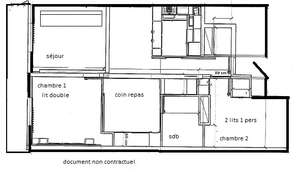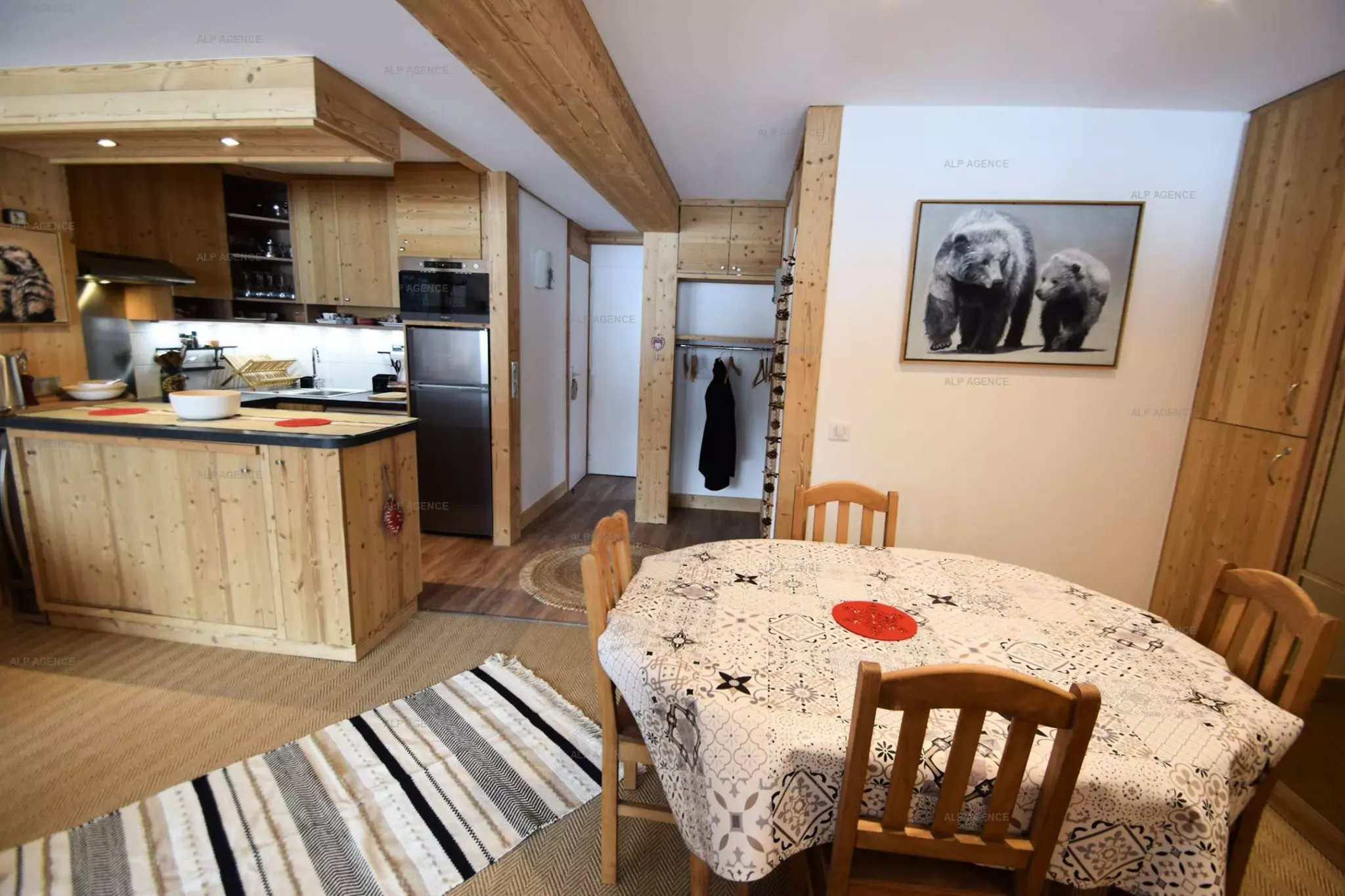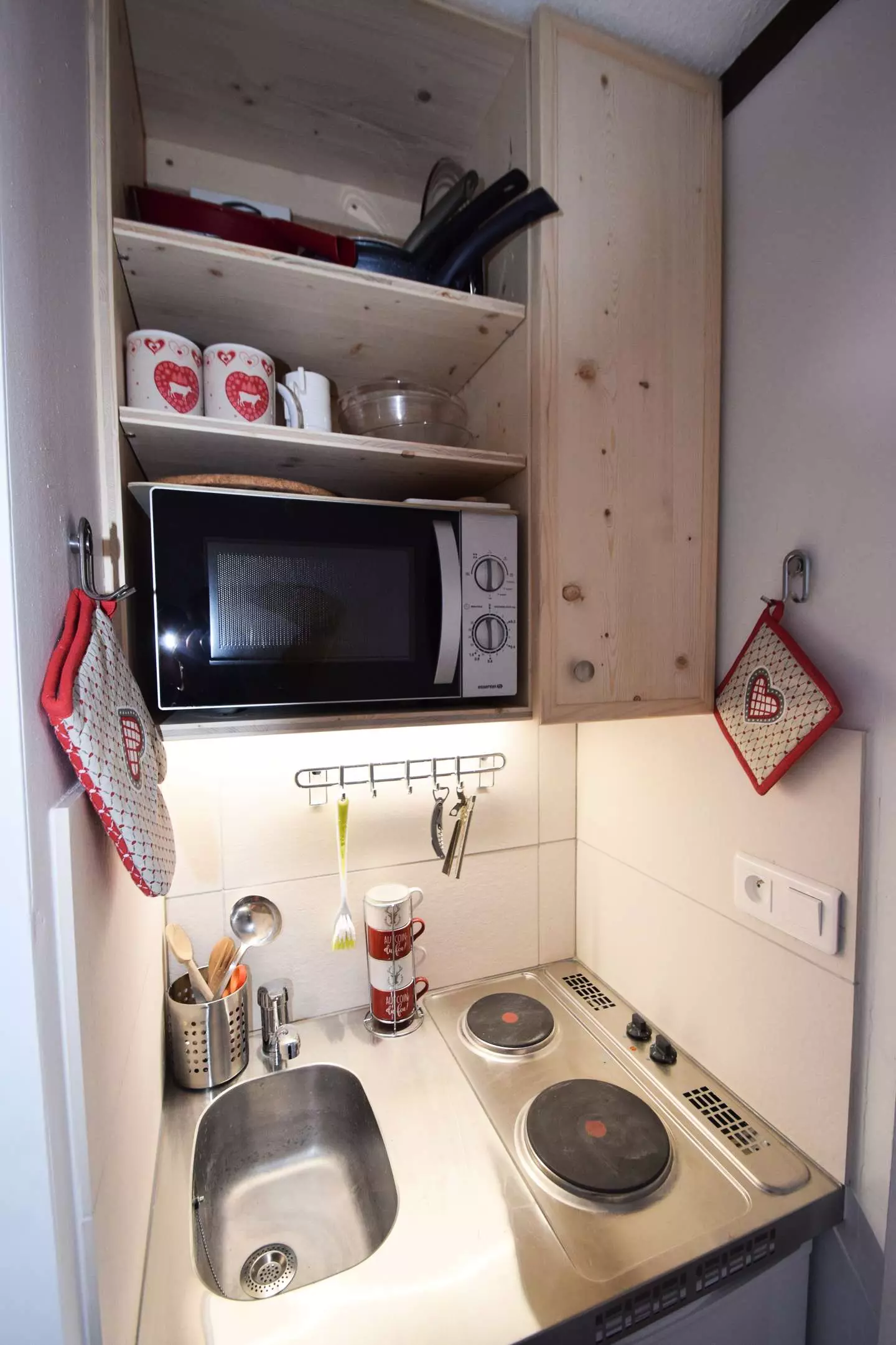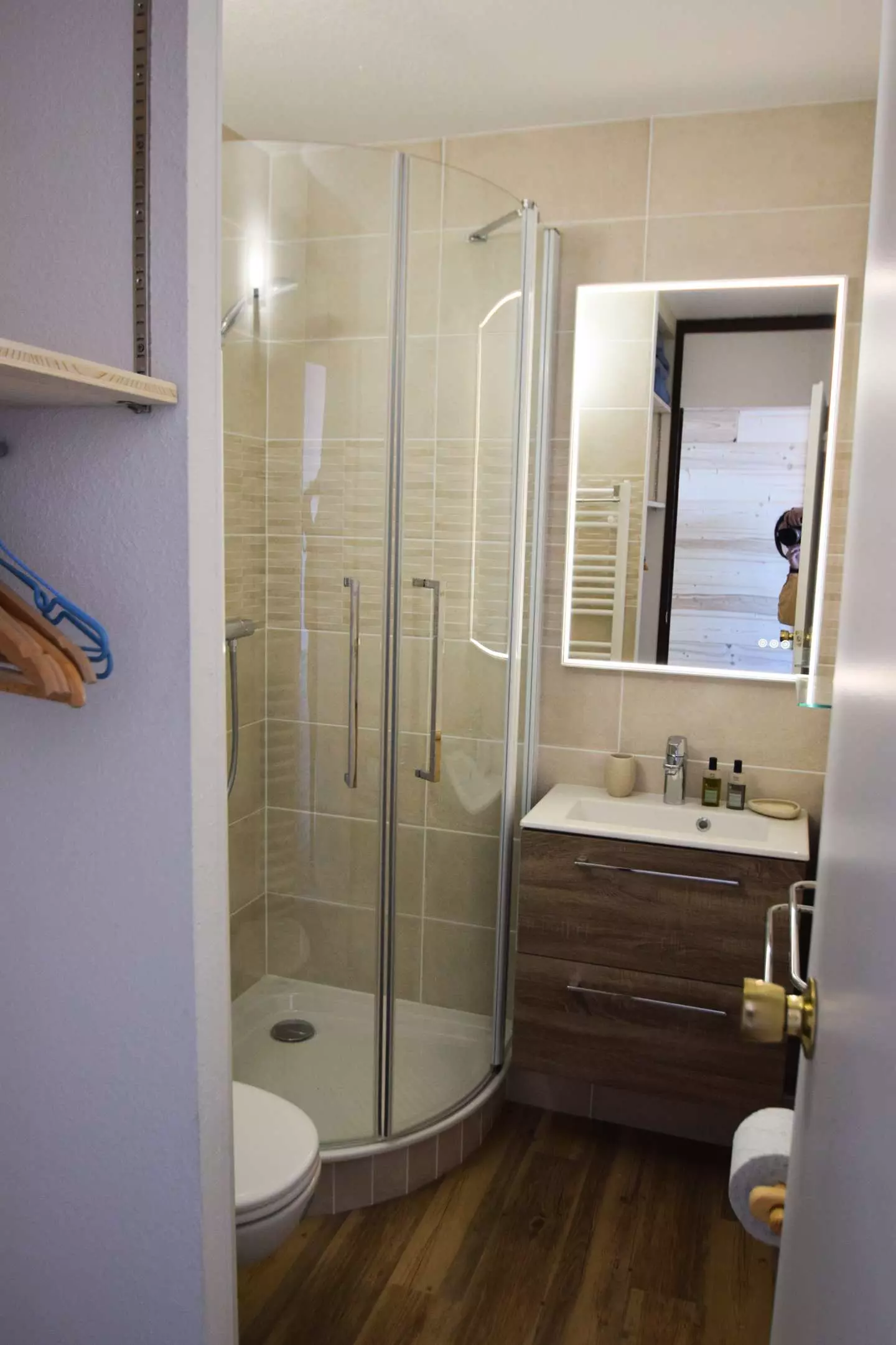 Apartment 933: 3 rooms for 6 people, 55m², south-facing balcony, beautiful view of the slopes and studio 908 17m² for 2 people opposite on the same landing, facing north with balcony, view of the valley and Mont Blanc - 9th floor elevator to the 8th + 1 floor by staircase (serving only 5 apartments) - 933: Kitchen open to living room with a bar unit: cooker with 4 electric hobs and traditional oven, large refrigerator, dishwasher, Nespresso coffee machine - Living room: dining area and lounge area, 2 single sofa beds, television - Bedroom 1: 1 double bed 160cm - Bedroom 2 (without window but with 2 skylights): 2 single beds - Bathroom: shower - separate WC - Bedding: 4 single duvets + 1 double duvet. - Floors: carpet except kitchen, living room, bathroom and toilet: plastic. Beautiful apartment with good comfort, very well located and exposed, SOUTH, with very clear view of the slopes, large balcony overlooking the living room and bedroom, very bright. Attention: in case of loss of key: invoice of 500€ excluding travel costs for changing the lock. 908: Kitchen: in corridor/entrance: 2 electric hotplates, refrigerator, microwave oven. Living room: 2 twin beds 80x190cm which can form a double bed, dining area, TV. Bathroom: shower, WC included. Bedding: 1 double duvet. Studio with a pleasant view of the valley and Mont Blanc. Ski locker n°933 & 908 on the ground floor on the UCPA side (908 is located near lockers n°600). PETS NOT ALLOWED and NON-SMOKING APPT - End of stay cleaning, sheets, towels and ski passes are optional.
