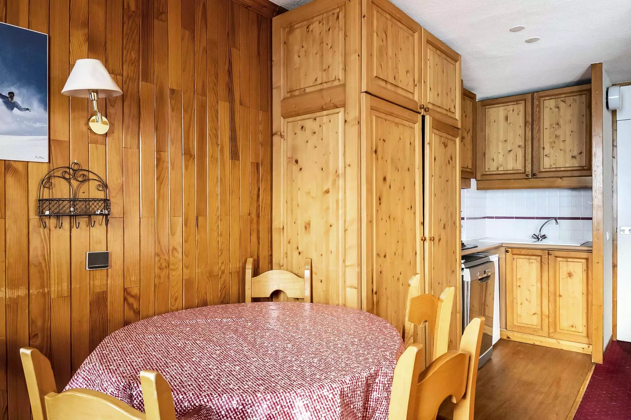 Divisible studio for 4/5 people, 26m2, on one level (snow removal not guaranteed) with access to the slopes, 1st floor by stairs, south exposure, view of the slopes. Open kitchen: 4 electric hobs, microwave oven, refrigerator, dishwasher. Living room: 2 single sofa beds and 1 drawer bed, TV - Divisible part: dining area, 2 pull-out beds - Bathroom: shower - separate WC - Floors: carpet, except kitchen/WC/bathroom: plastic. Bedding: 4 single duvets and 1 double duvet. Ski locker n°B13 on the ground floor. Non-smoking apartment, pets not allowed WIFI INCLUDED - Final cleaning, sheets, towels and ski passes optional. Pleasant studio with direct access to the slopes. The residence: small 3-story residence, quiet, AT THE FOOT OF THE SLOPES, approx. 700m from shops: access by free shuttle bus - free outdoor parking nearby, not private - Plagne Villages is connected to Plagne Centre by the cable car (free gondola).